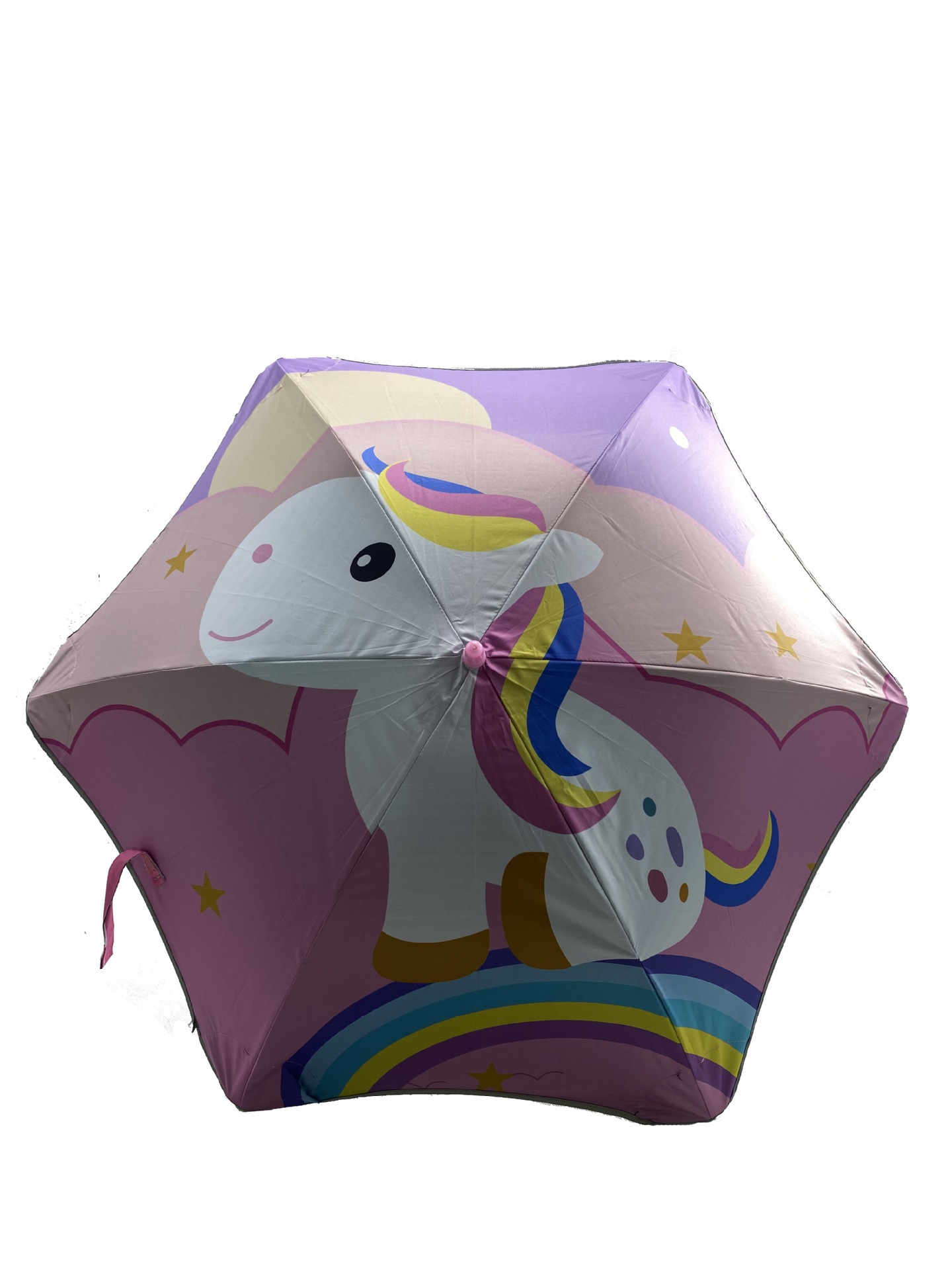 맞춤형 창의적인 섬유 반사 어린이 우산, 귀여운 만화 둥근 모서리 어린이 우산, 비 또는 빛, 자외선 차단제 우산