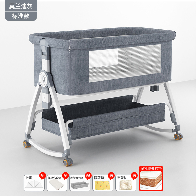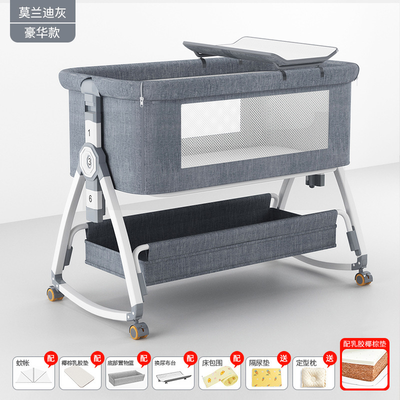 • 알루미늄 합금 그레이 + 4D 하이테크 매트리스 [뒷면이 매트] + 수납바구니 + 모기장 + 수유대 + 침대 서라운드