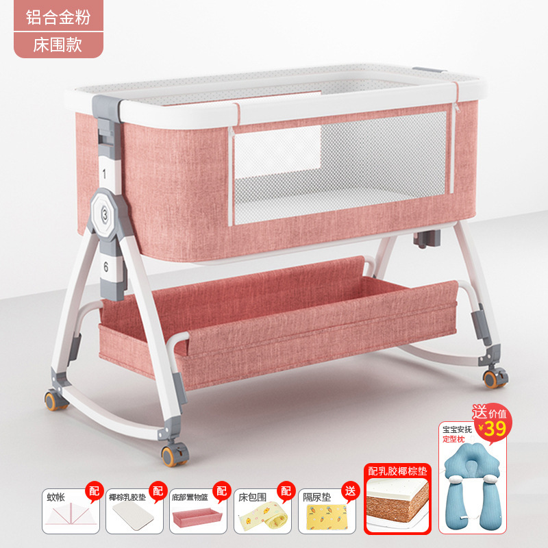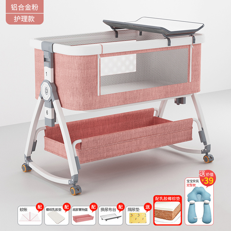• 알루미늄 합금 벚꽃 가루 + 코코넛 야자 라텍스 매트 + 보관 바구니 + 모기장 + 간호 테이블 + 침대 서라운드