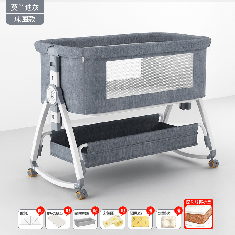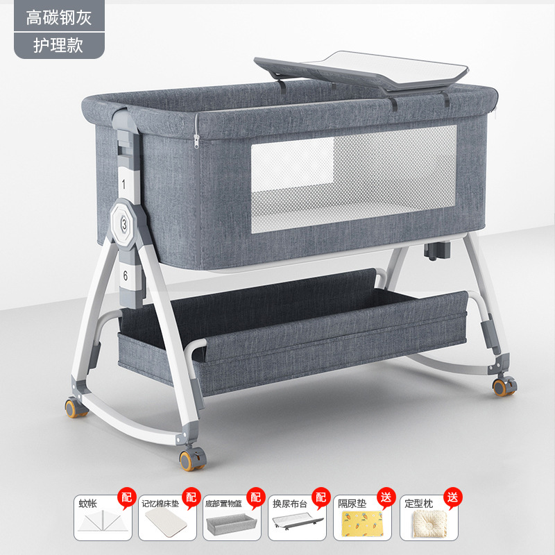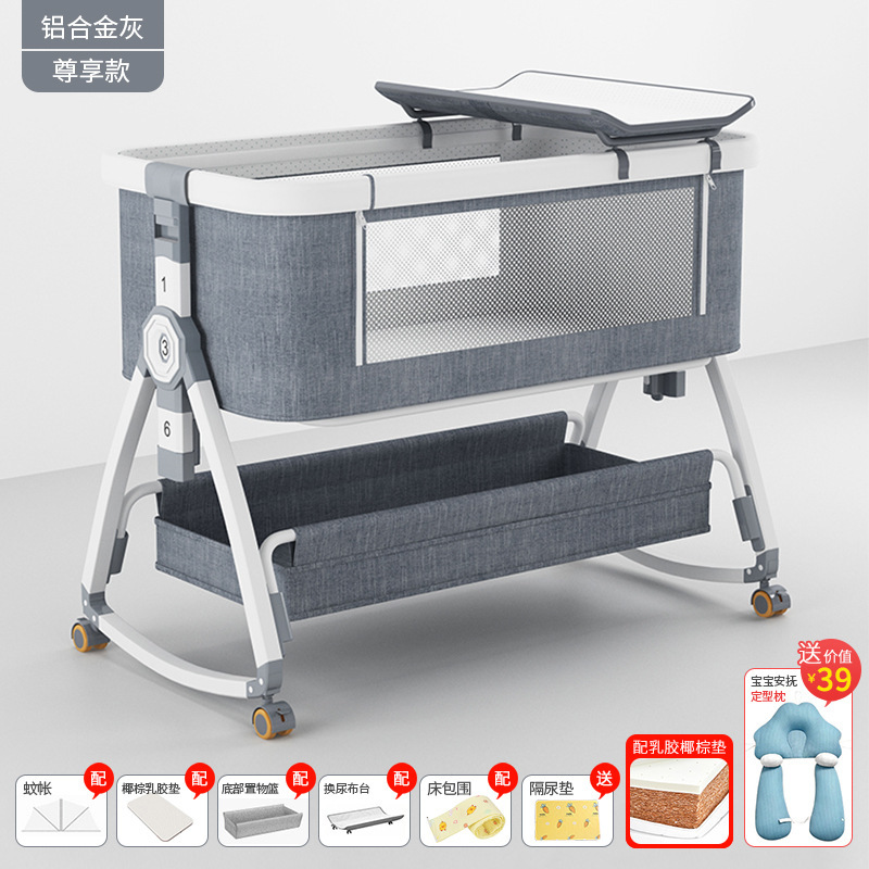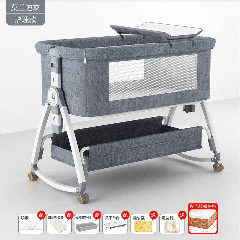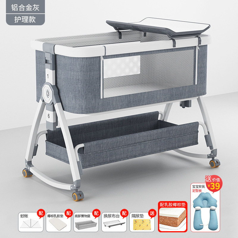 • 알루미늄 합금 회색 + 코코넛 야자 라텍스 매트 + 보관 바구니 + 모기장 + 간호 테이블 + 침대 서라운드