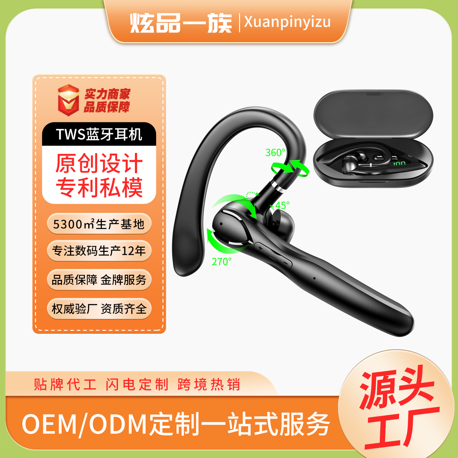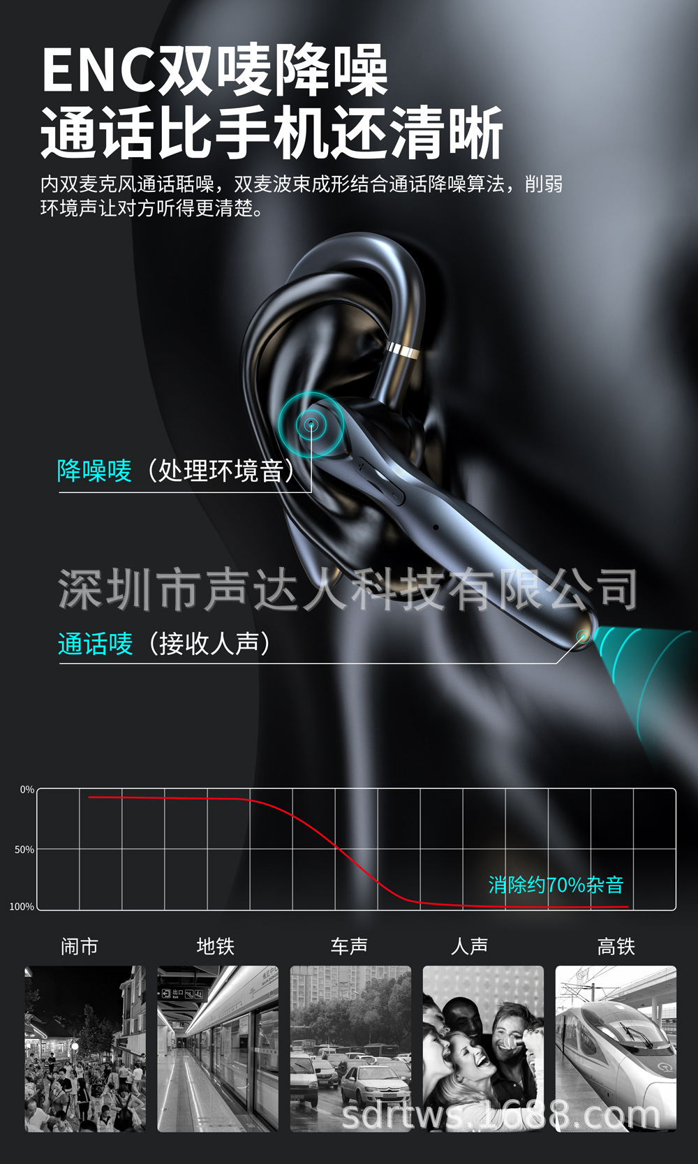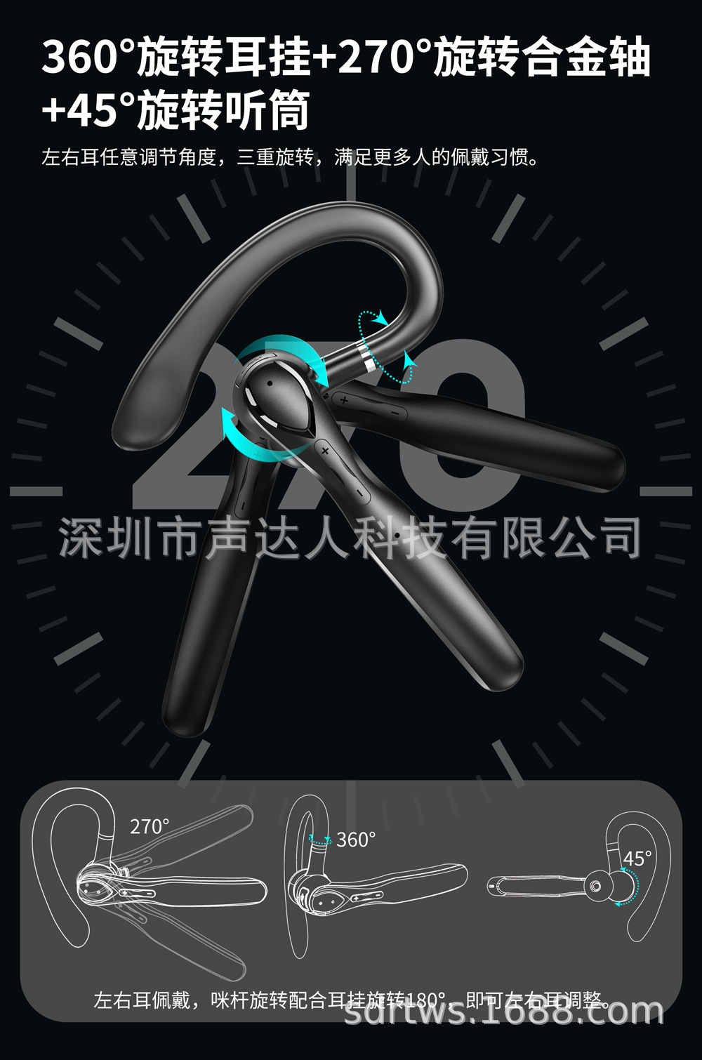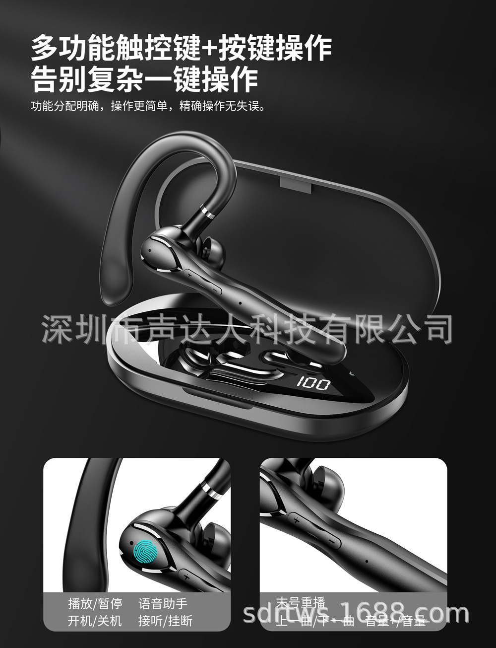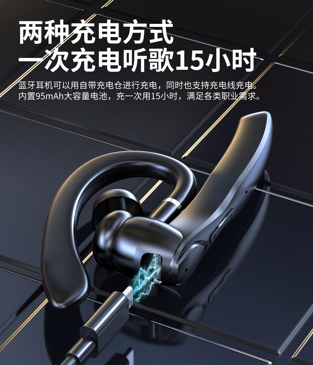 국경 간 Amazon 베스트셀러 단일 귀 무선 Bluetooth 헤드셋 소음 감소 초장기 배터리 수명 자동차 비즈니스 스포츠 귀 장착형스토어 가기