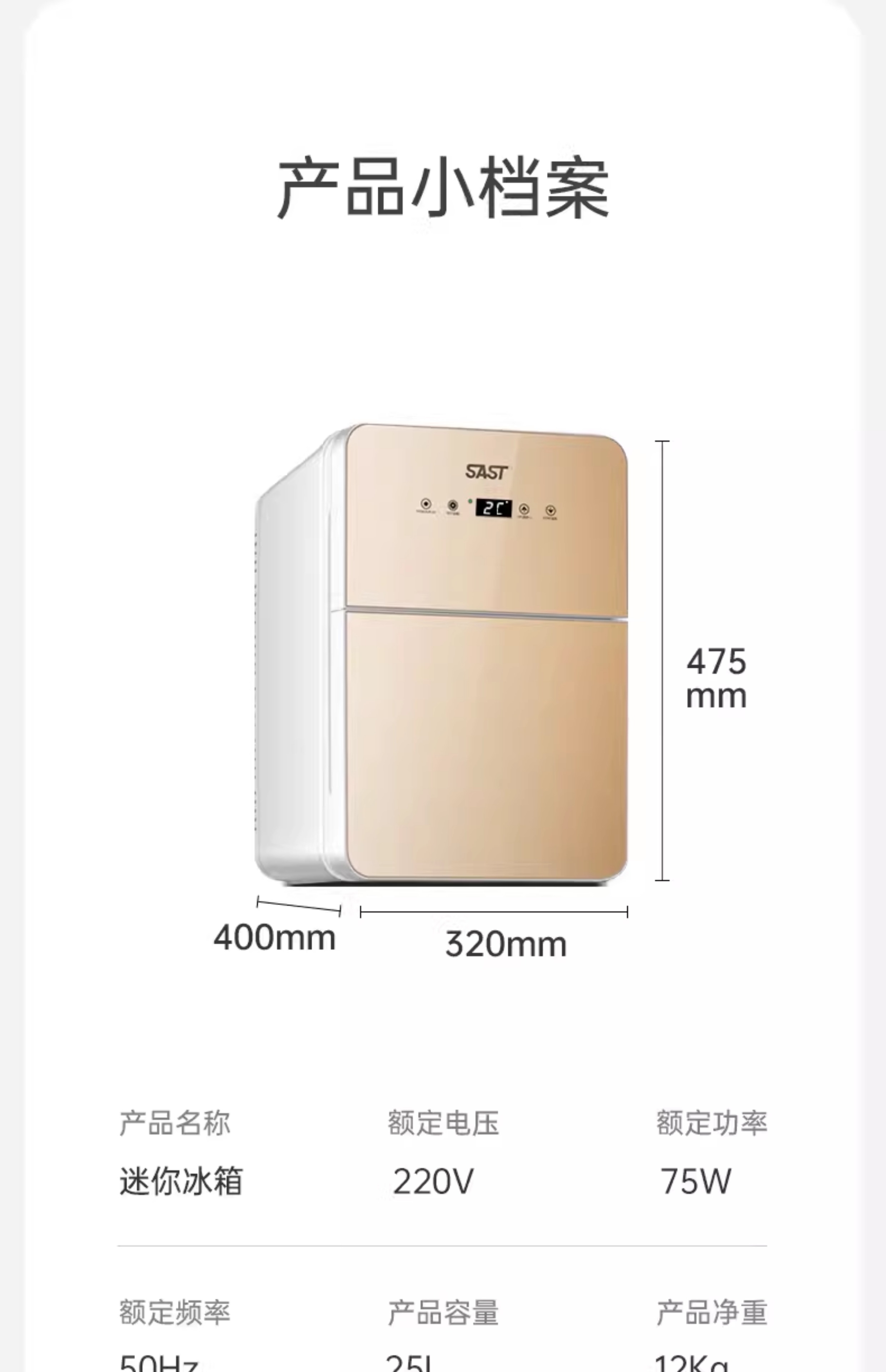 • 25L 골드 [압축냉동 + 고온날씨 영향을 받지 않음] 디지털 디스플레이 온도 조절.