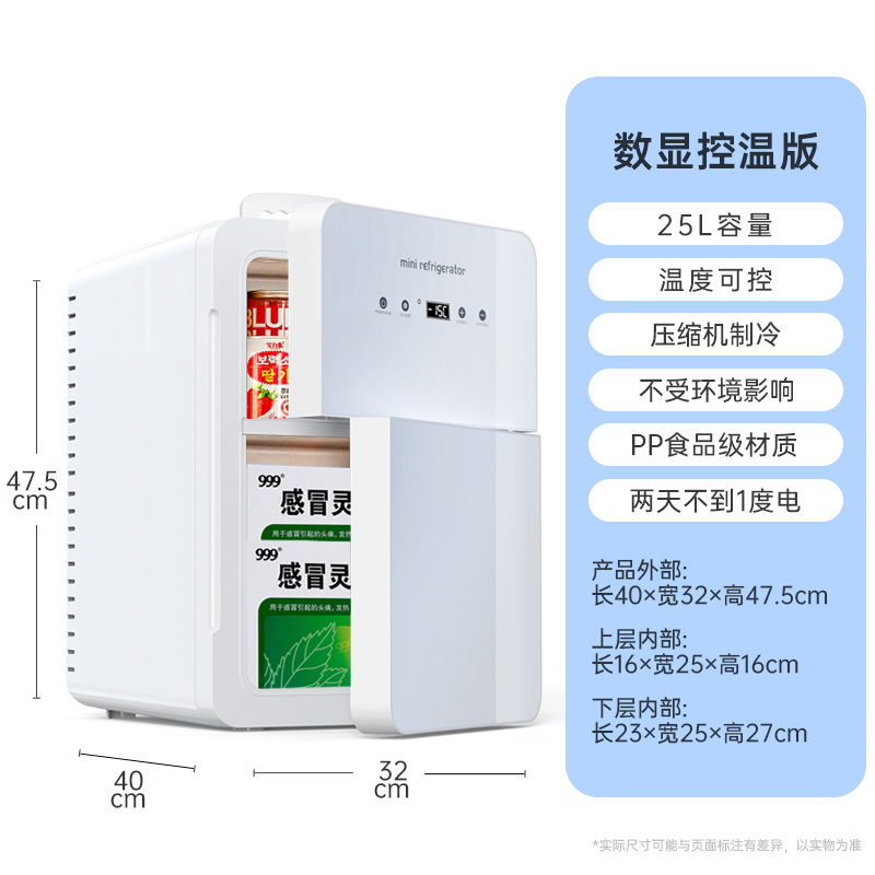 • 25L 화이트 [압축냉동 + 고온날씨 영향을 받지 않음] 디지털 디스플레이 온도 조절