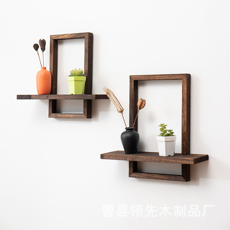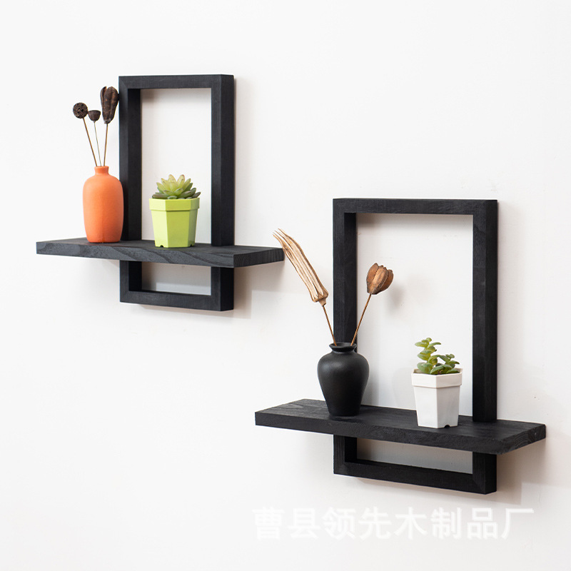 국경 간 목조 사각형 벽 선반 홈 거실 꽃병 장식품 장식 선반 교수형 파티션 스토리지 랙스토어 가기