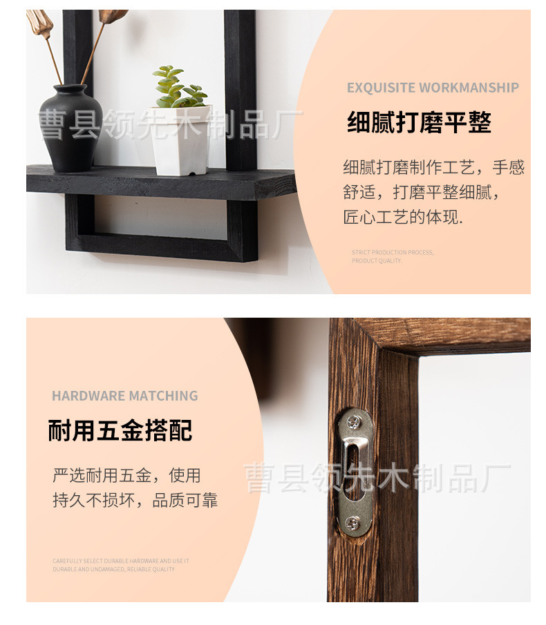 국경 간 목조 사각형 벽 선반 홈 거실 꽃병 장식품 장식 선반 교수형 파티션 스토리지 랙
