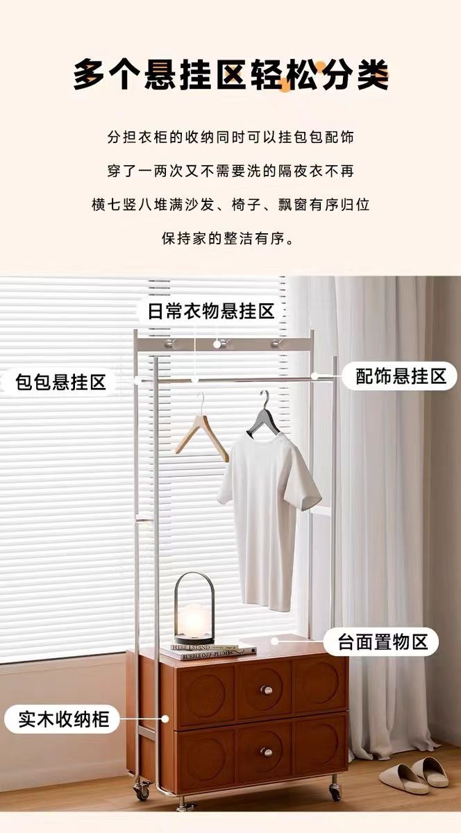 침실 홈 단단한 나무 코트 랙 바닥에 서 있는 다기능 옷 걸이 이동식 스토리지 캐비닛스토어 가기