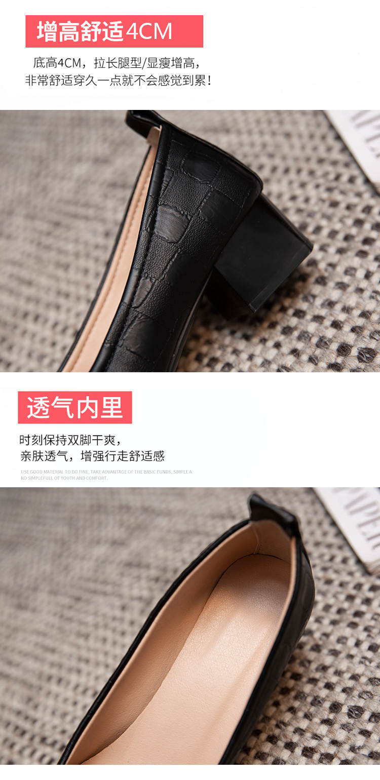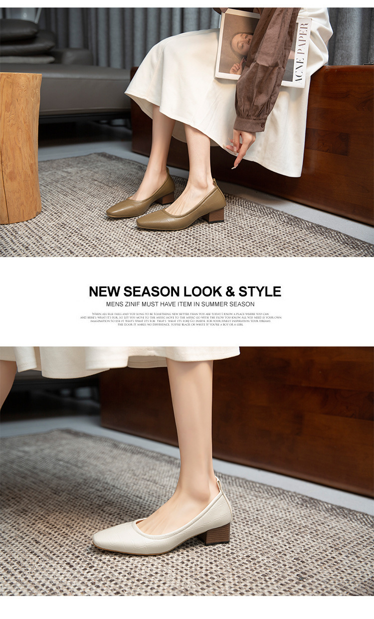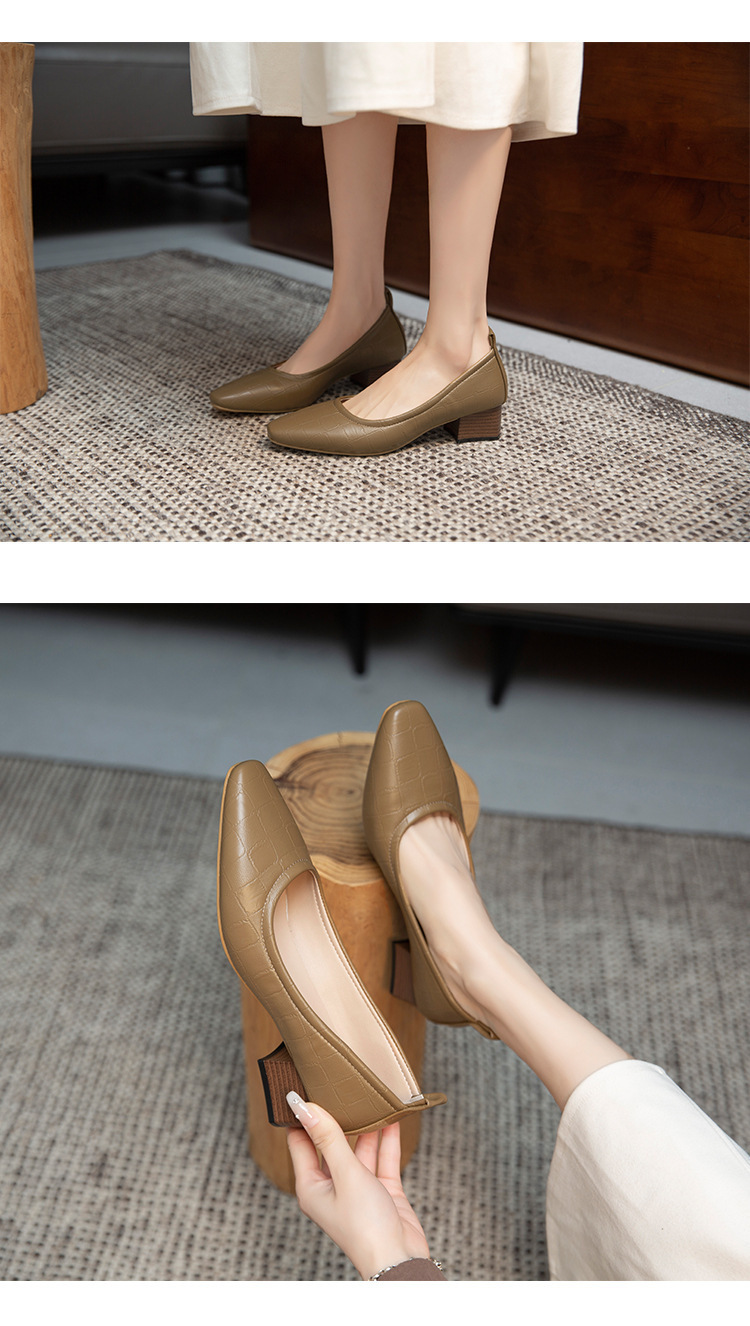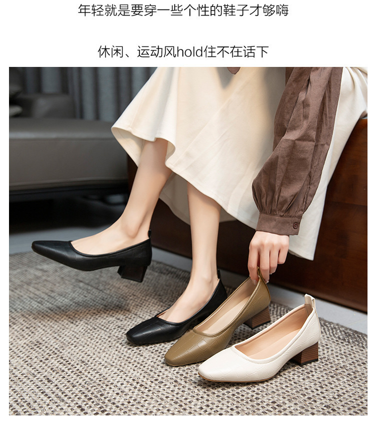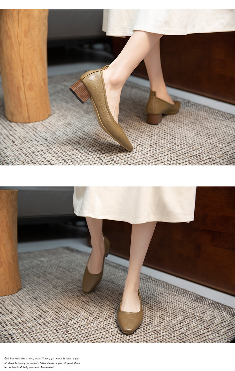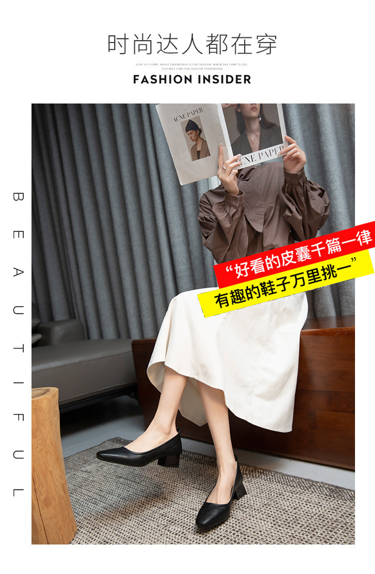 2023春夏季新款小跟鞋简约淑女气质软皮不磨脚尖头单鞋矮跟高跟鞋