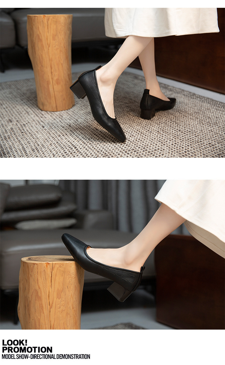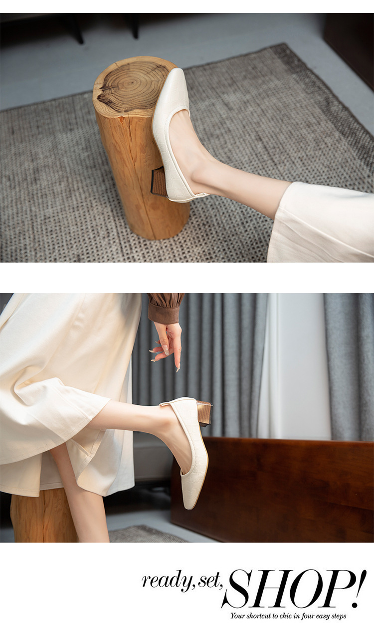 2023 봄 여름 신상 작은 굽 신발, 심플하고 여성스러운 기질, 부드러운 가죽, 발끝이 닿지 않는 신발, 낮은 굽 하이힐스토어 가기
