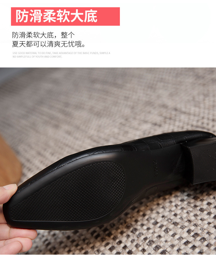 2023 봄 여름 신상 작은 굽 신발, 심플하고 여성스러운 기질, 부드러운 가죽, 발끝이 닿지 않는 신발, 낮은 굽 하이힐