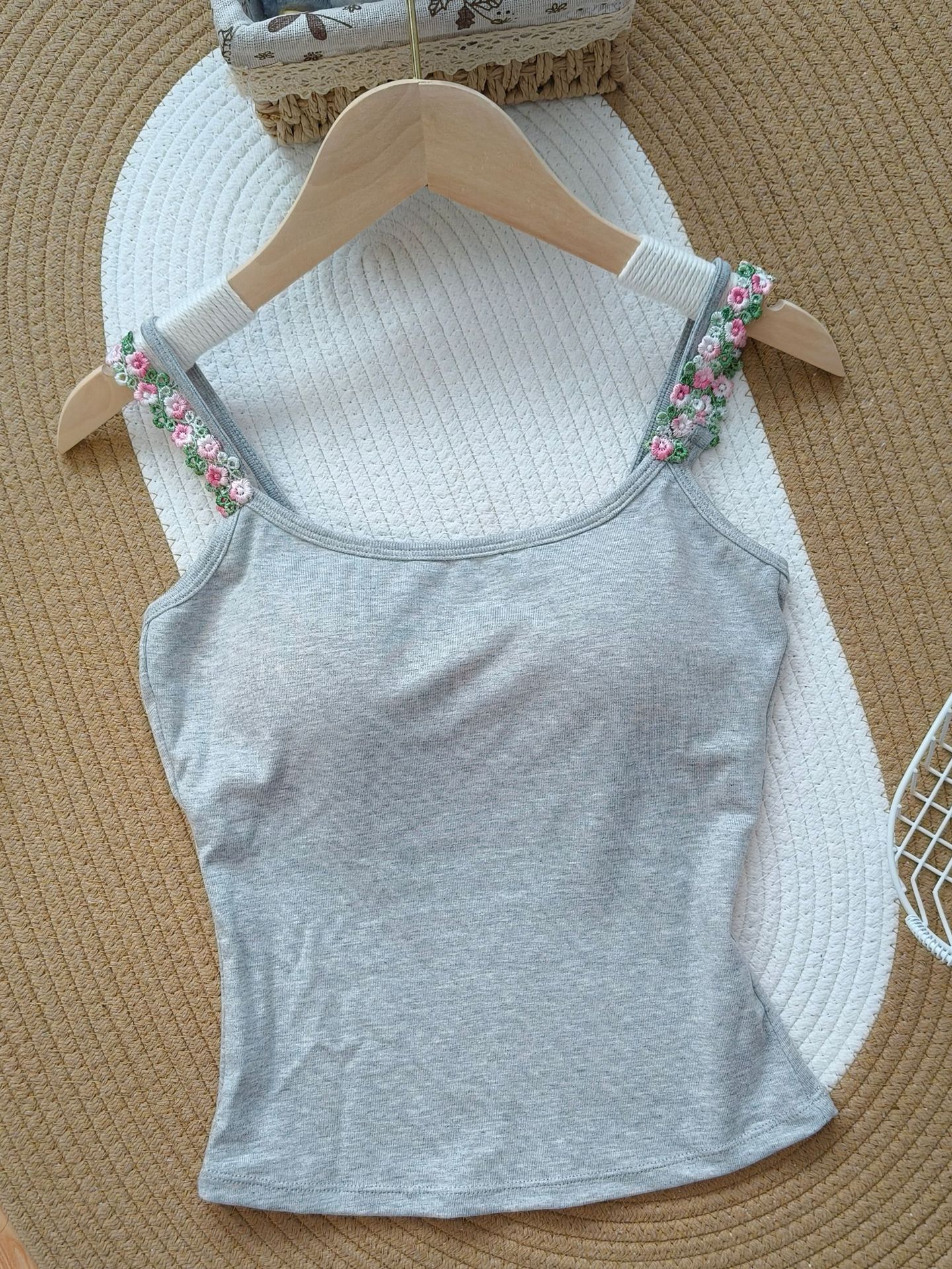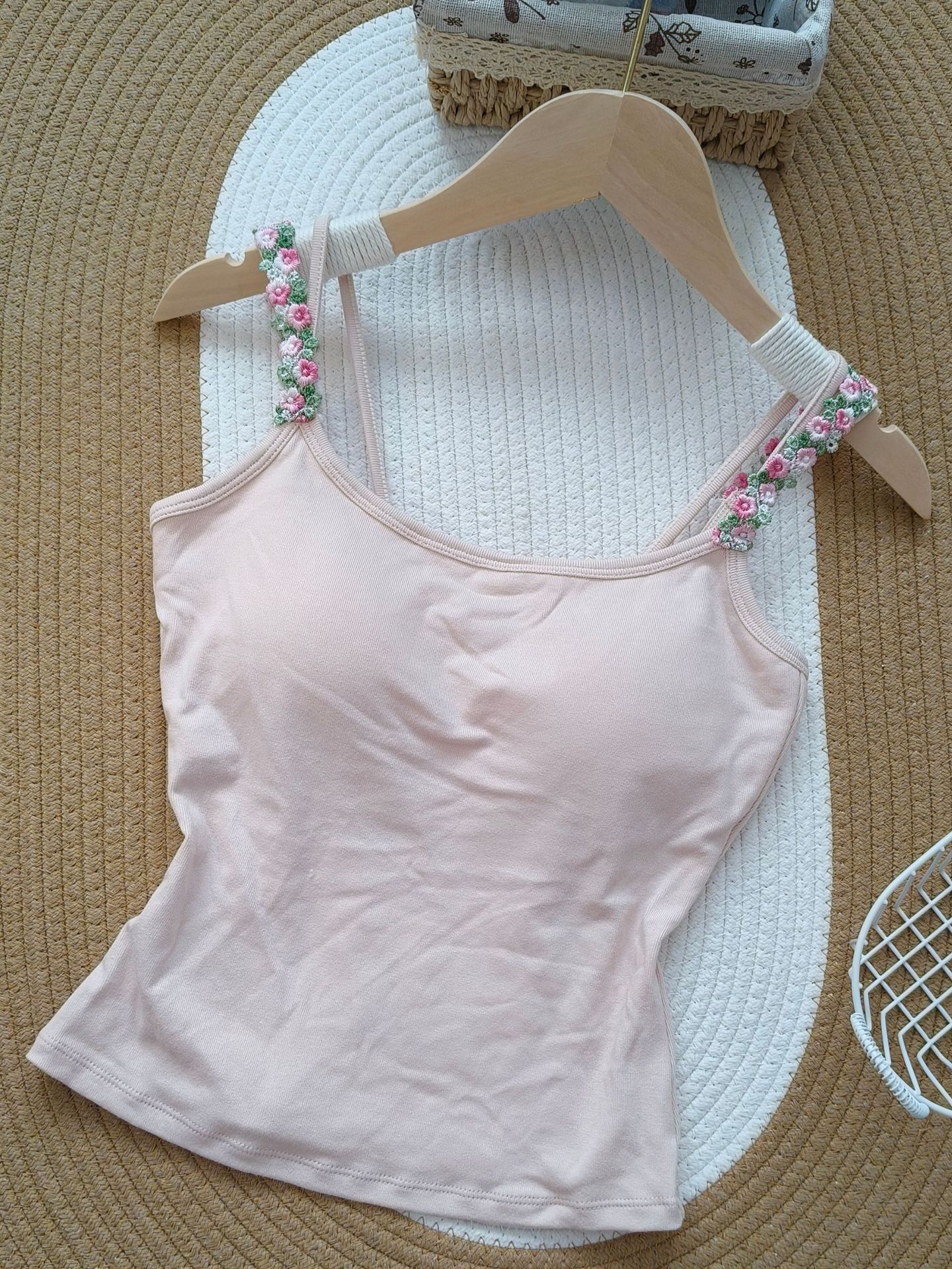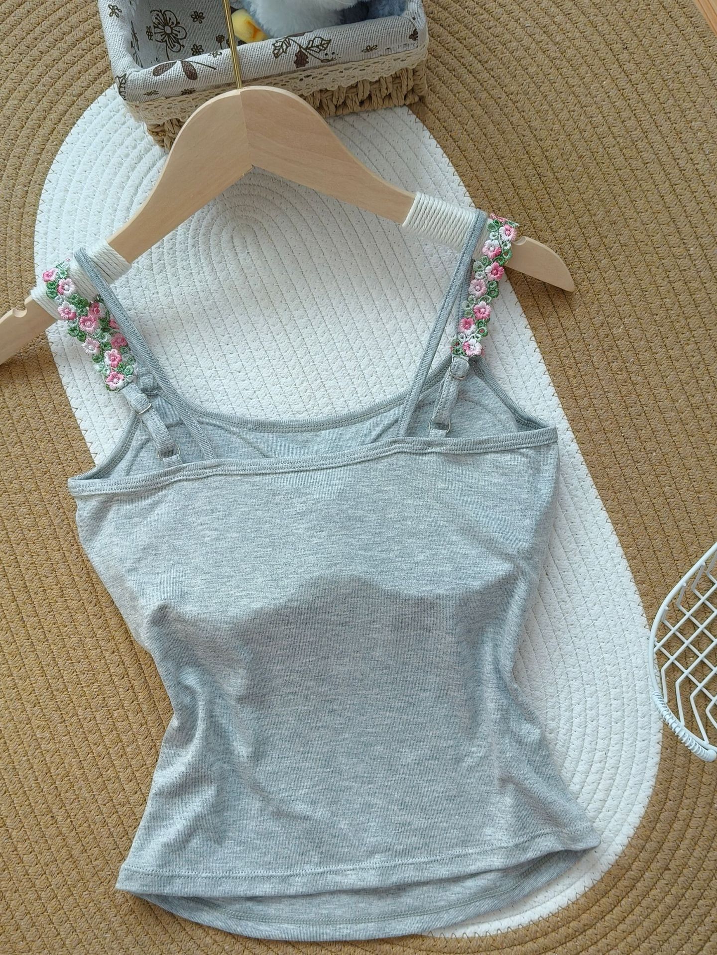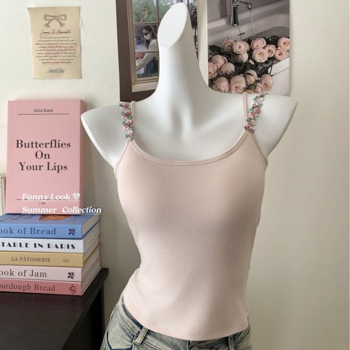 8300 덩굴꽃 캐미솔 고정형 가슴 패드 달콤하고 매콤한 페이크 투피스 캐미솔 아름다운 등 디자인 자수 탑스토어 가기
