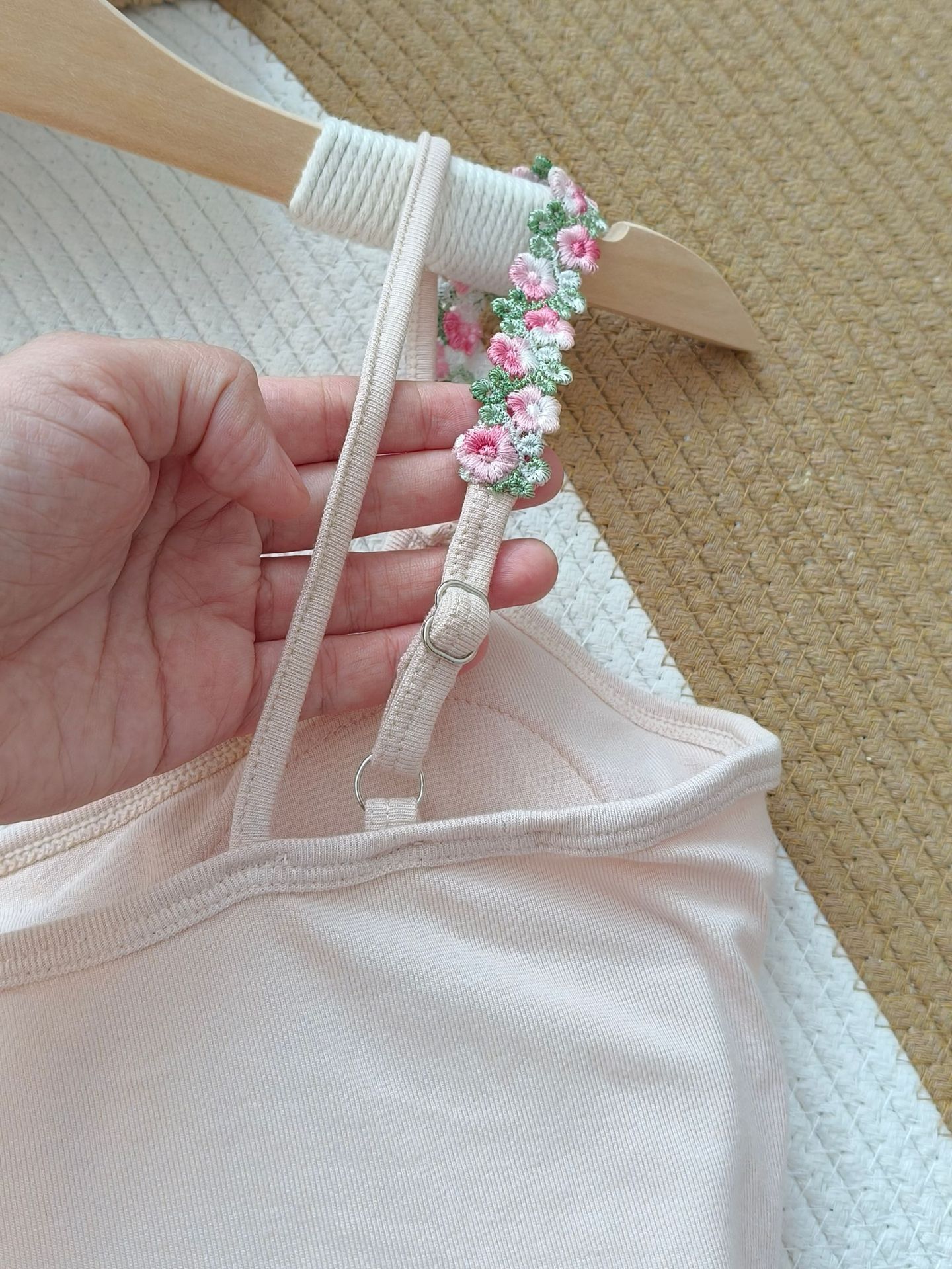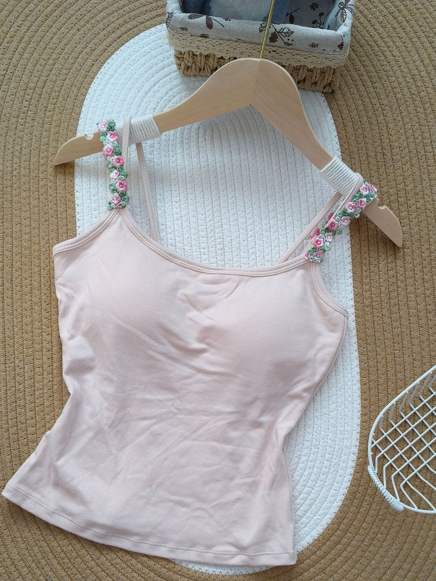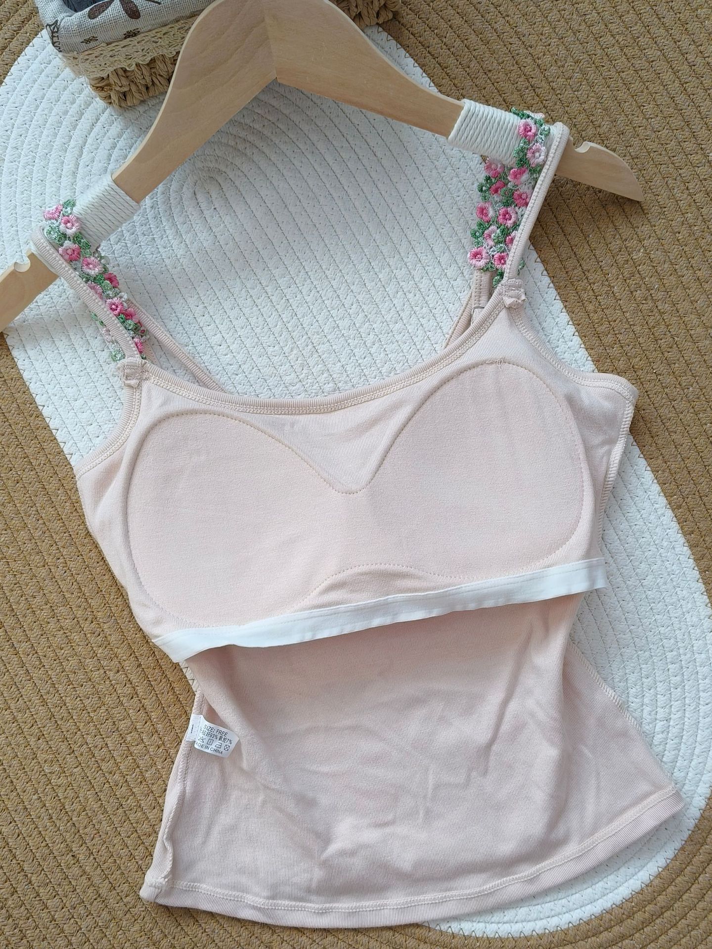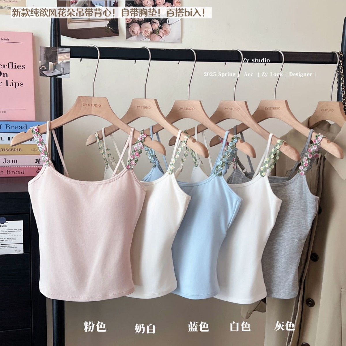 8300 덩굴꽃 캐미솔 고정형 가슴 패드 달콤하고 매콤한 페이크 투피스 캐미솔 아름다운 등 디자인 자수 탑스토어 가기