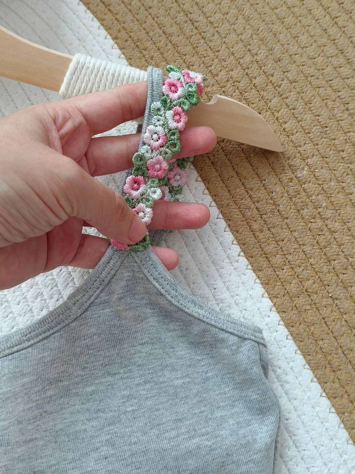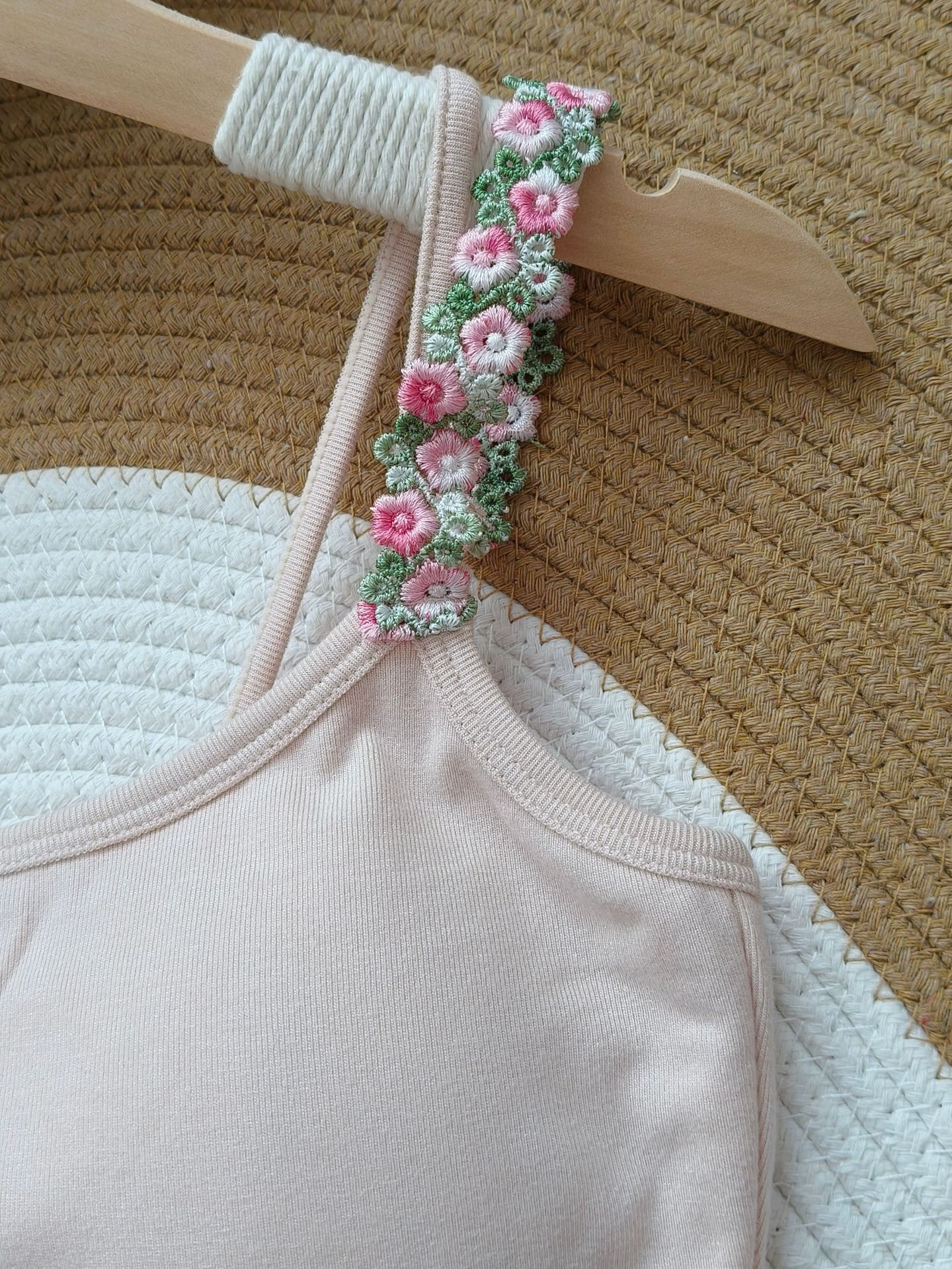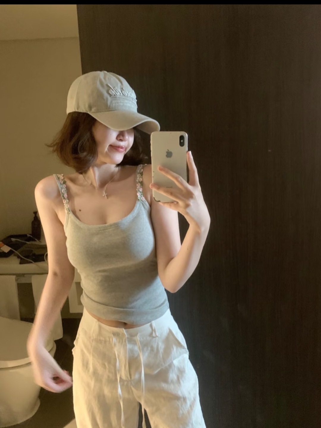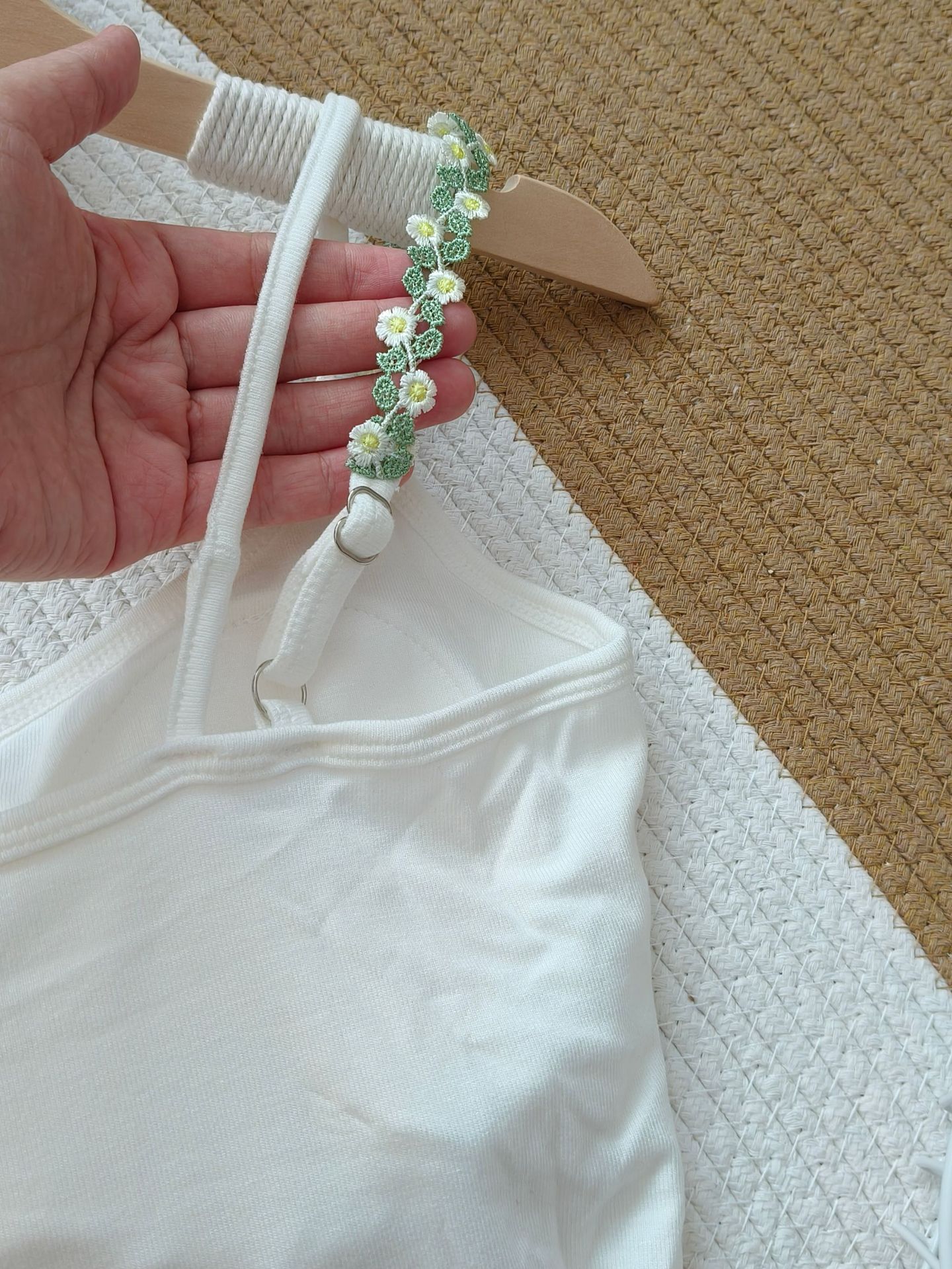 8300 덩굴꽃 캐미솔 고정형 가슴 패드 달콤하고 매콤한 페이크 투피스 캐미솔 아름다운 등 디자인 자수 탑스토어 가기