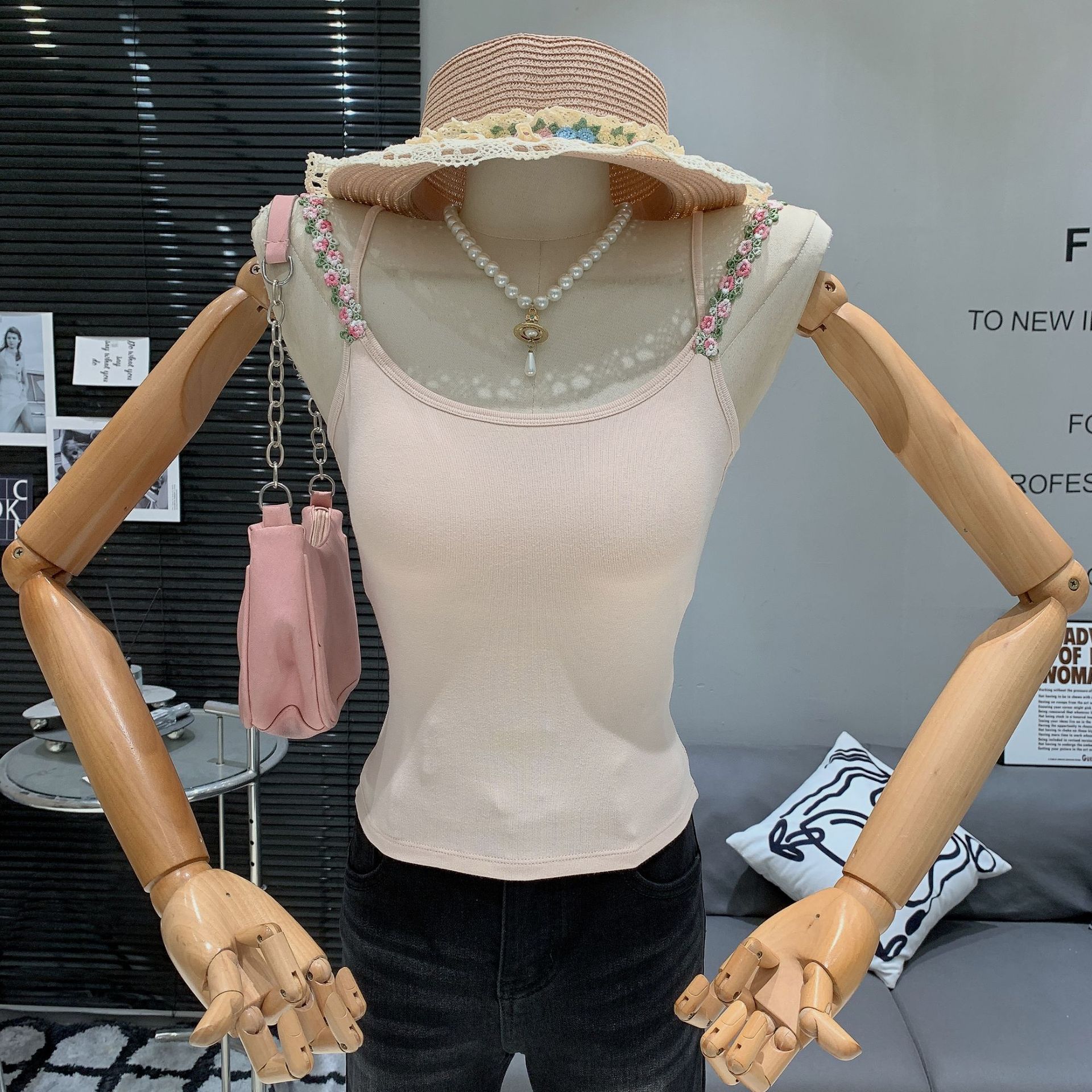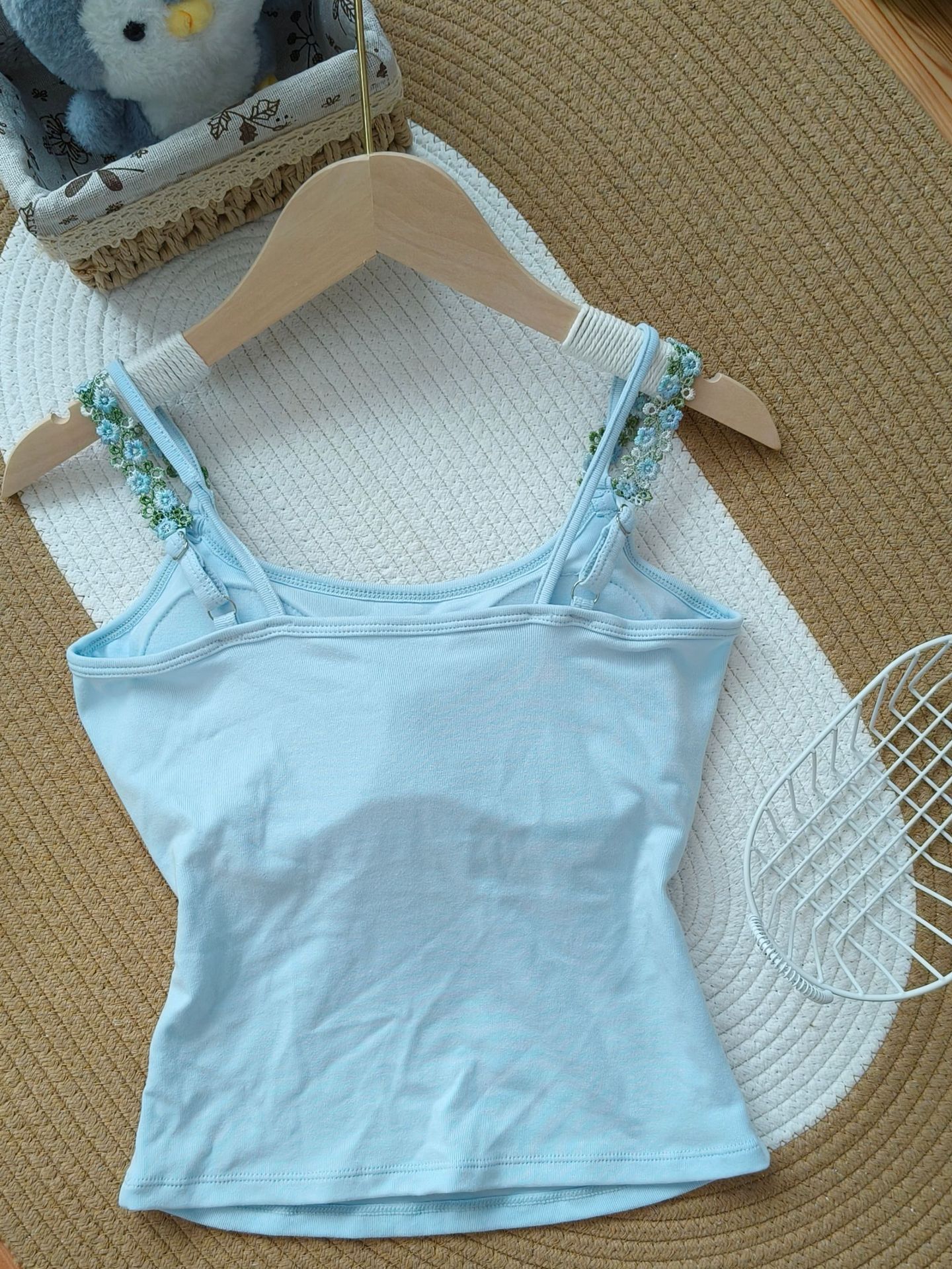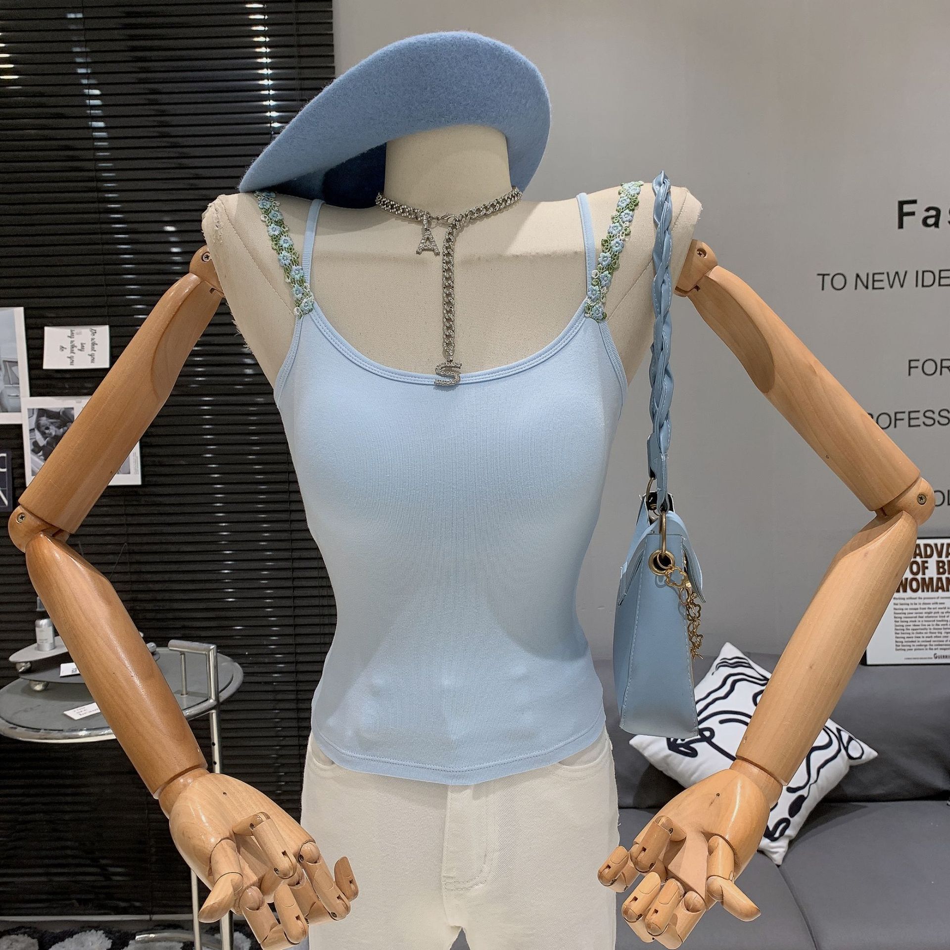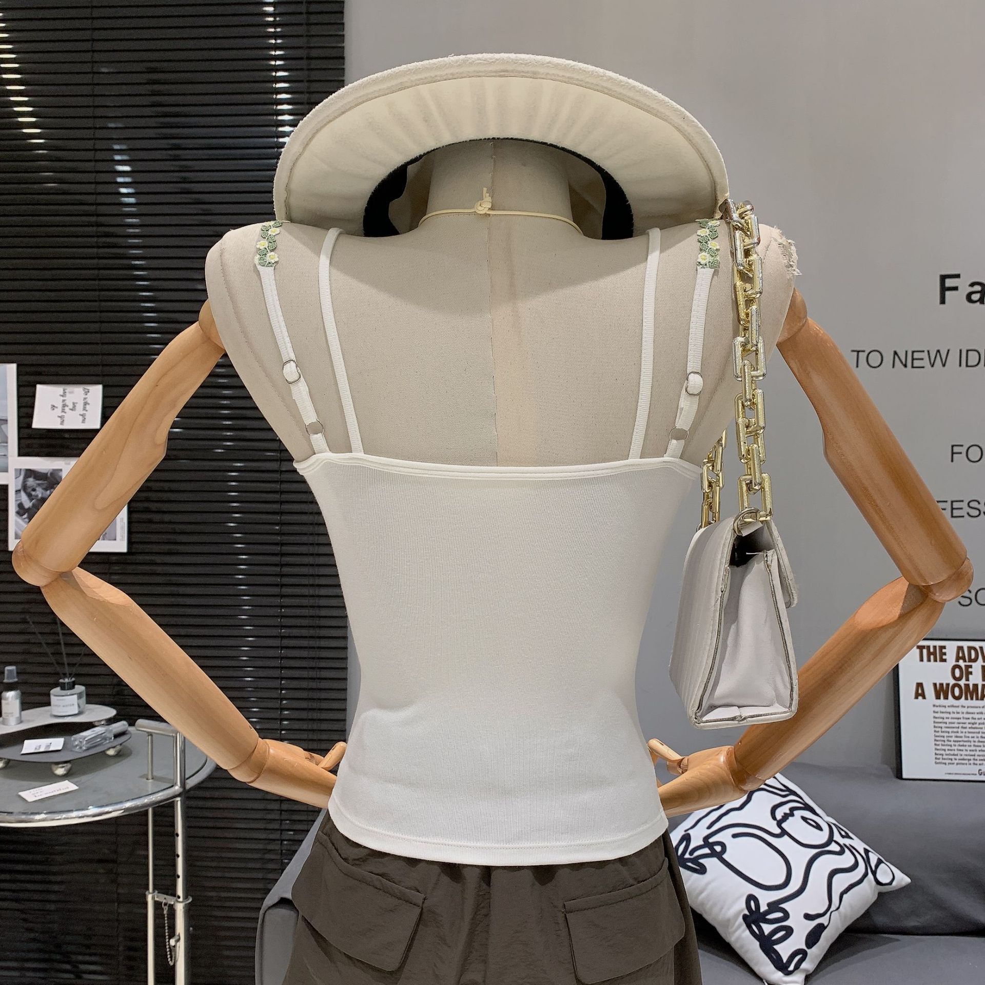 8300 덩굴꽃 캐미솔 고정형 가슴 패드 달콤하고 매콤한 페이크 투피스 캐미솔 아름다운 등 디자인 자수 탑