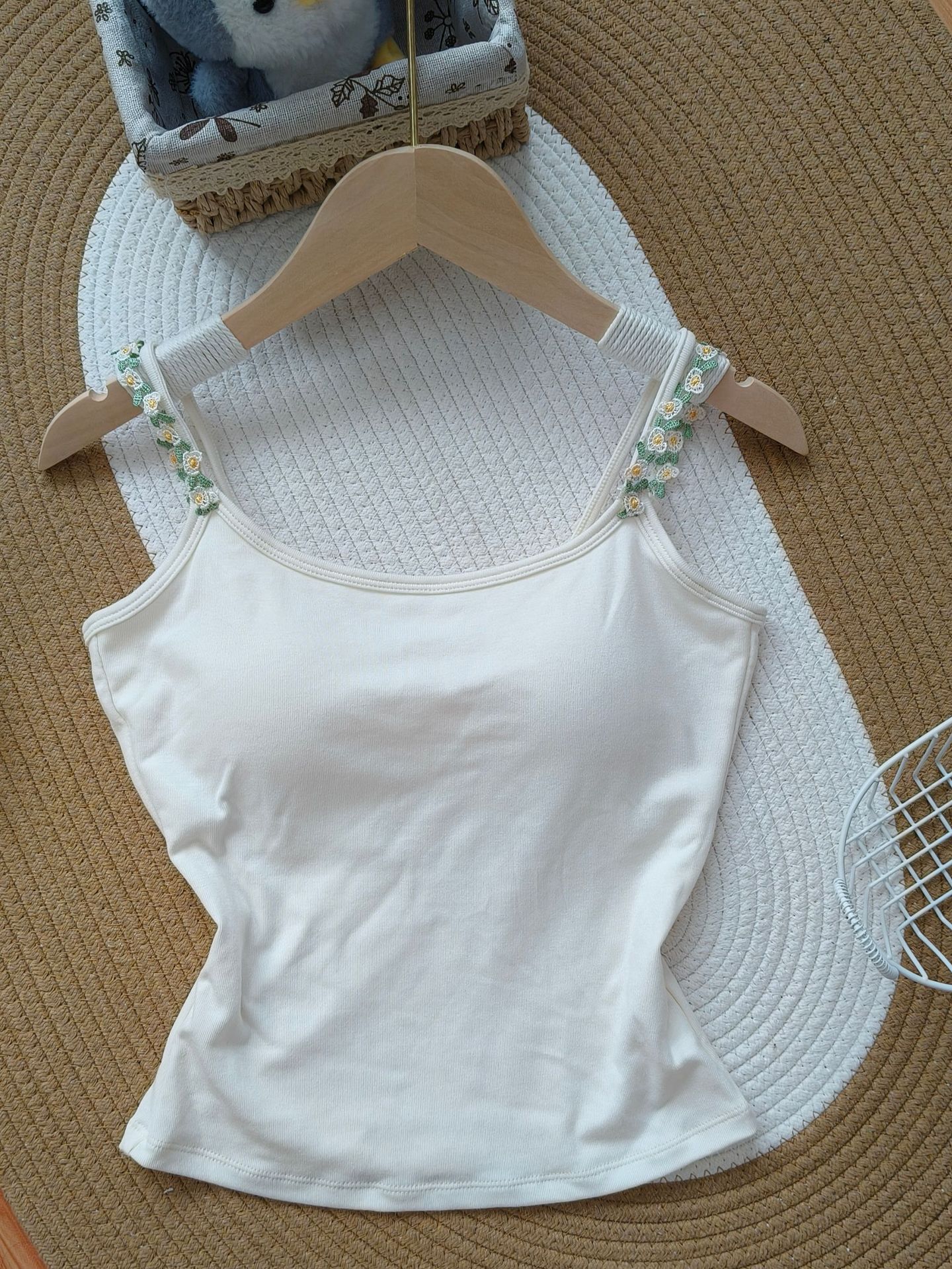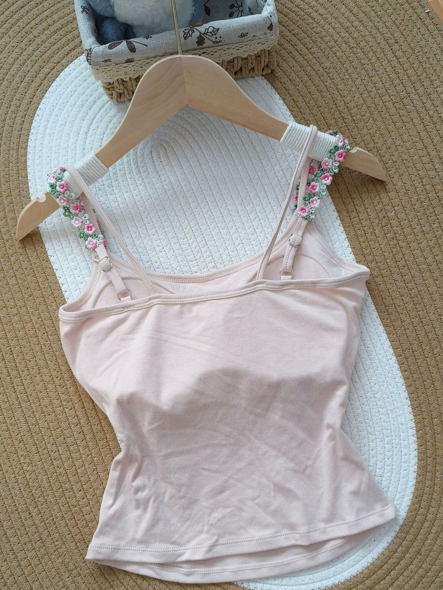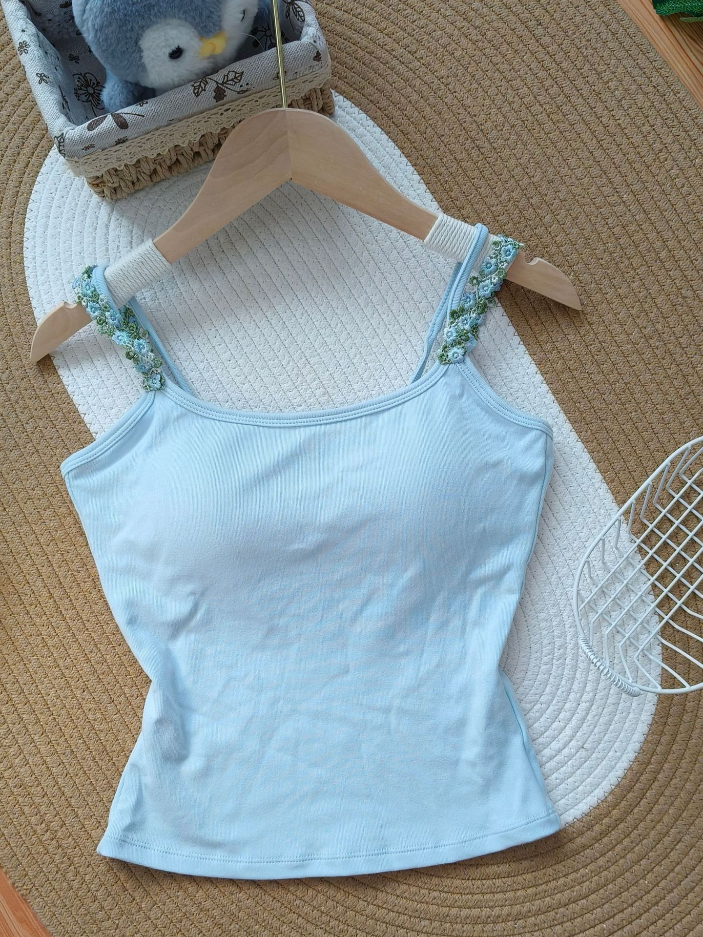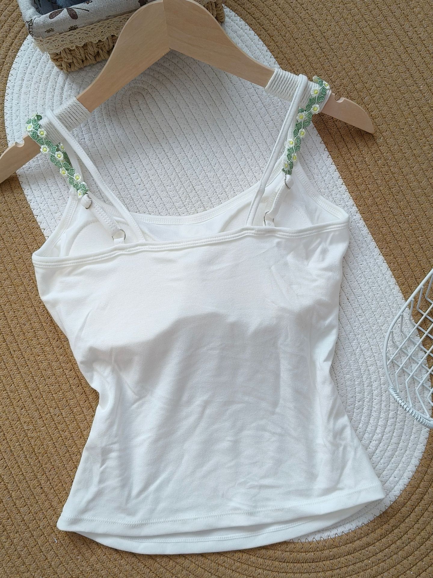 8300 덩굴꽃 캐미솔 고정형 가슴 패드 달콤하고 매콤한 페이크 투피스 캐미솔 아름다운 등 디자인 자수 탑