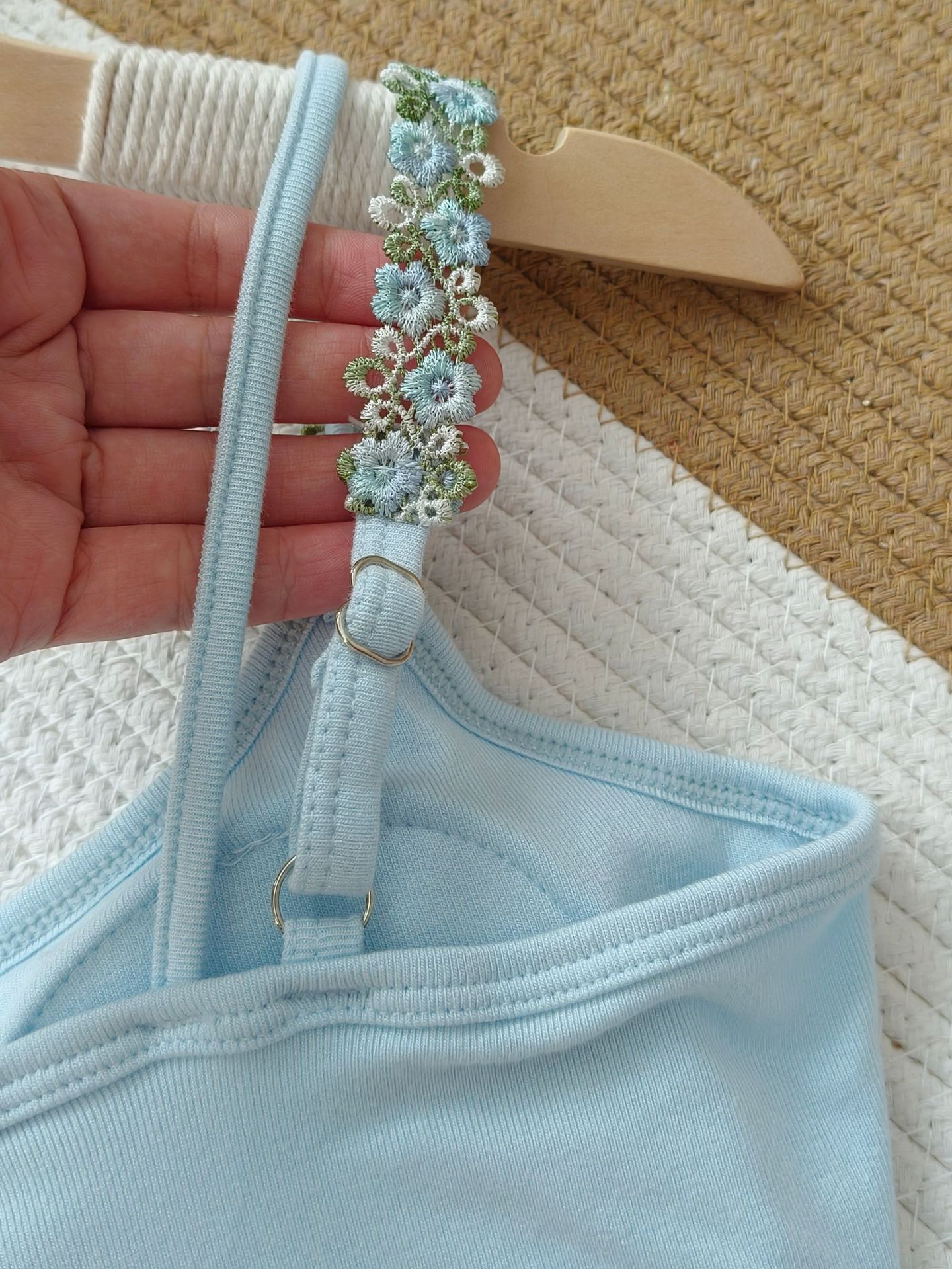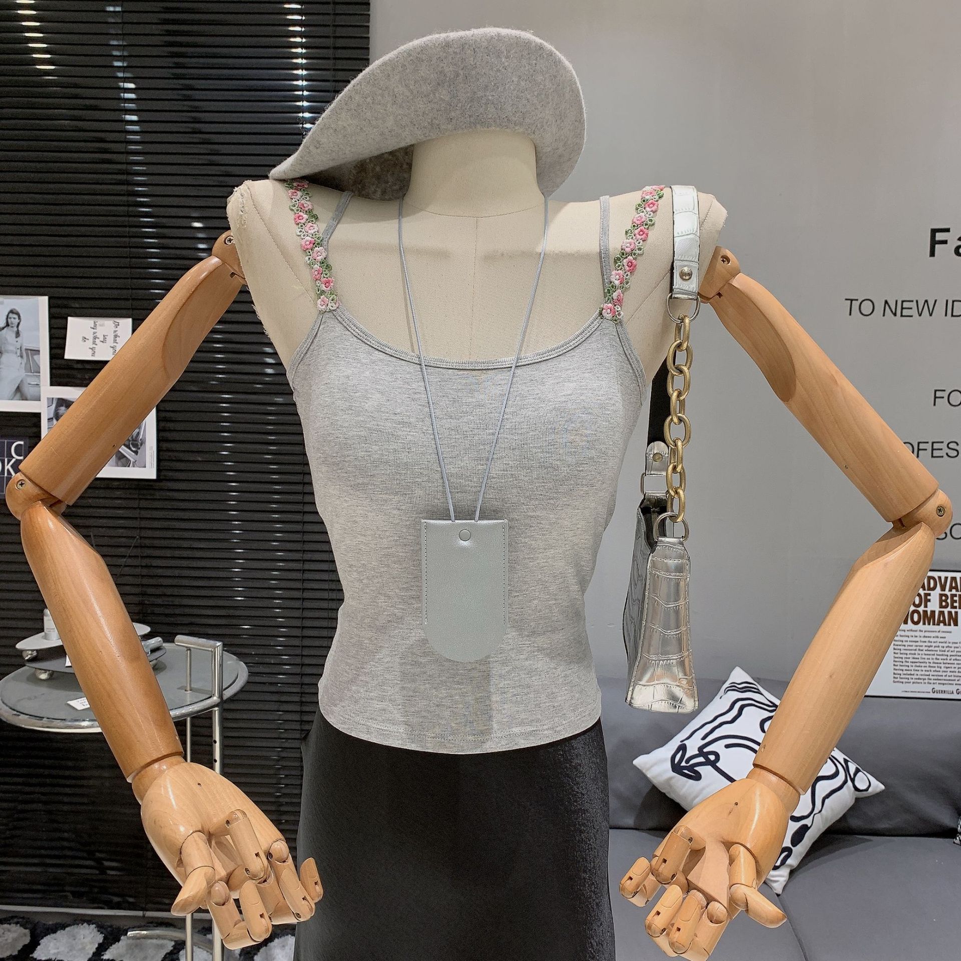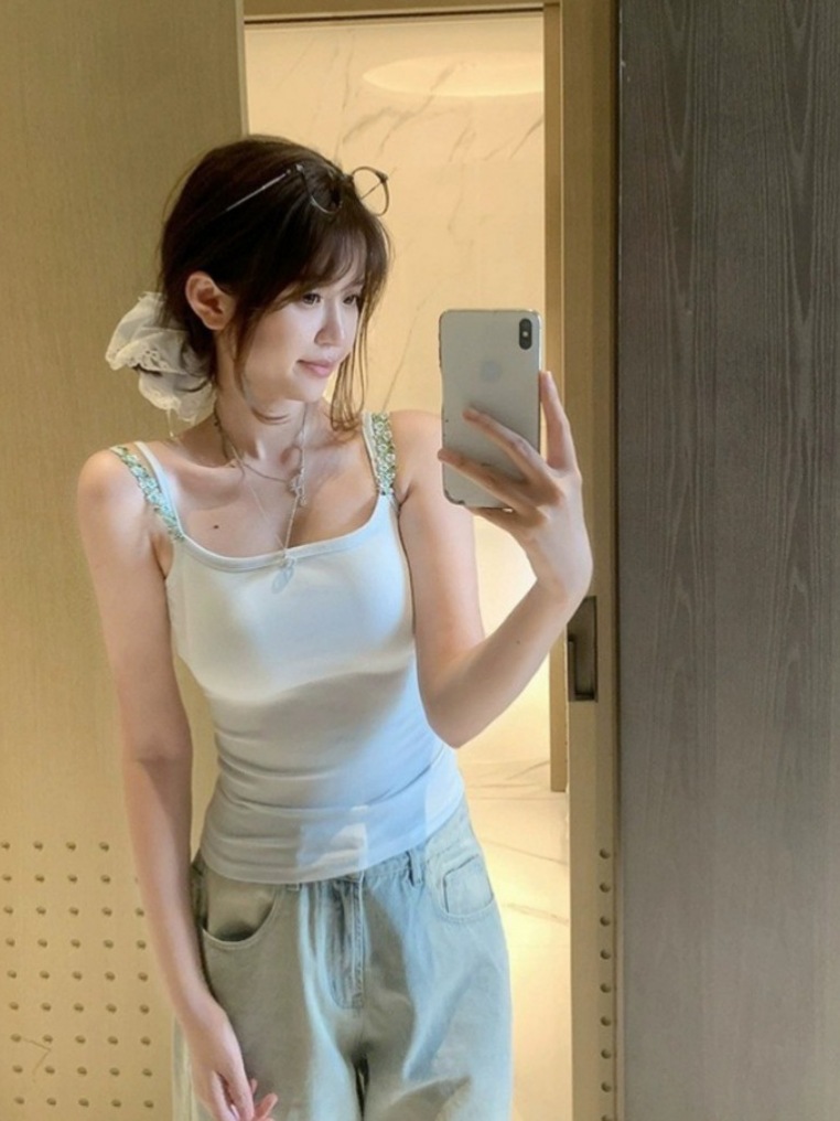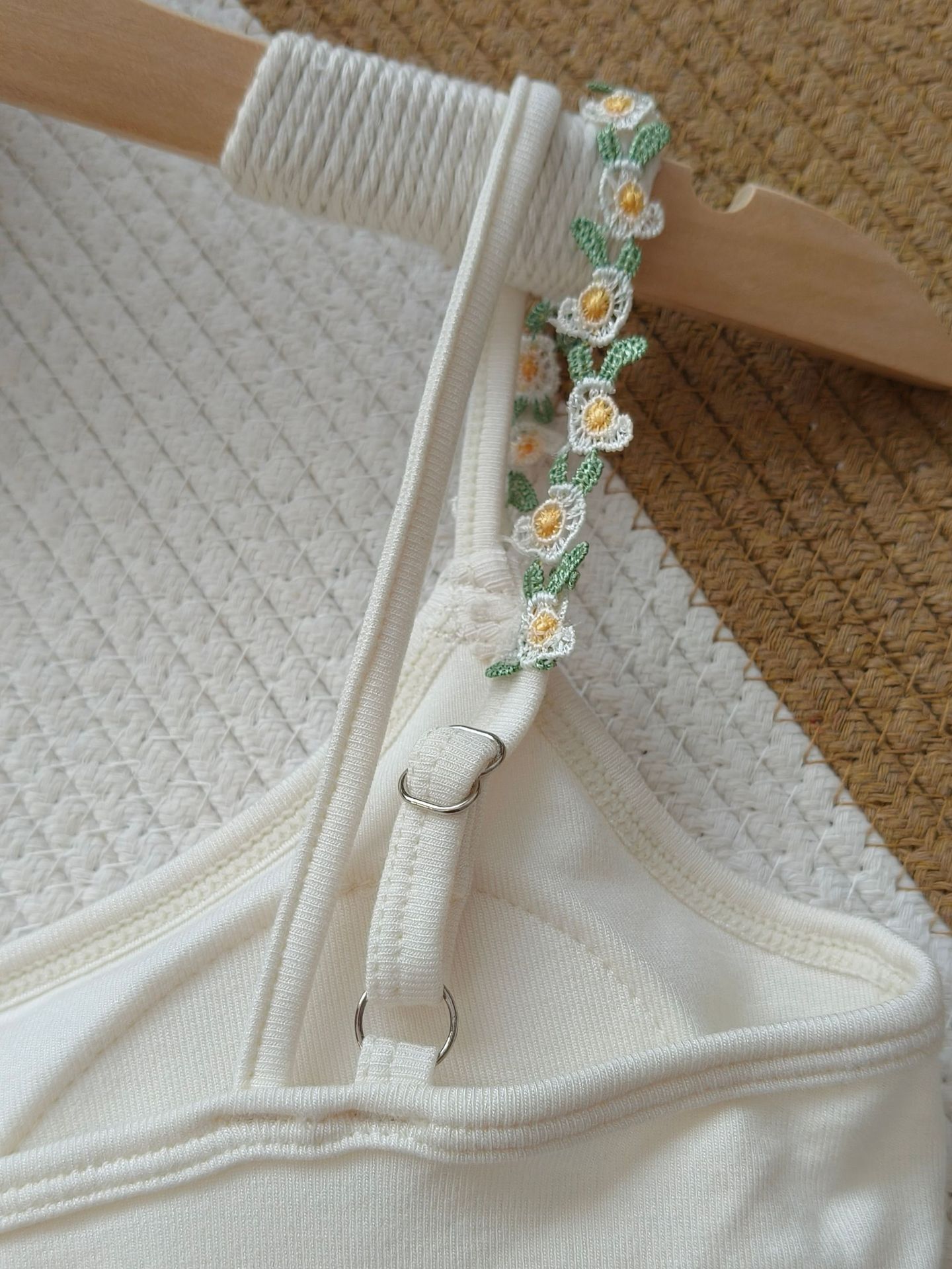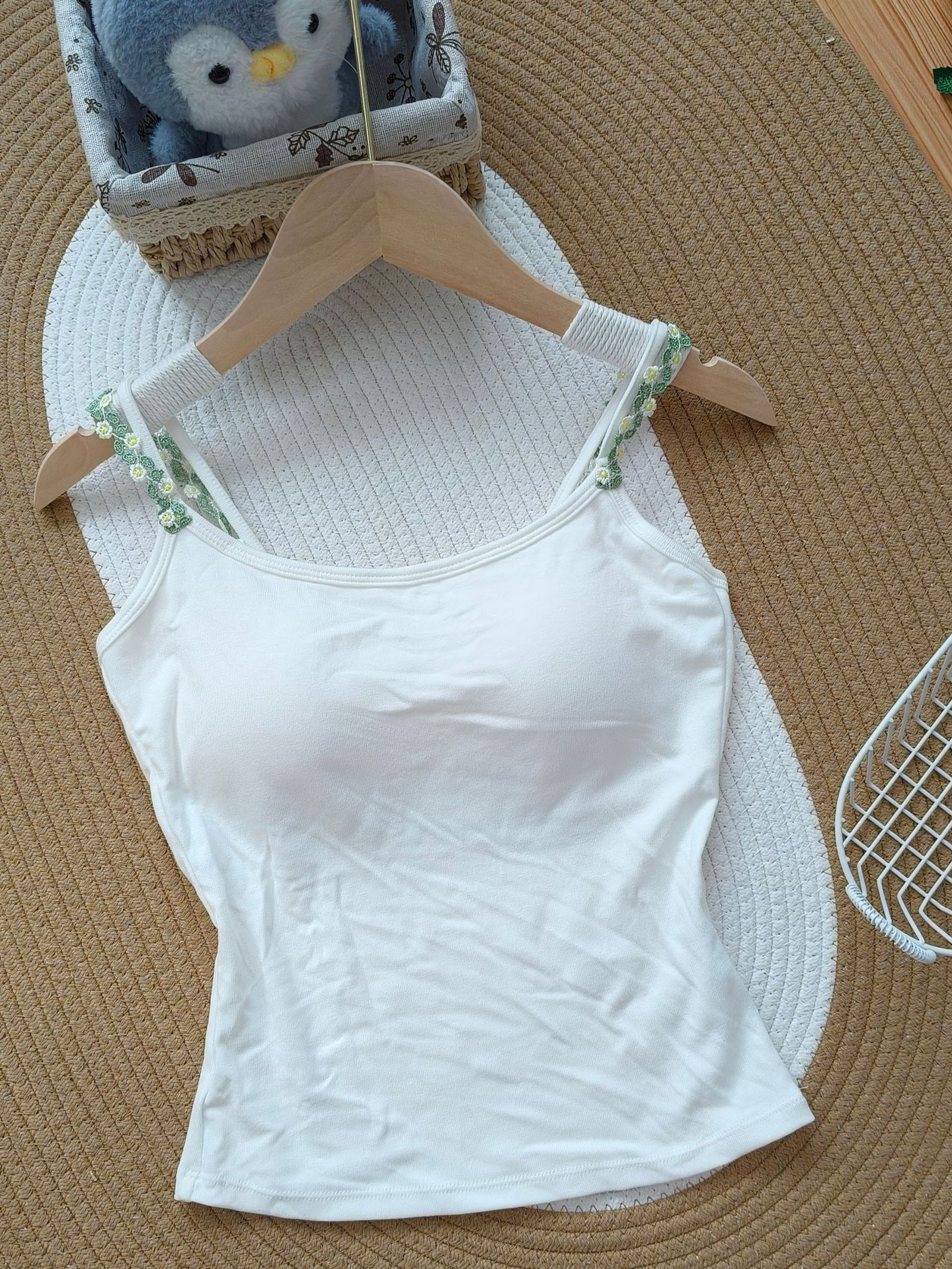 8300 덩굴꽃 캐미솔 고정형 가슴 패드 달콤하고 매콤한 페이크 투피스 캐미솔 아름다운 등 디자인 자수 탑