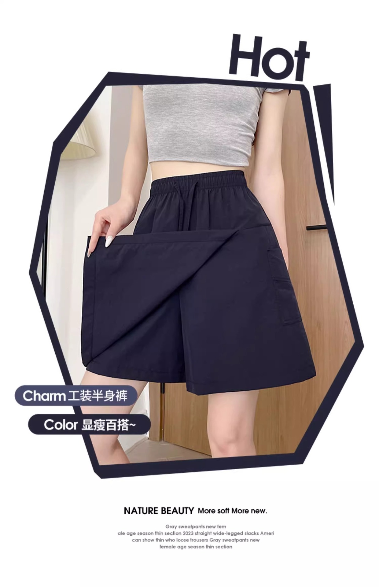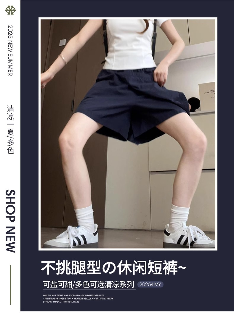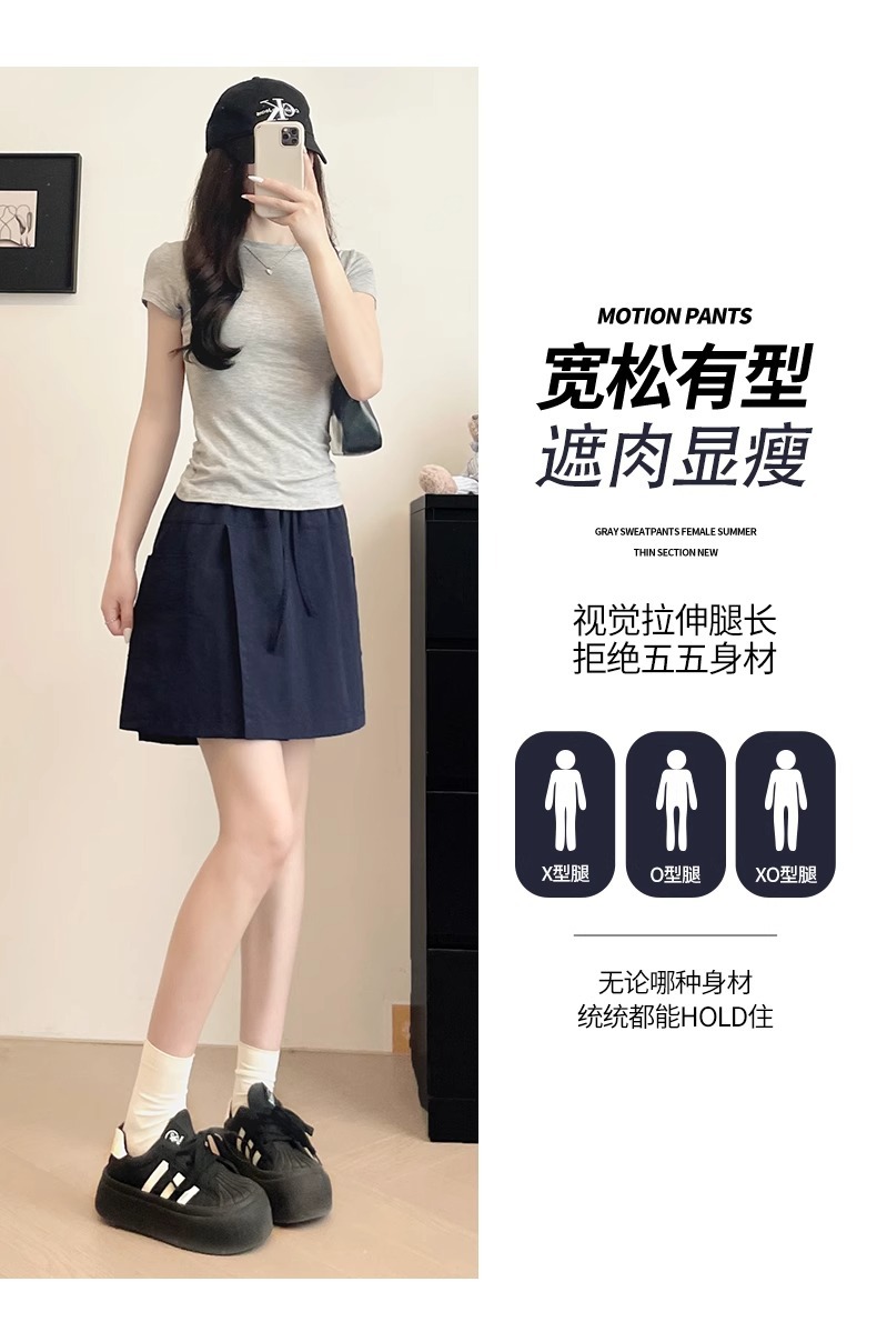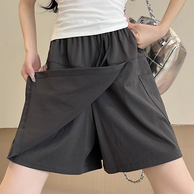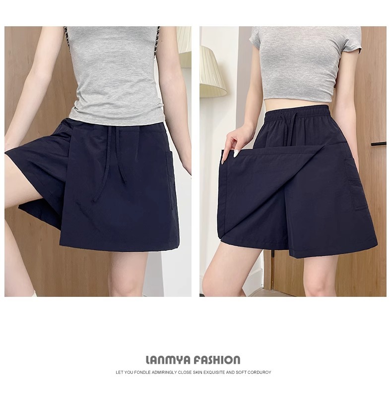 여성용 네이비 블루 카고 치마바지 여름 2025 새로운 루즈한 와이드 레그 5부 바지 캐주얼 야마모토 아이스 실크 반바지스토어 가기