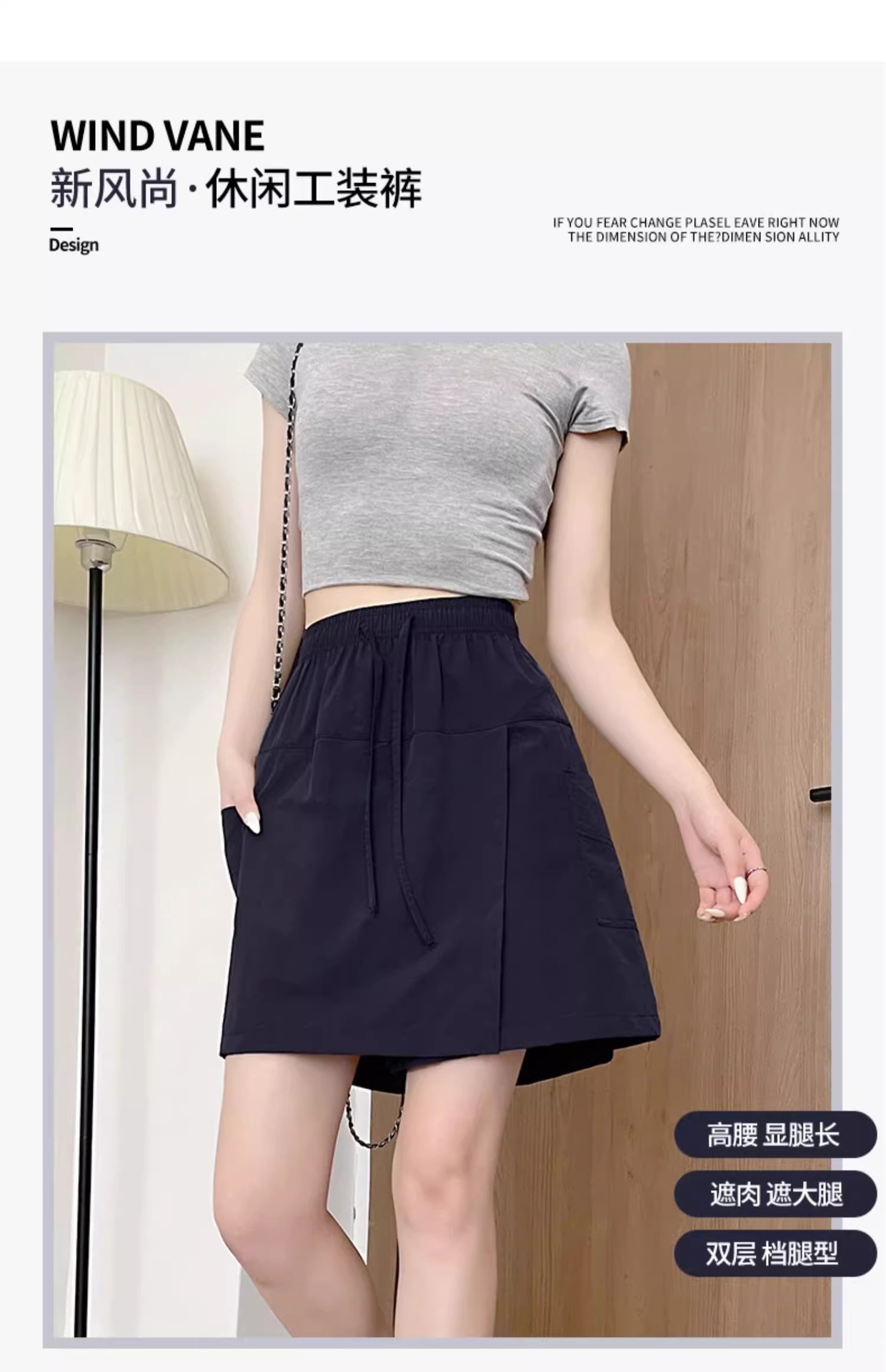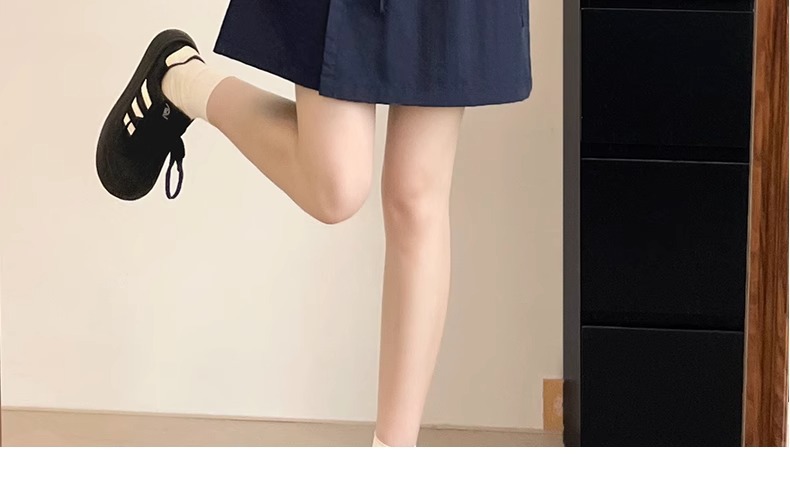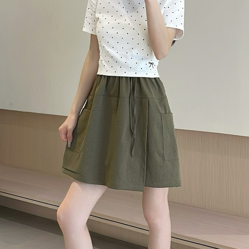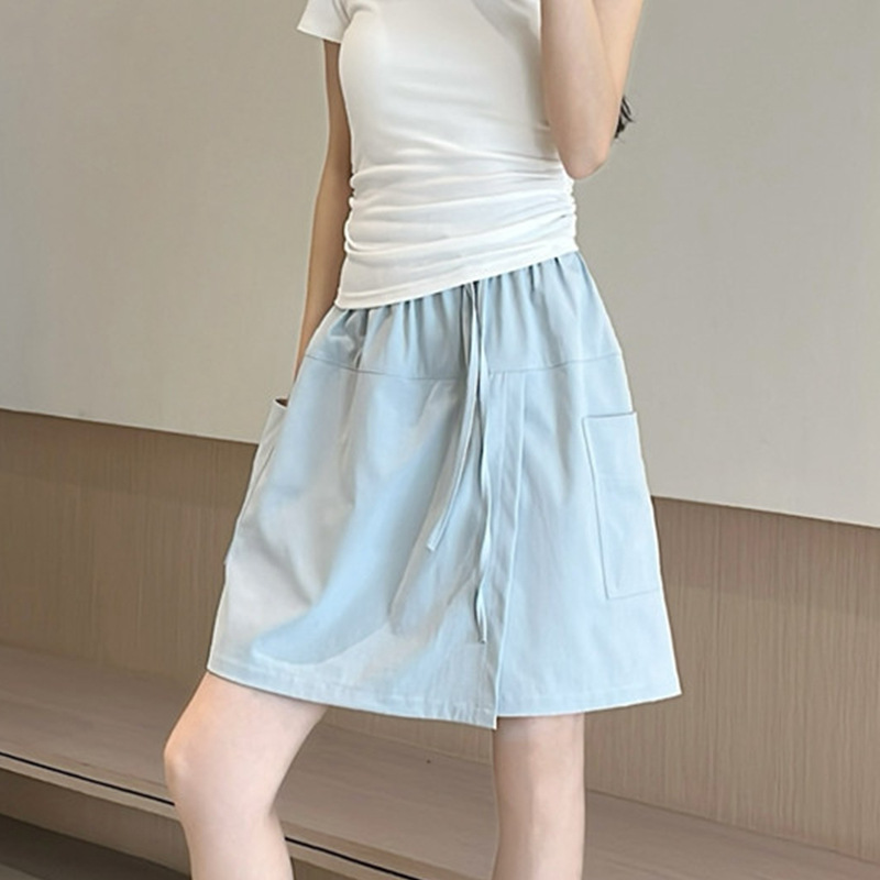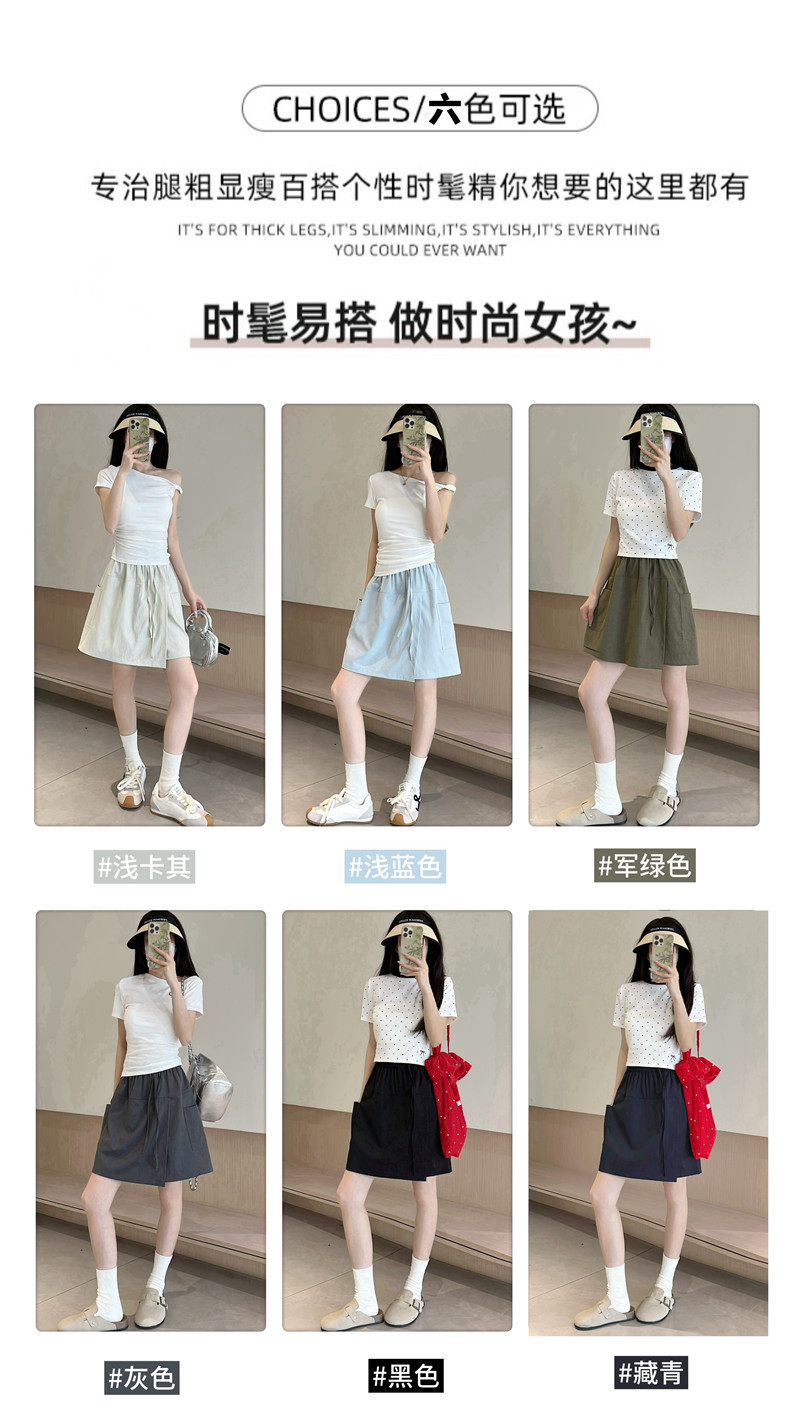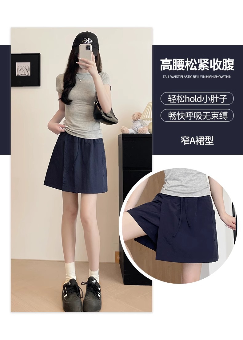 여성용 네이비 블루 카고 치마바지 여름 2025 새로운 루즈한 와이드 레그 5부 바지 캐주얼 야마모토 아이스 실크 반바지스토어 가기