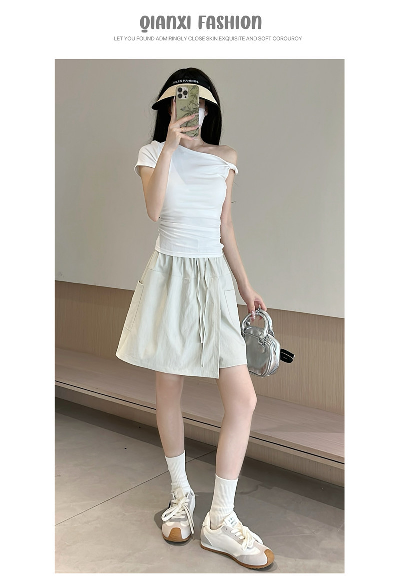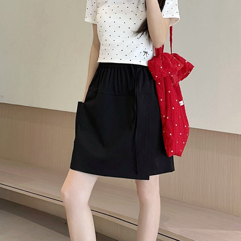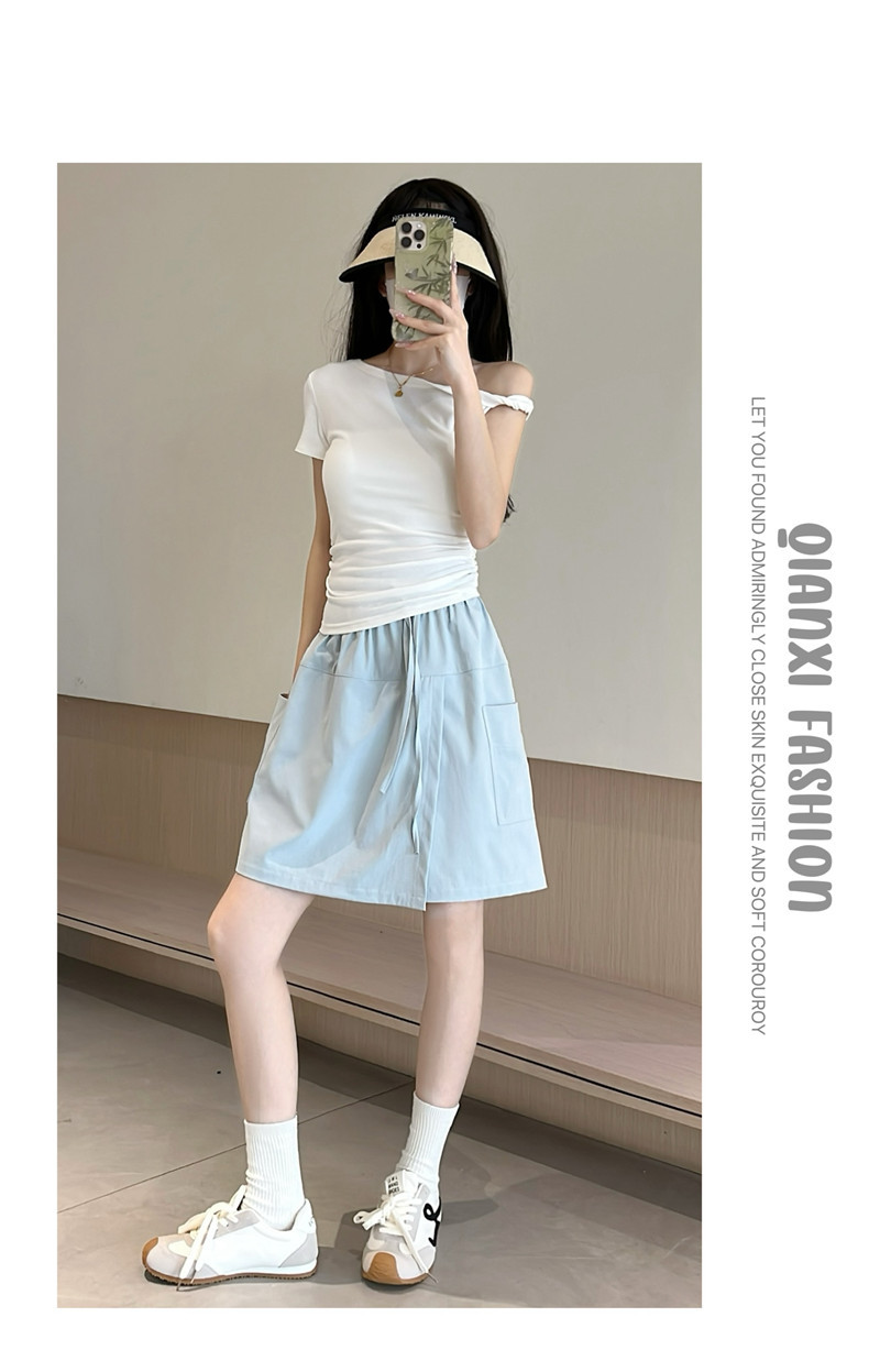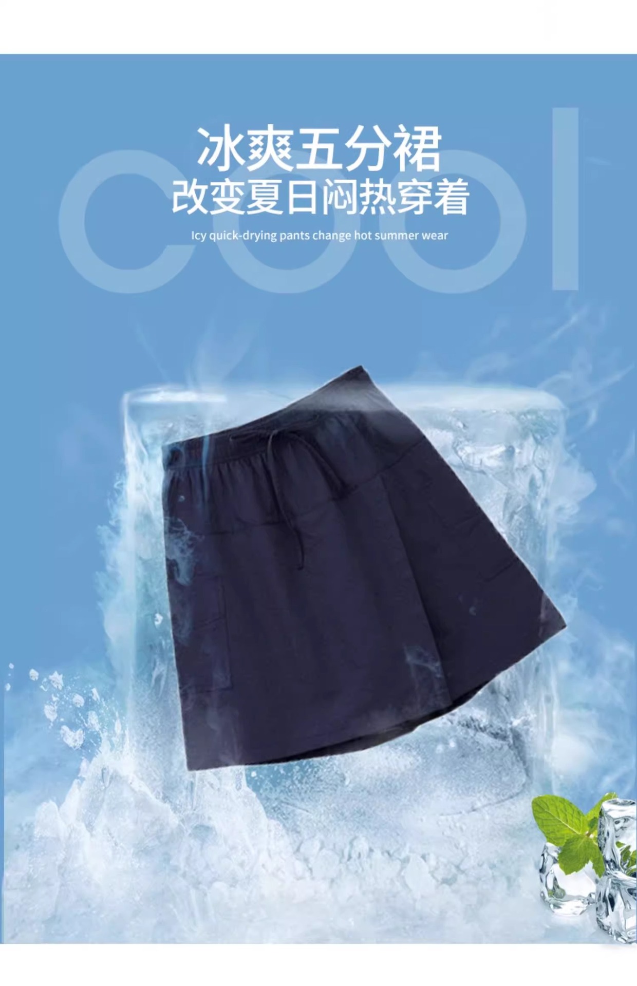 여성용 네이비 블루 카고 치마바지 여름 2025 새로운 루즈한 와이드 레그 5부 바지 캐주얼 야마모토 아이스 실크 반바지스토어 가기
