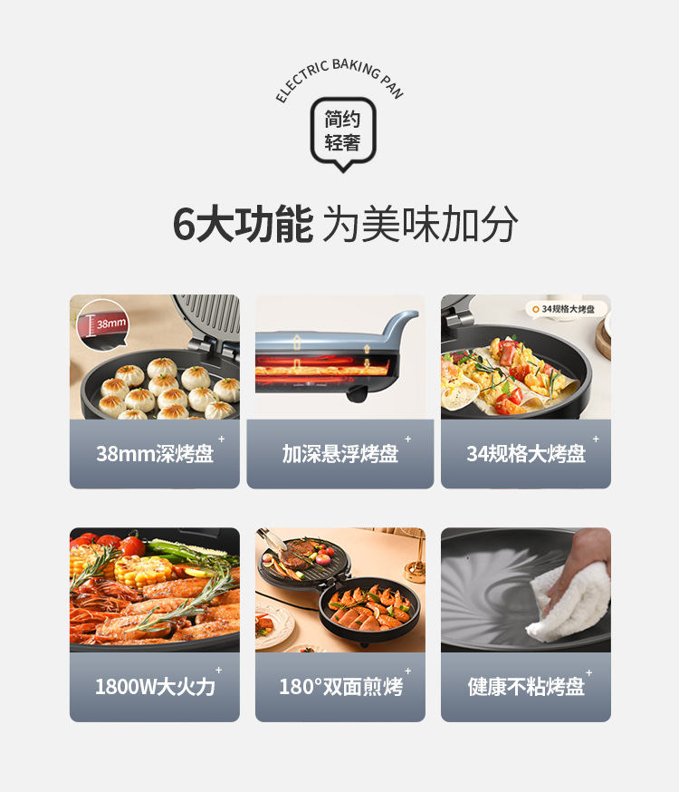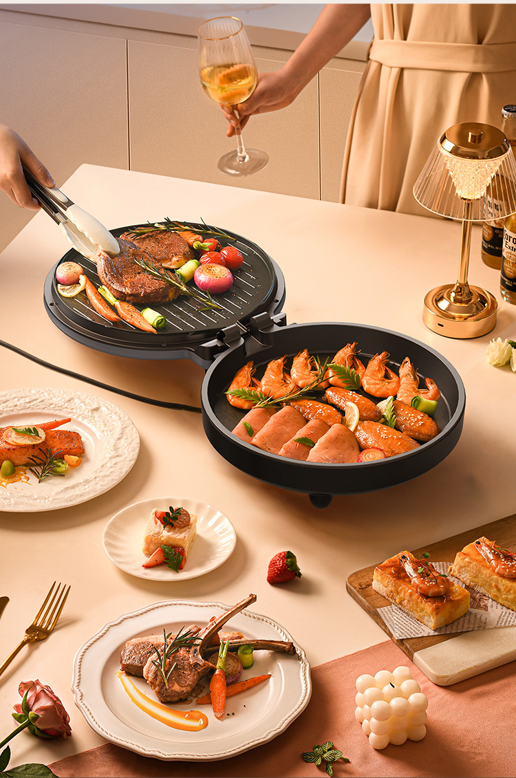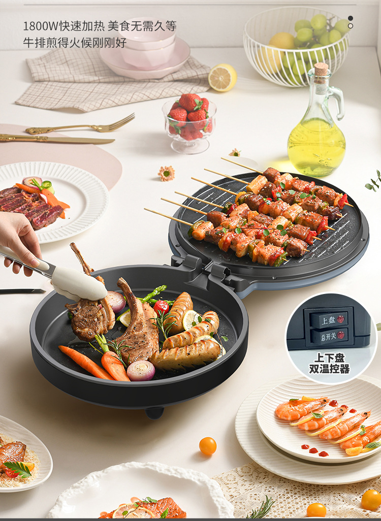 Liren 전기 베이킹 팬 가정용 양면 가열 전기 베이킹 다기능 팬케이크 기계 바베큐 팬 샌드위치 아침 식사 기계