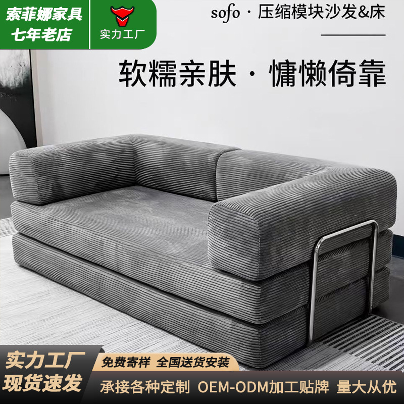 소파 베드 라운지 의자 코듀로이 분리형 모듈 두부 블록 게으른 소파 싱글 진공 스폰지 압축 소파스토어 가기