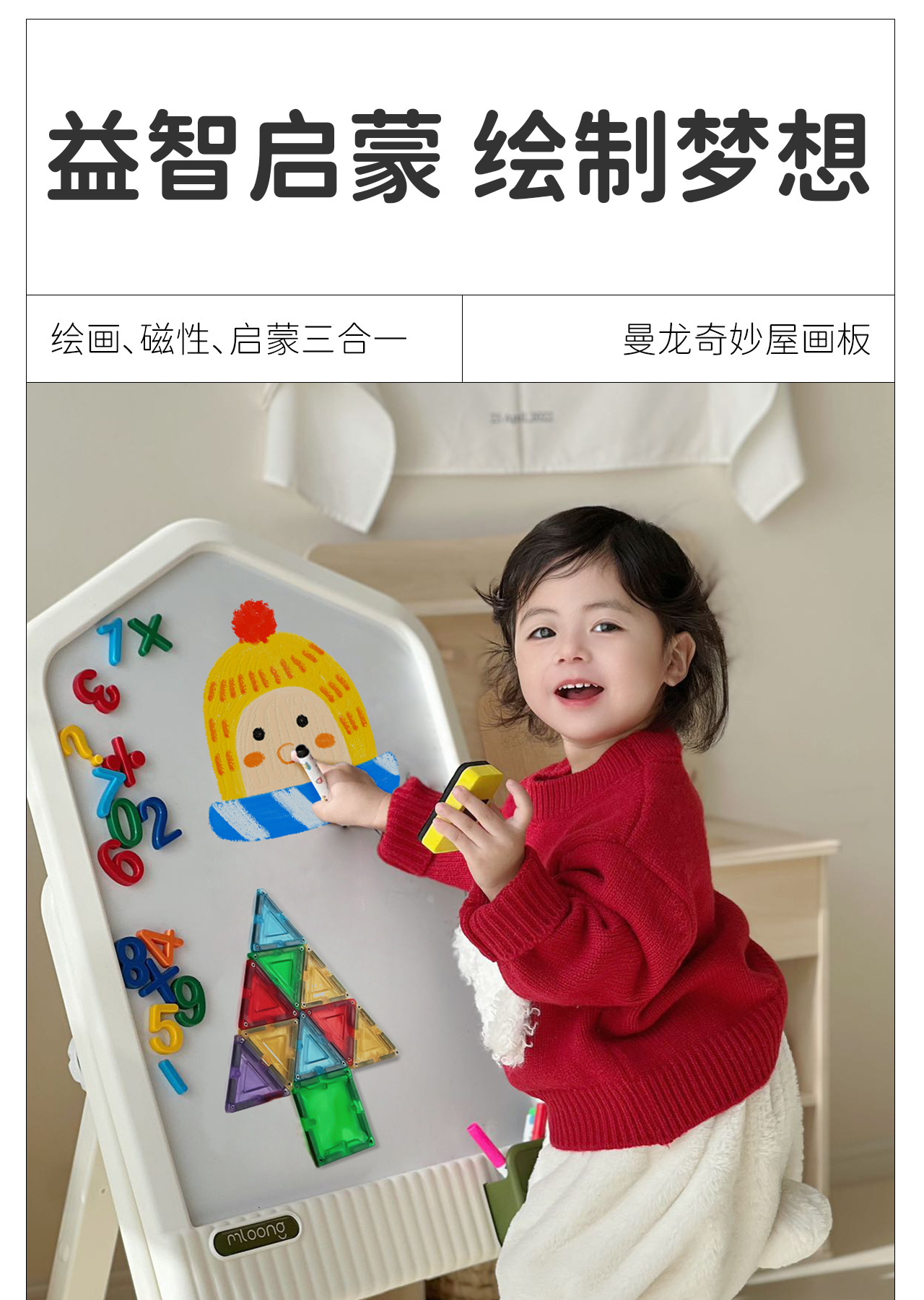 Manlong 어린이 드로잉 보드 새로운 스탠드 형 자기 쓰기 흑백 보드 보물 선물 다기능 어린이 자기 드로잉 보드스토어 가기