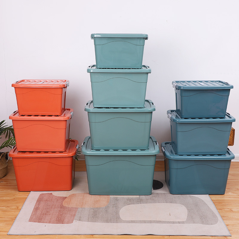 플라스틱 수납함, 손잡이가 있는 뚜껑형 수납함, 어린이 장난감 및 의류 보관함, 로고 인쇄된 수납함스토어 가기