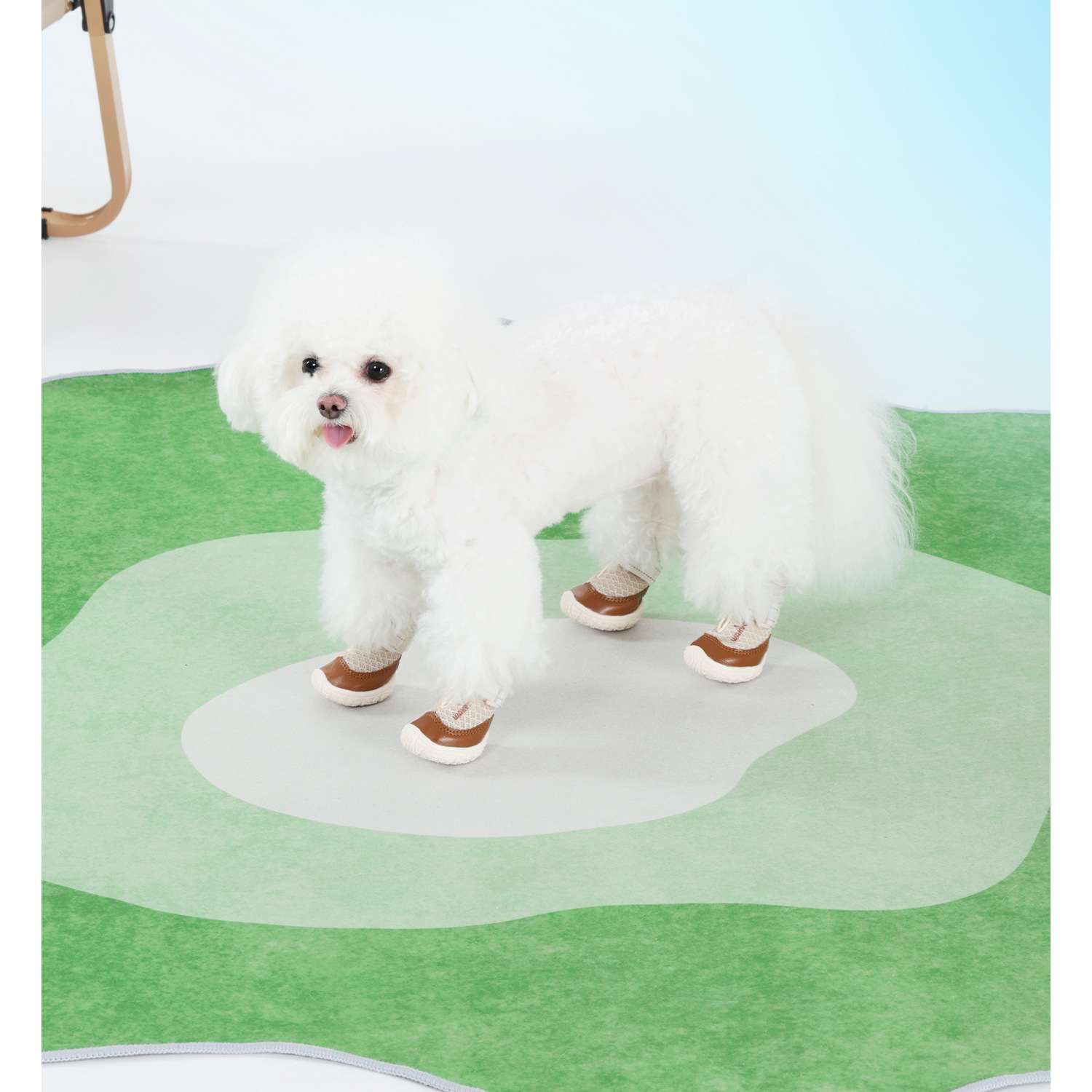 Wakytu 영국 애완 동물 신발 봄과 여름 작은 개 비숑 슈나우저 테디 외출 방지 더러운 통기성 네발 신발스토어 가기