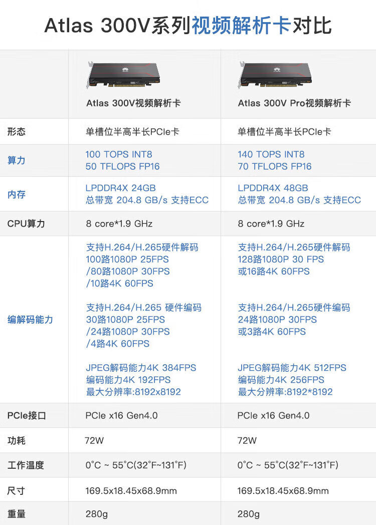 Huawei Ascend Atlas300I 300V PRO 24G 48G 96GAI 추론 카드 가속 카드 Deep에 적합