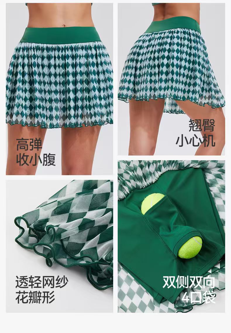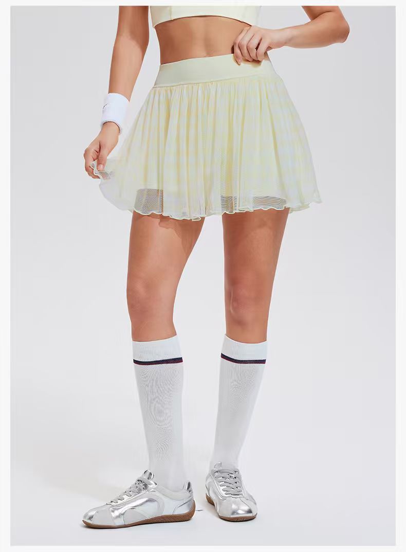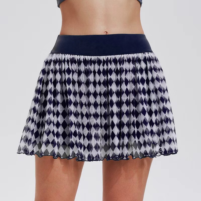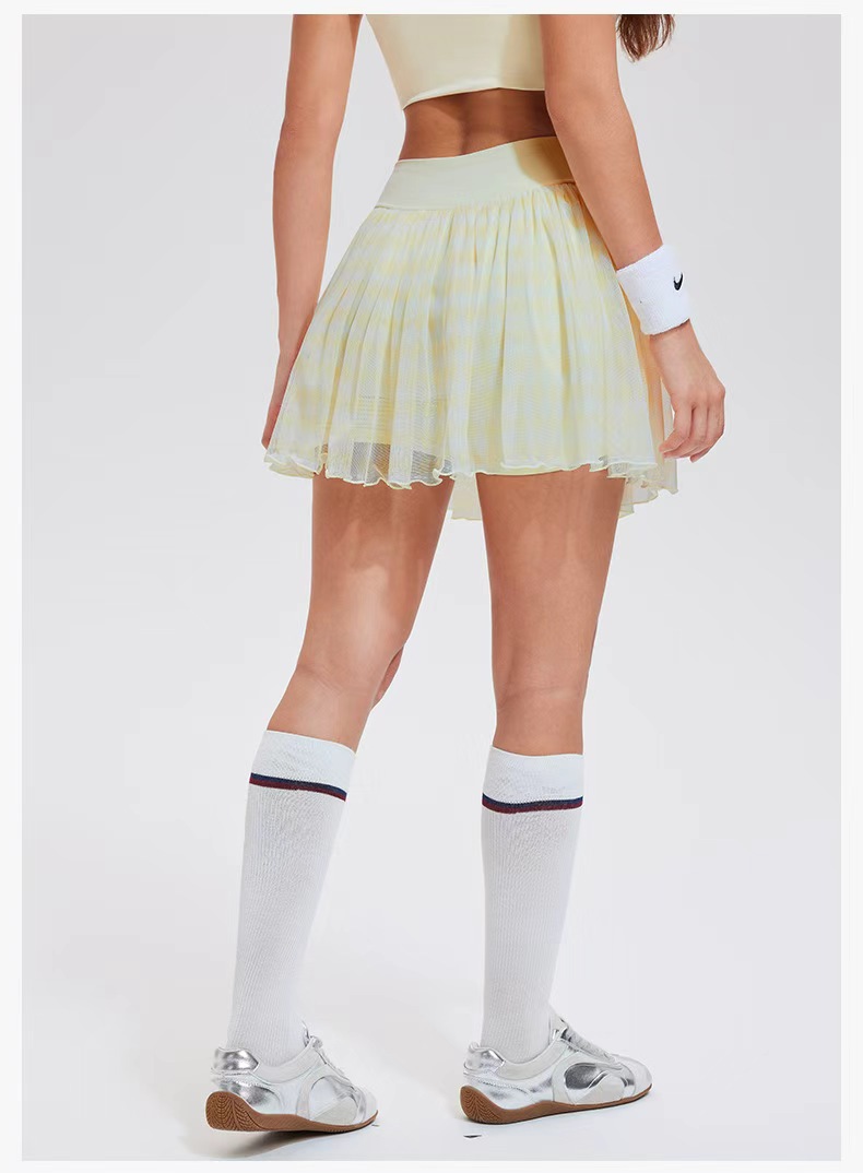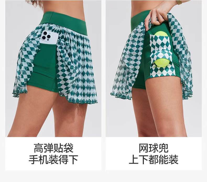 여성을 위한 새로운 크로스보더 메쉬 스포츠 스커트, 속건성 하프 길이 요가 스커트, 노출 방지 피트니스 배드민턴 테니스 스커트
