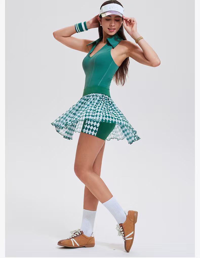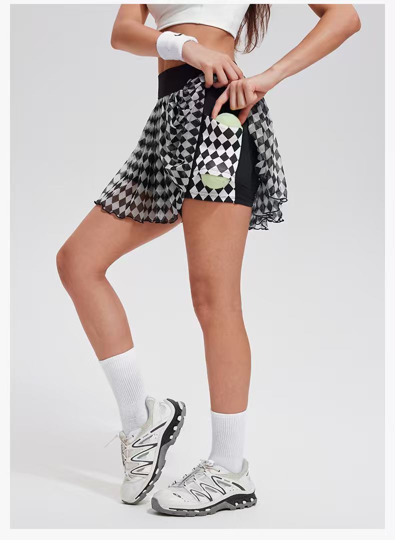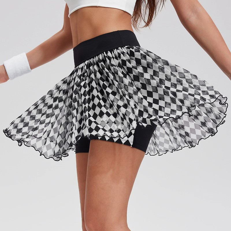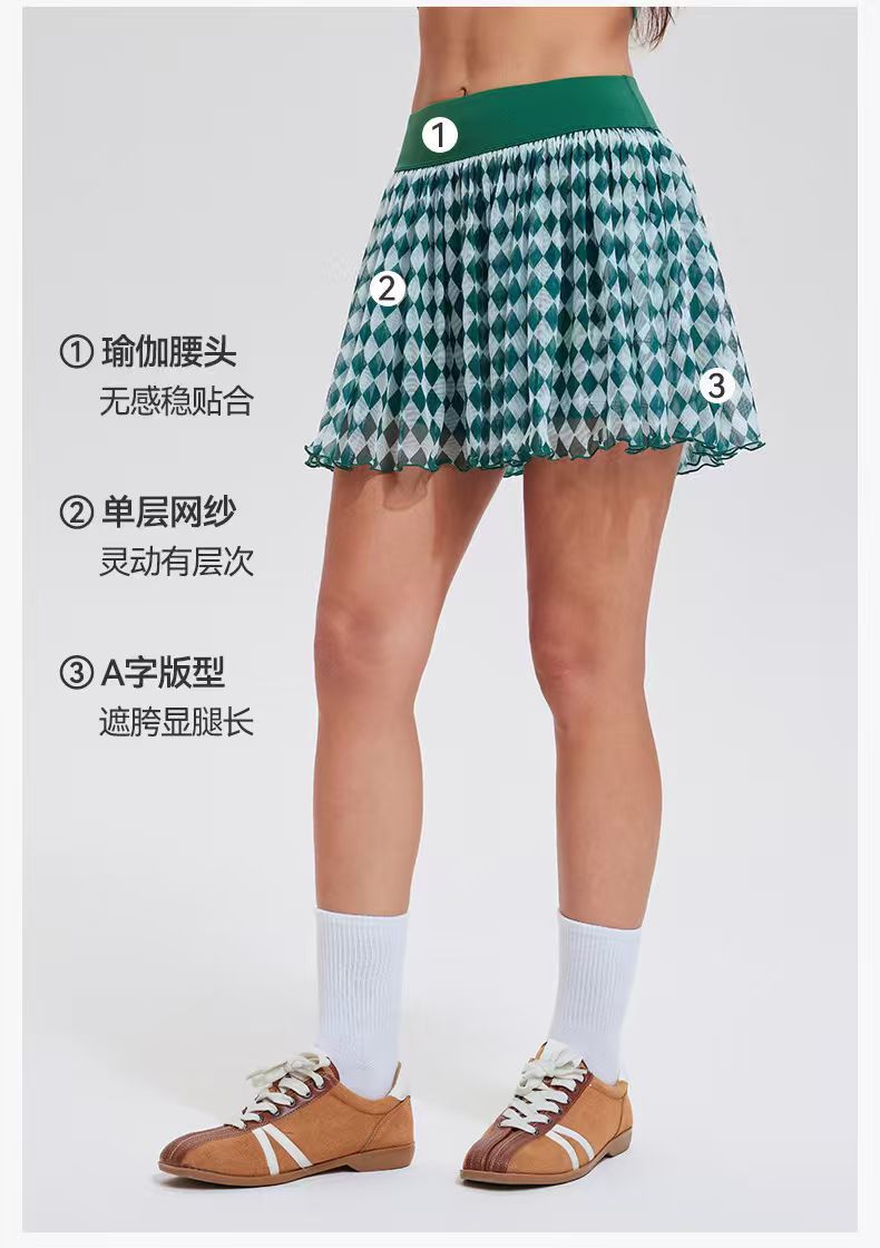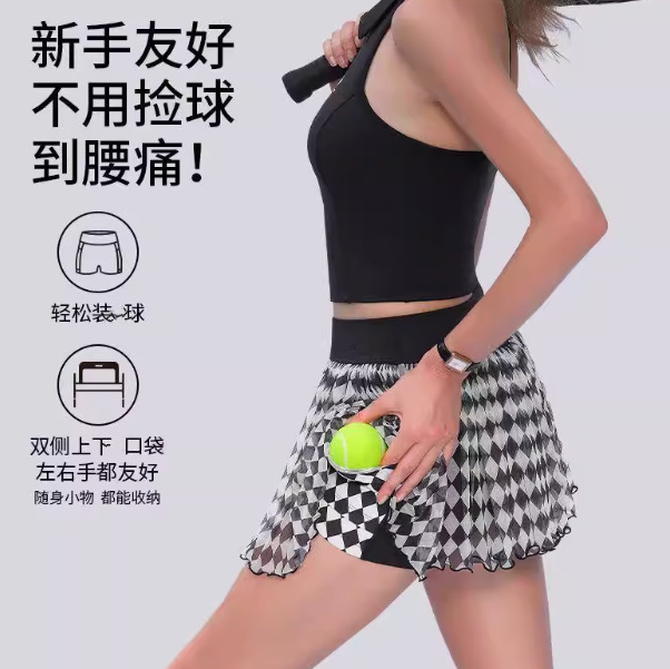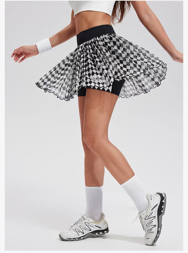 여성을 위한 새로운 크로스보더 메쉬 스포츠 스커트, 속건성 하프 길이 요가 스커트, 노출 방지 피트니스 배드민턴 테니스 스커트