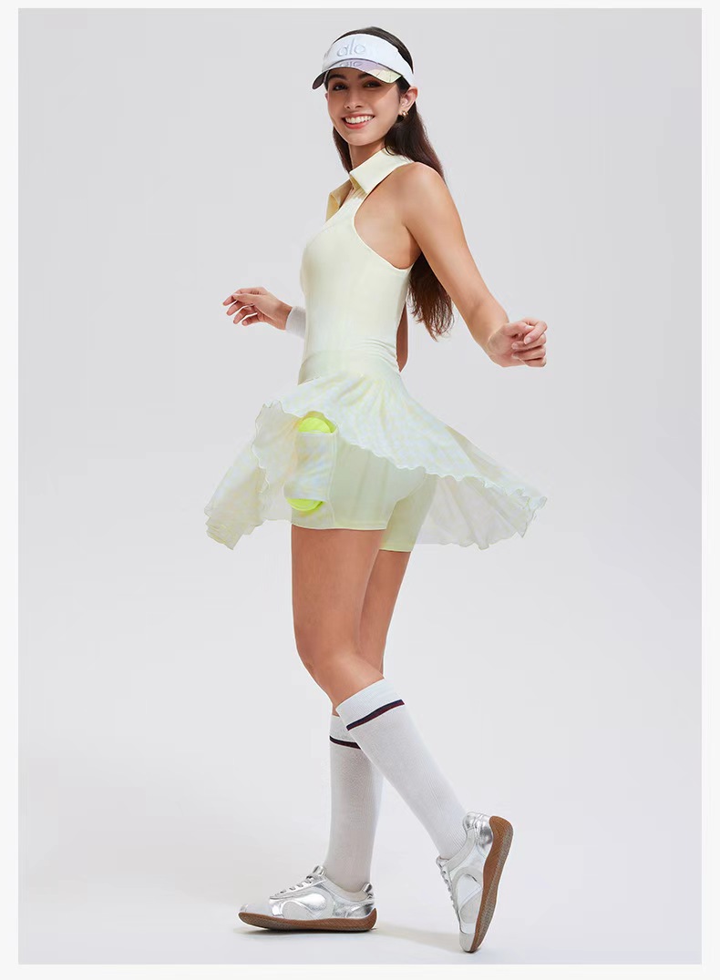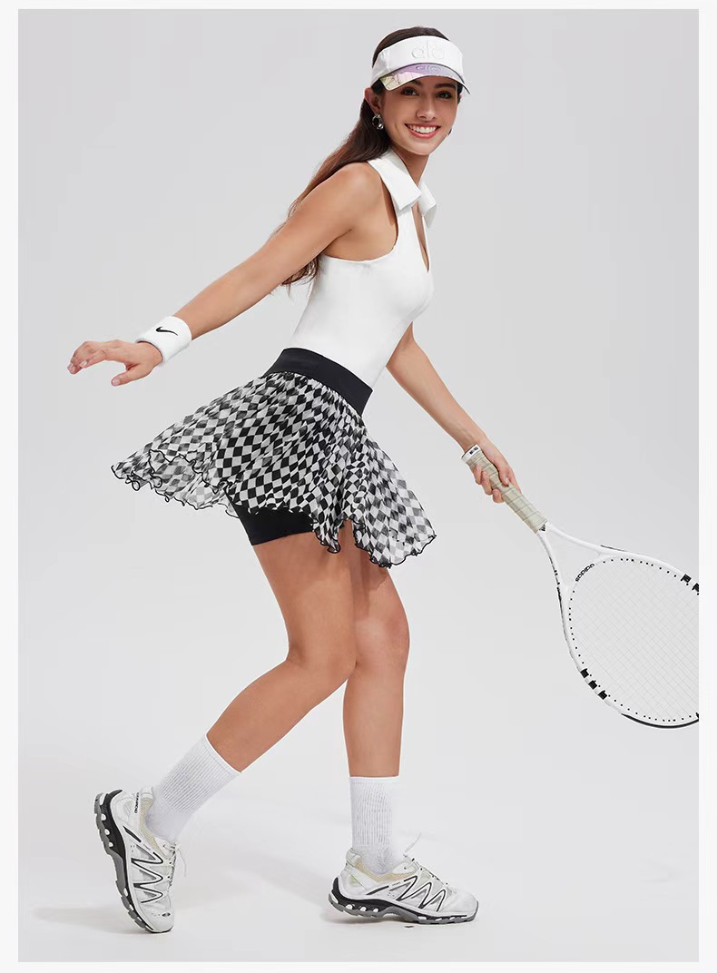 여성을 위한 새로운 크로스보더 메쉬 스포츠 스커트, 속건성 하프 길이 요가 스커트, 노출 방지 피트니스 배드민턴 테니스 스커트스토어 가기