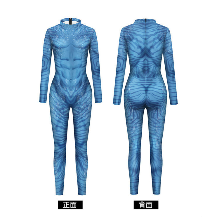 아마존의 새로운 애니메이션 영화 아바타 2 디지털 인쇄 남성과 여성의 같은 스타일 코스프레 슬림 피트 점프 슈트 여성