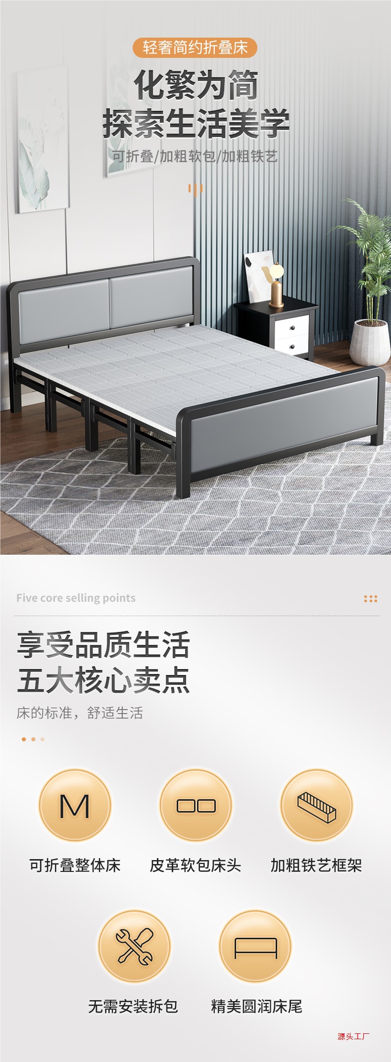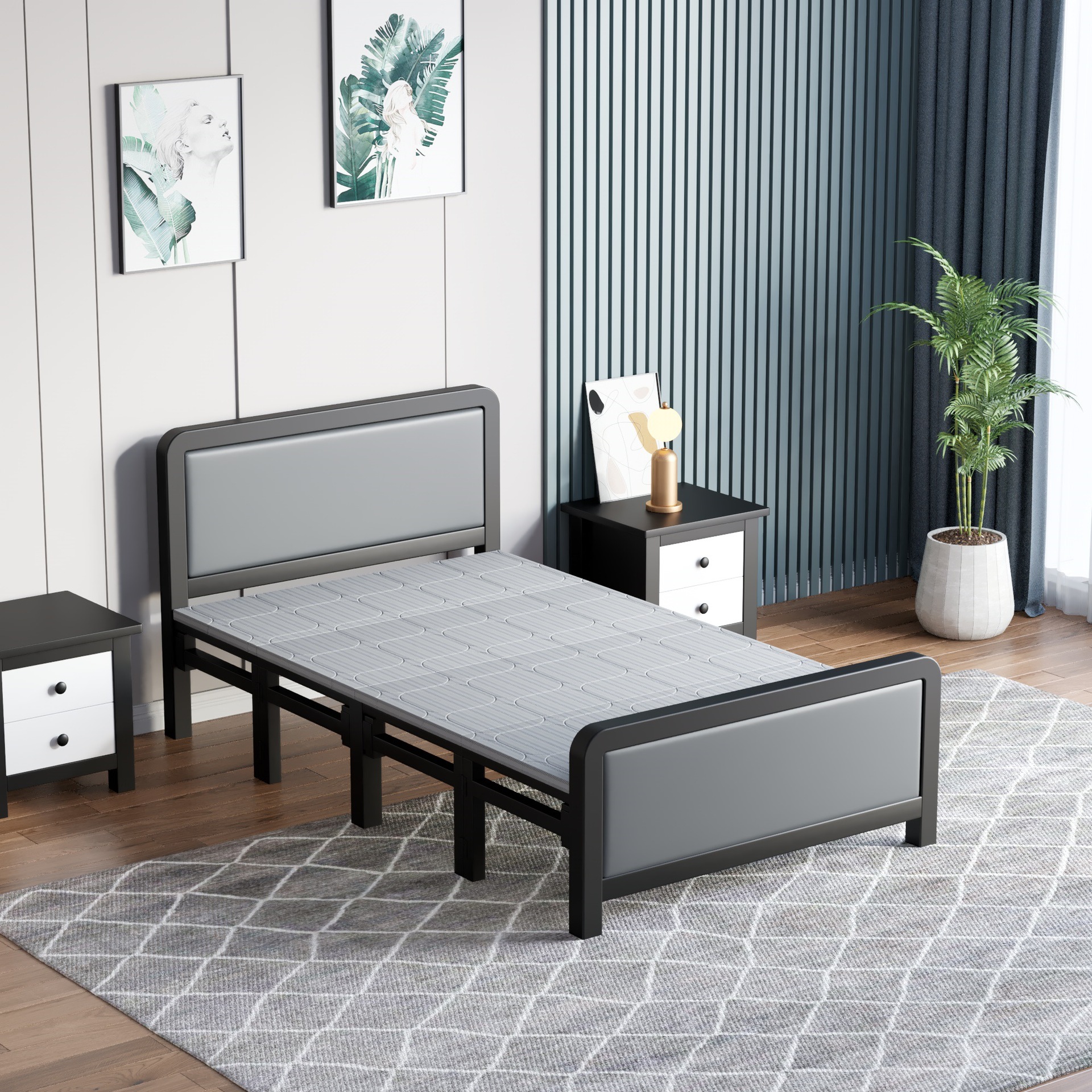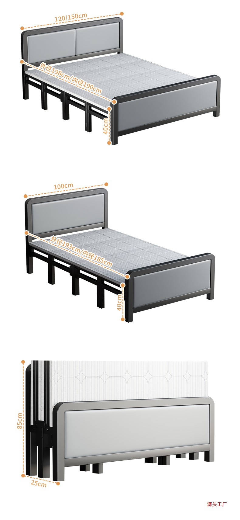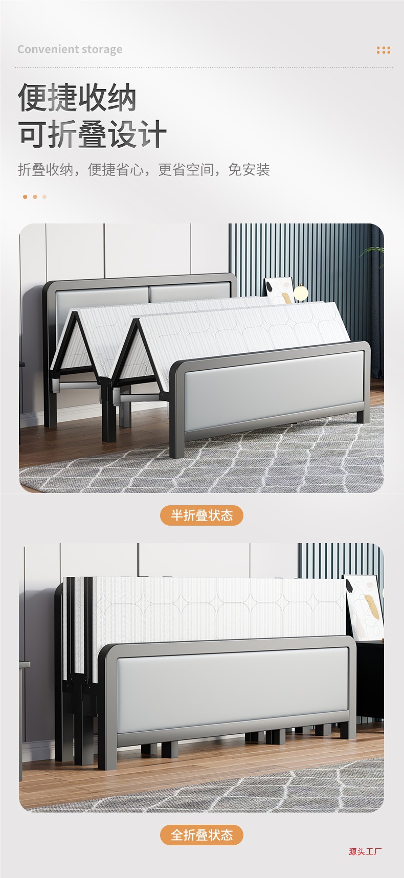 접이식 침대 사무실 점심 시간 하드 보드 침대 간단한 싱글 철제 침대 1.5m 더블 침대 휴대용 간단한 60% off 침대