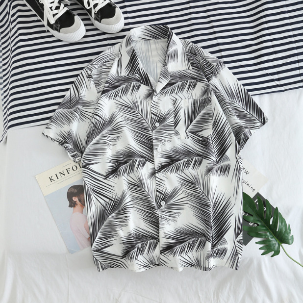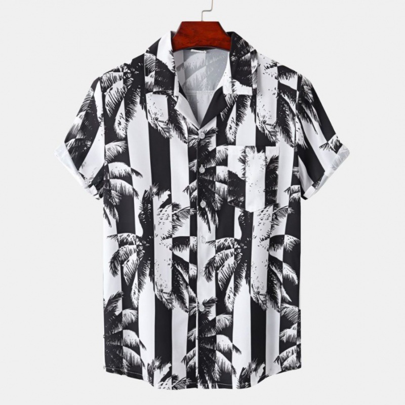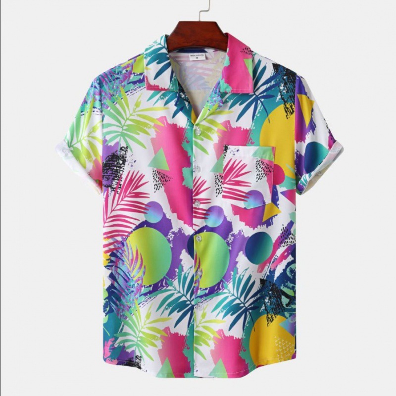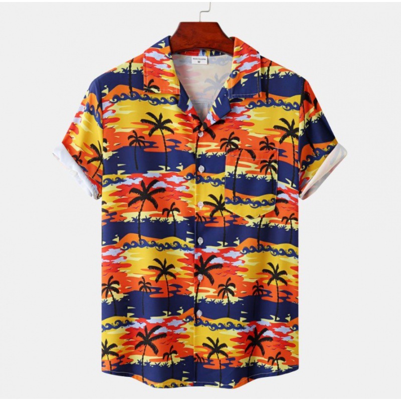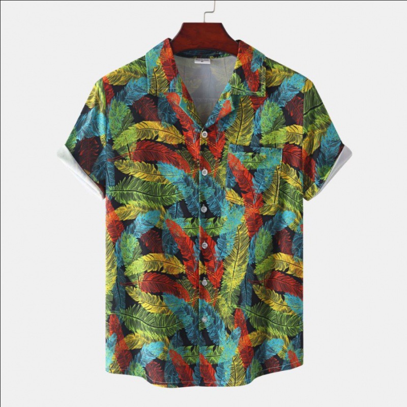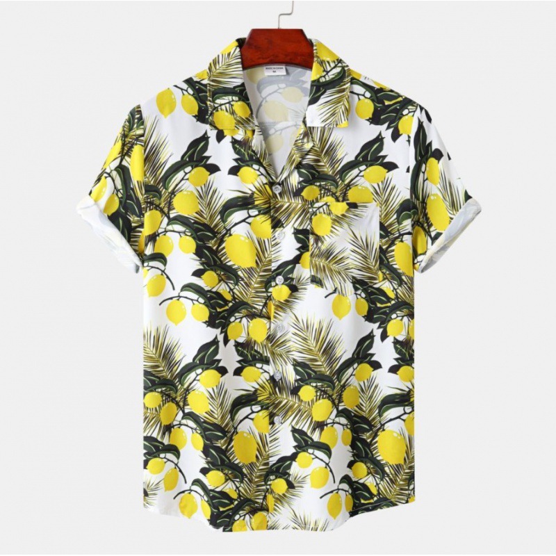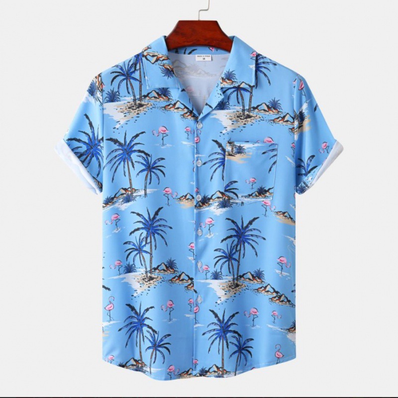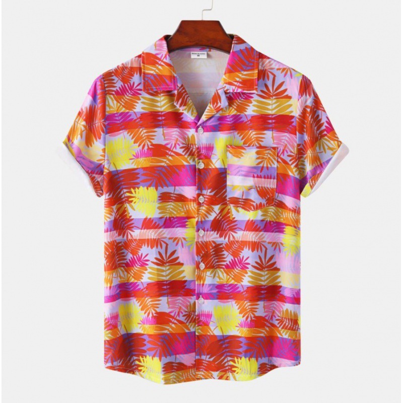 국경 간 대외 무역 새로운 남성 반팔 셔츠 유럽 사이즈 유행 패션 하와이 해변 스타일 남성용 프린트 셔츠