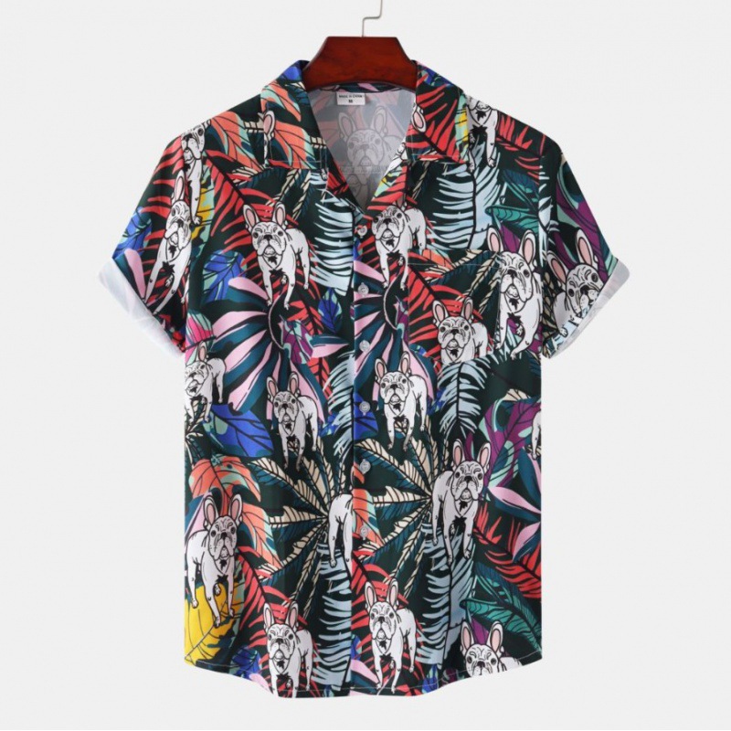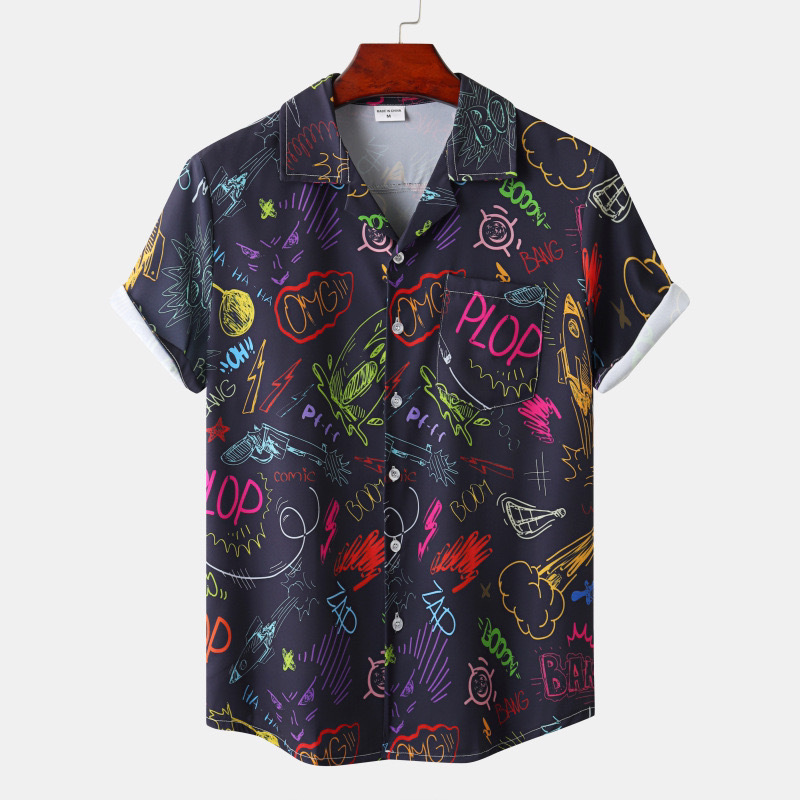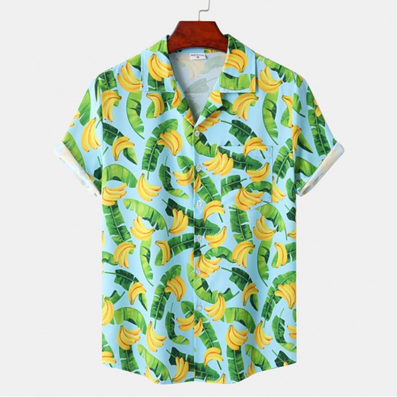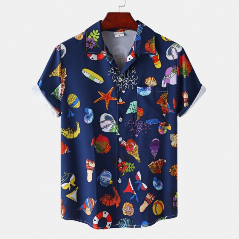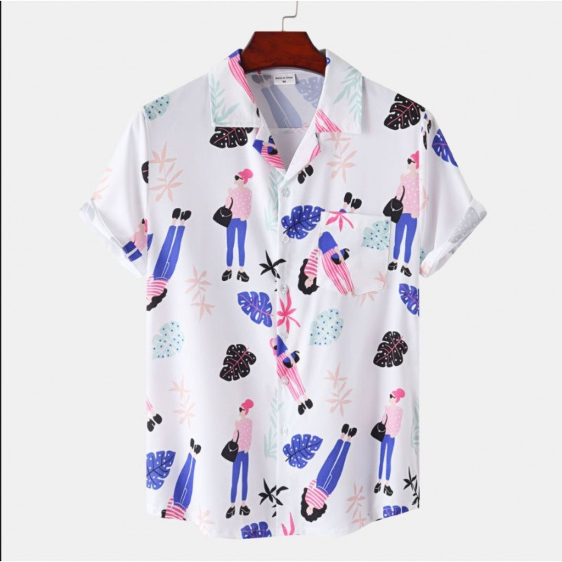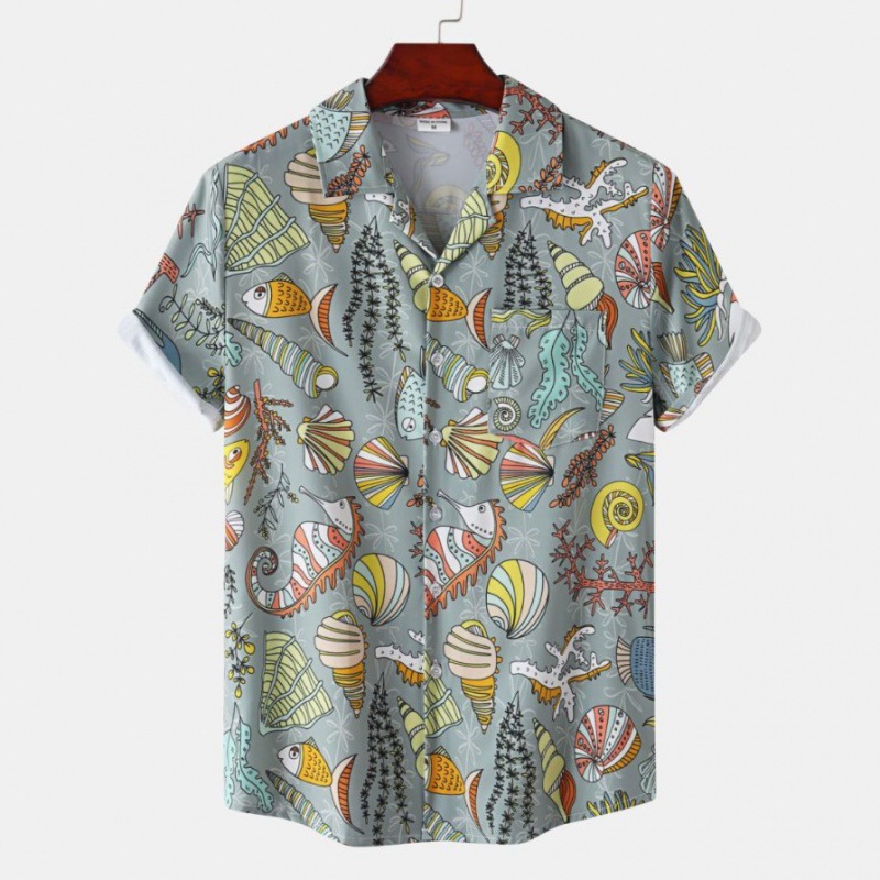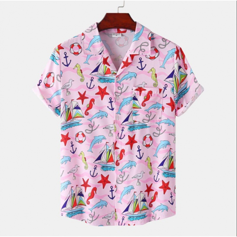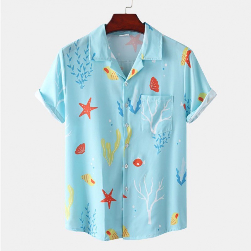 국경 간 대외 무역 새로운 남성 반팔 셔츠 유럽 사이즈 유행 패션 하와이 해변 스타일 남성용 프린트 셔츠