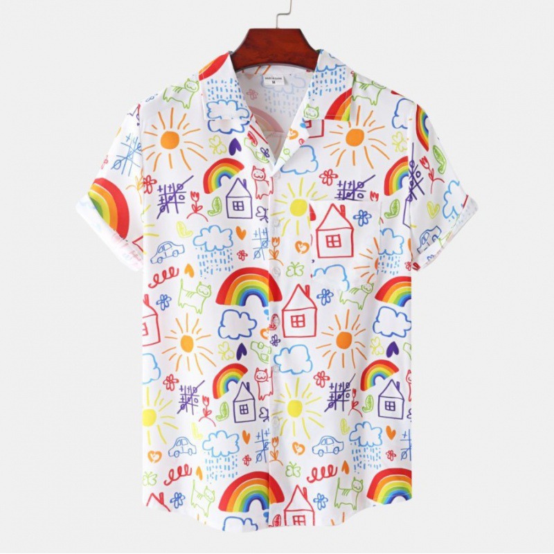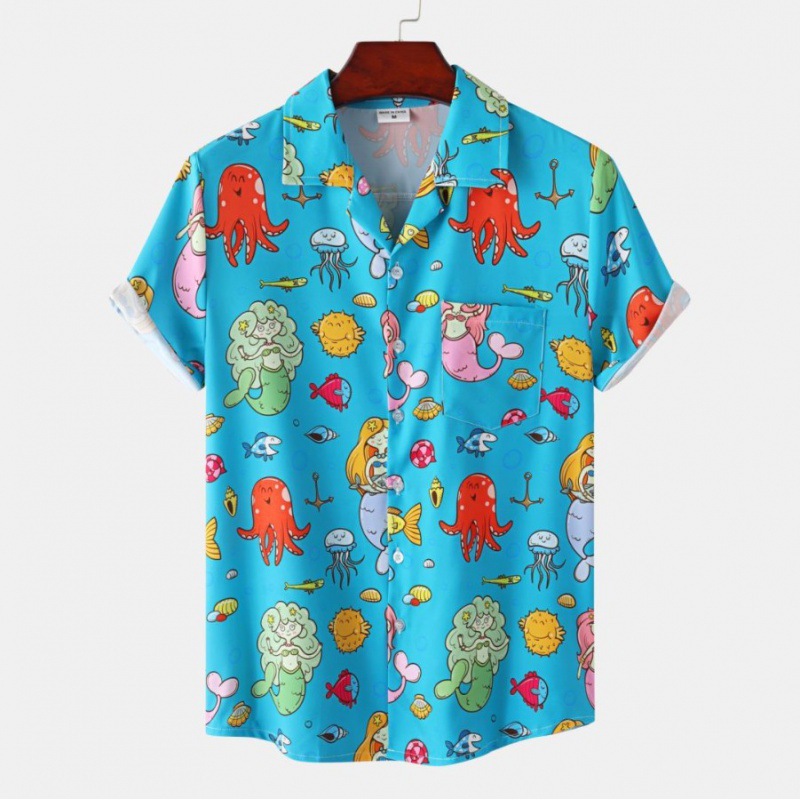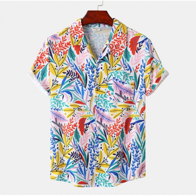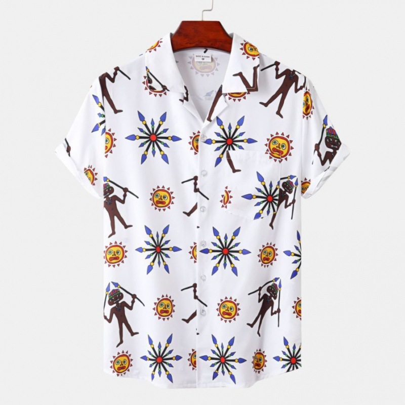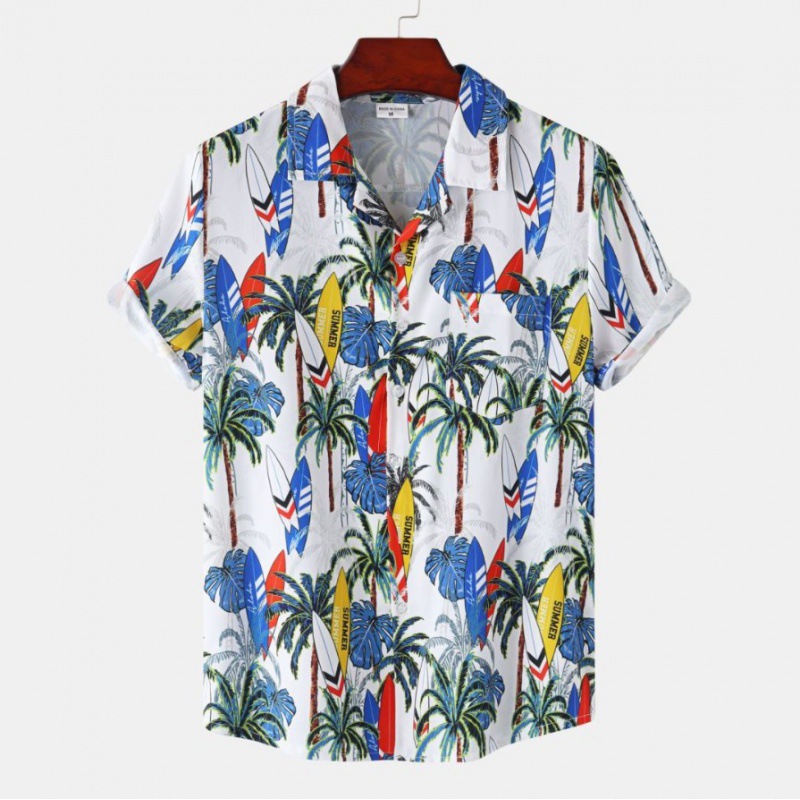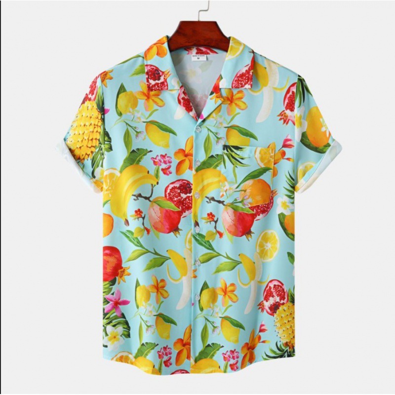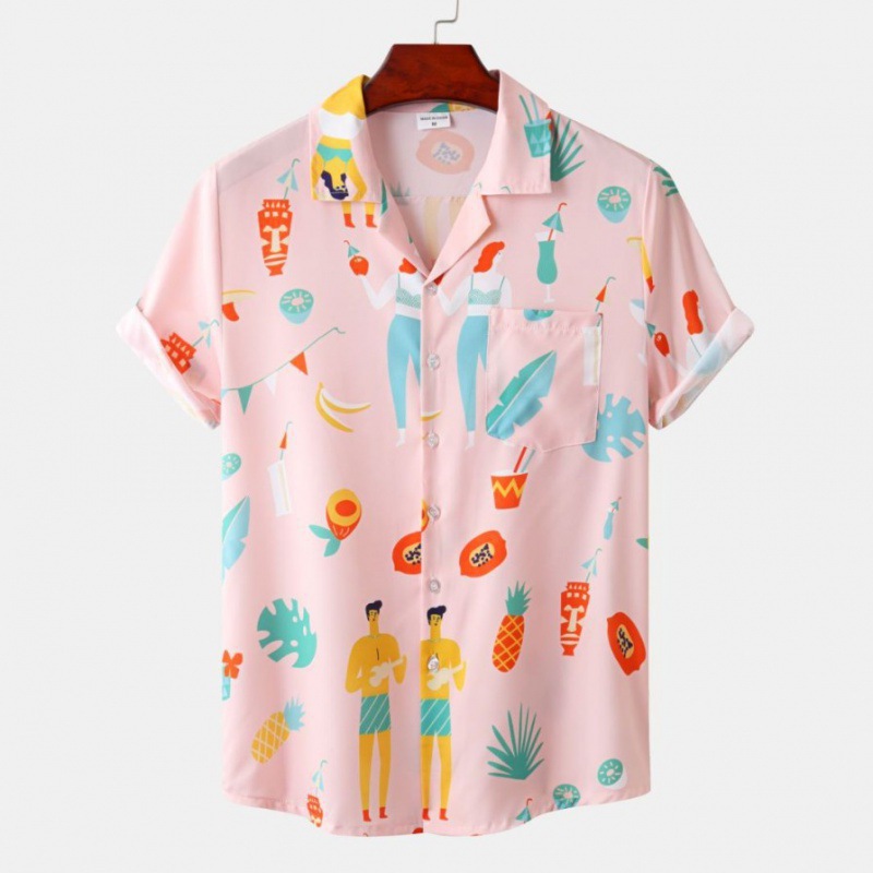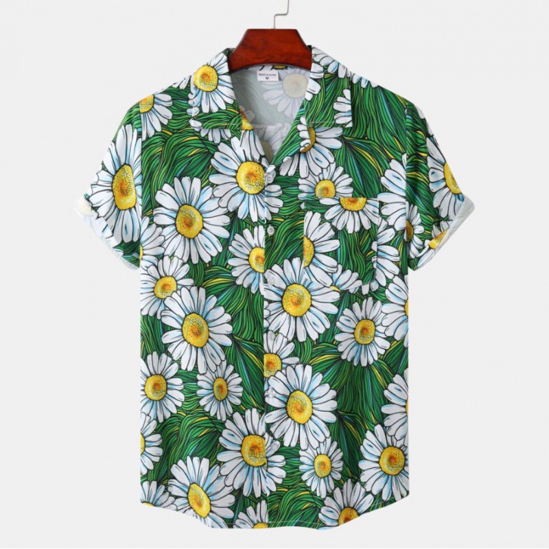 국경 간 대외 무역 새로운 남성 반팔 셔츠 유럽 사이즈 유행 패션 하와이 해변 스타일 남성용 프린트 셔츠
