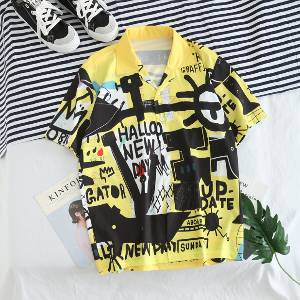국경 간 대외 무역 새로운 남성 반팔 셔츠 유럽 사이즈 유행 패션 하와이 해변 스타일 남성용 프린트 셔츠스토어 가기