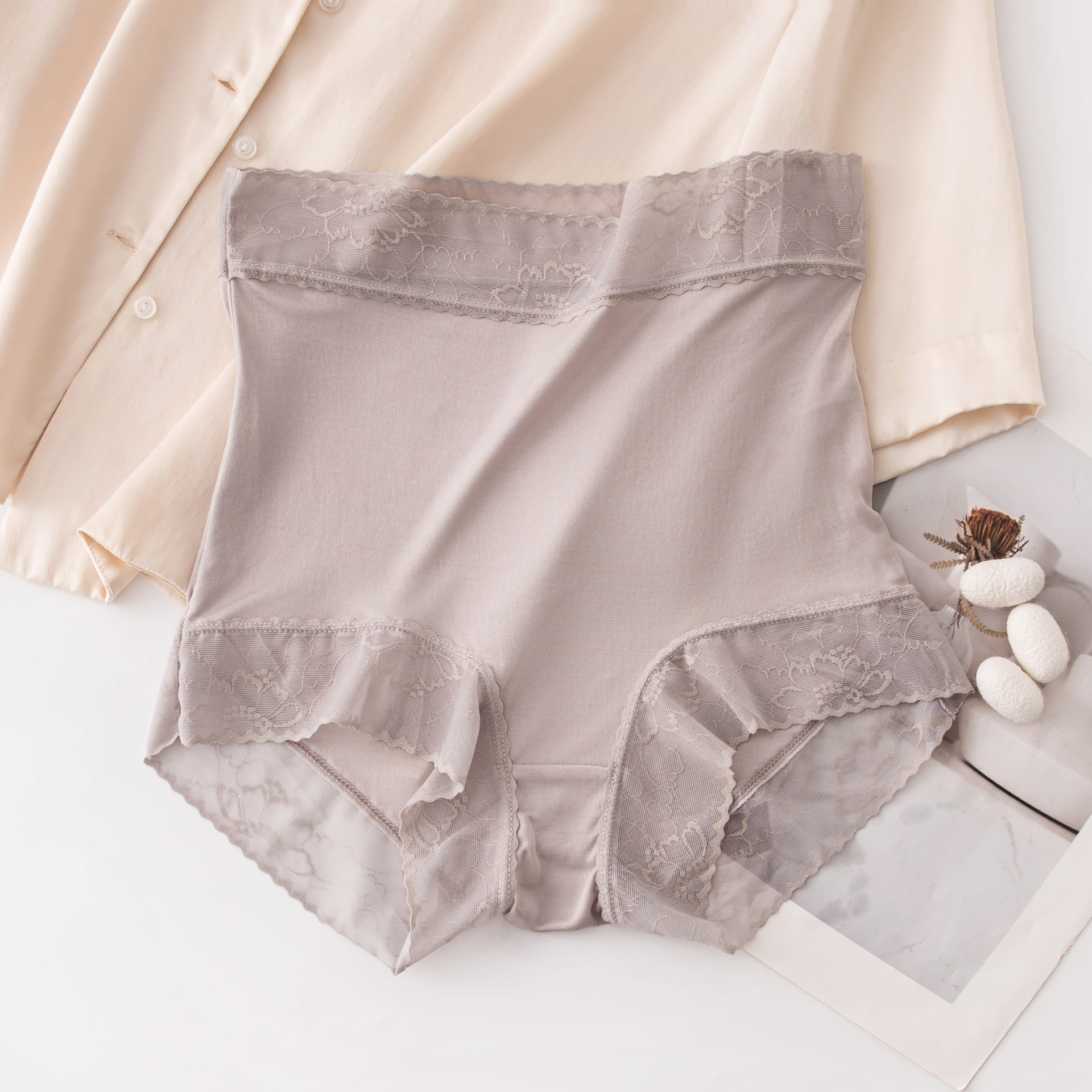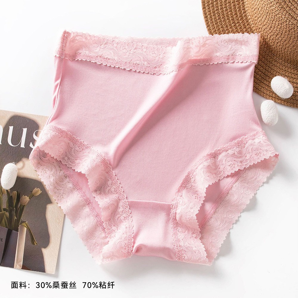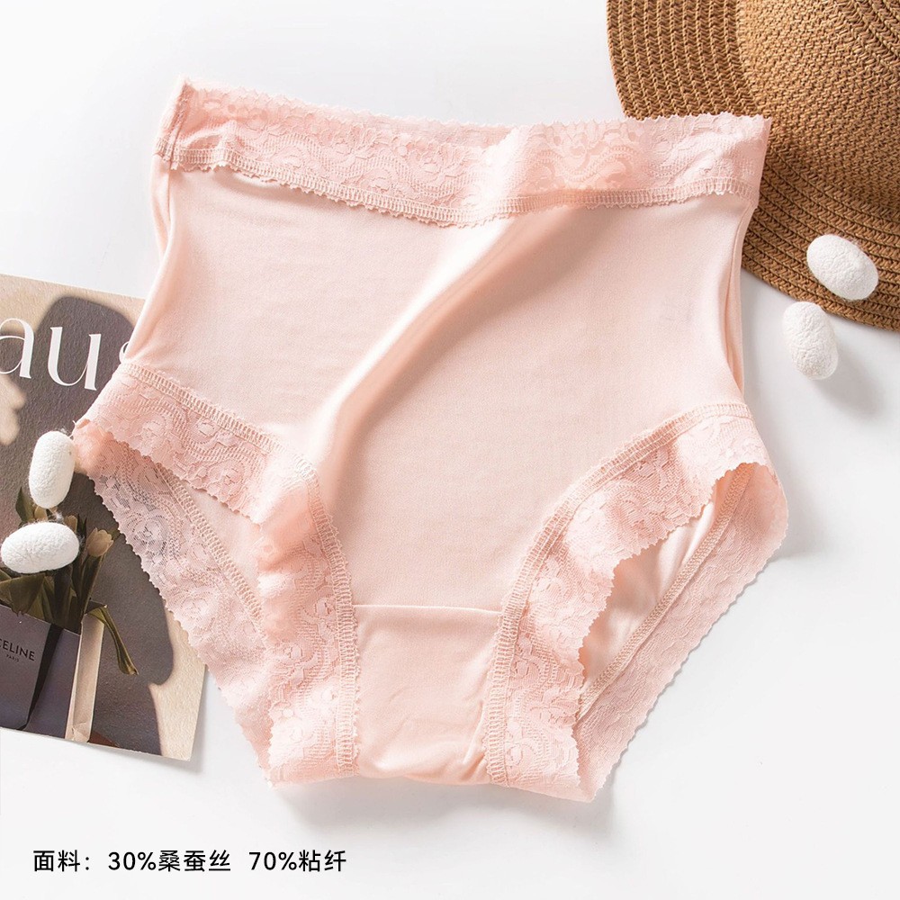 여성용 실크 하이웨이스트 팬티, 레이스 섹시 멀버리 실크 반바지, 엉덩이를 감싸는 통기성 좋은 편안한 팬티