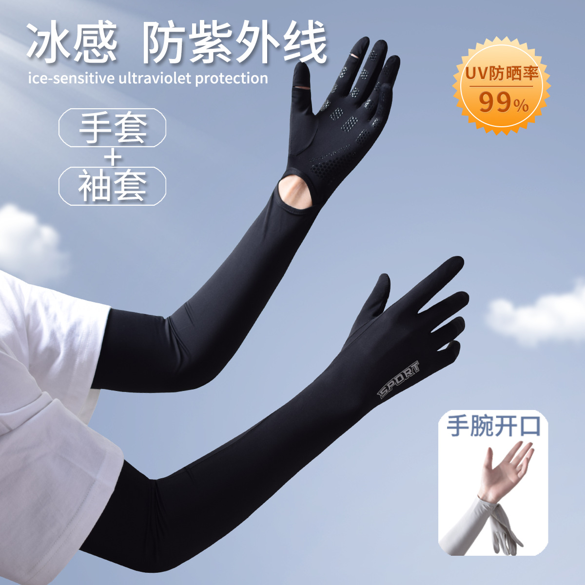 새로운 나일론 태양 보호 얼음 슬리브 야외 사이클링 안티 UV 얼음 실크 슬리브 여성 여름 긴 오픈 태양 보호 장갑