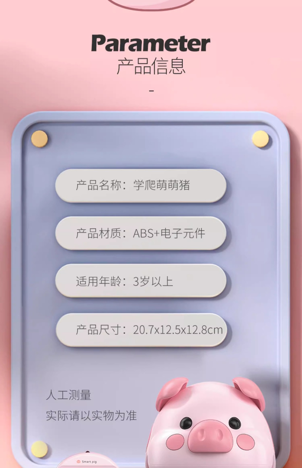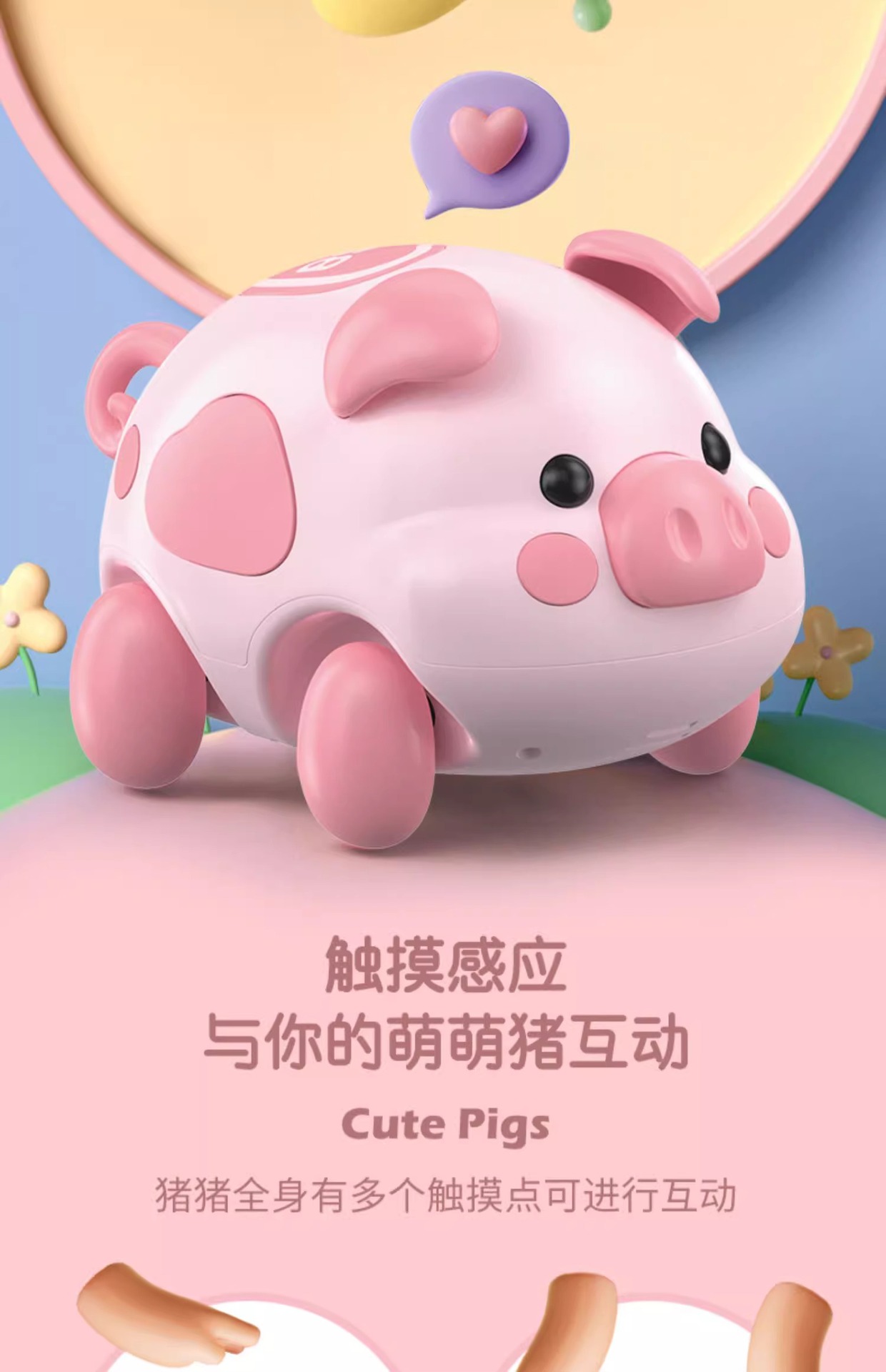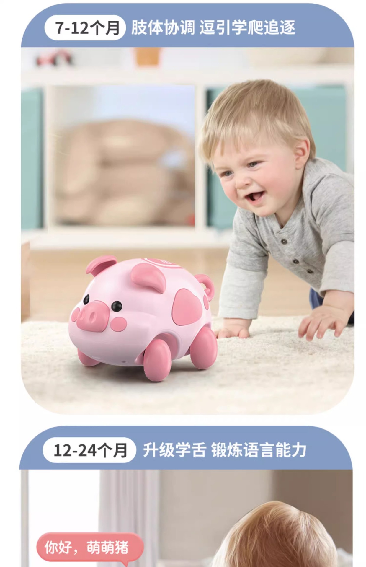 꼬마돼지 기어다니는 법 배우기, 어린이 장난감, 교육용 터치센서, 유아 및 유아를 위한 조기 교육, 기어다니는 법을 가르치는 유물, 머리를 들어 올리는 연습