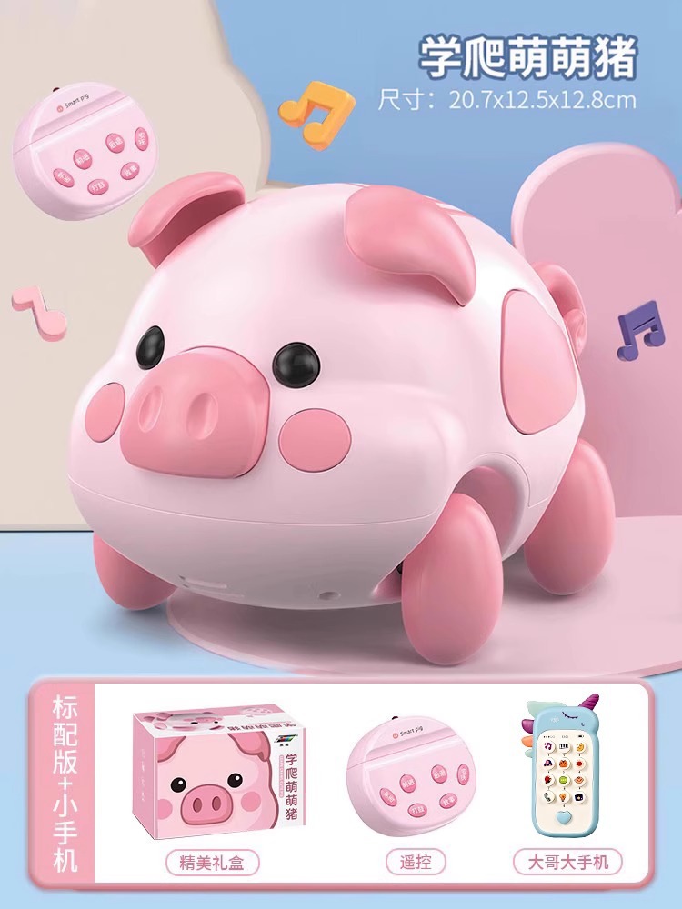 • "유아교육 ""기어가는 법 배우기"" 귀여운 돼지 + 리모콘 + 작은 휴대폰"