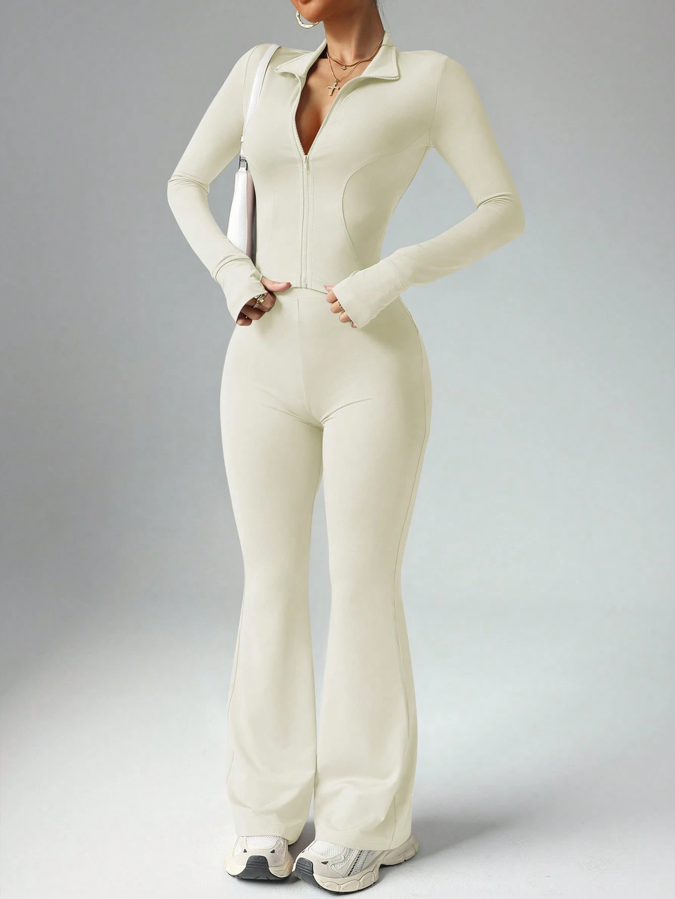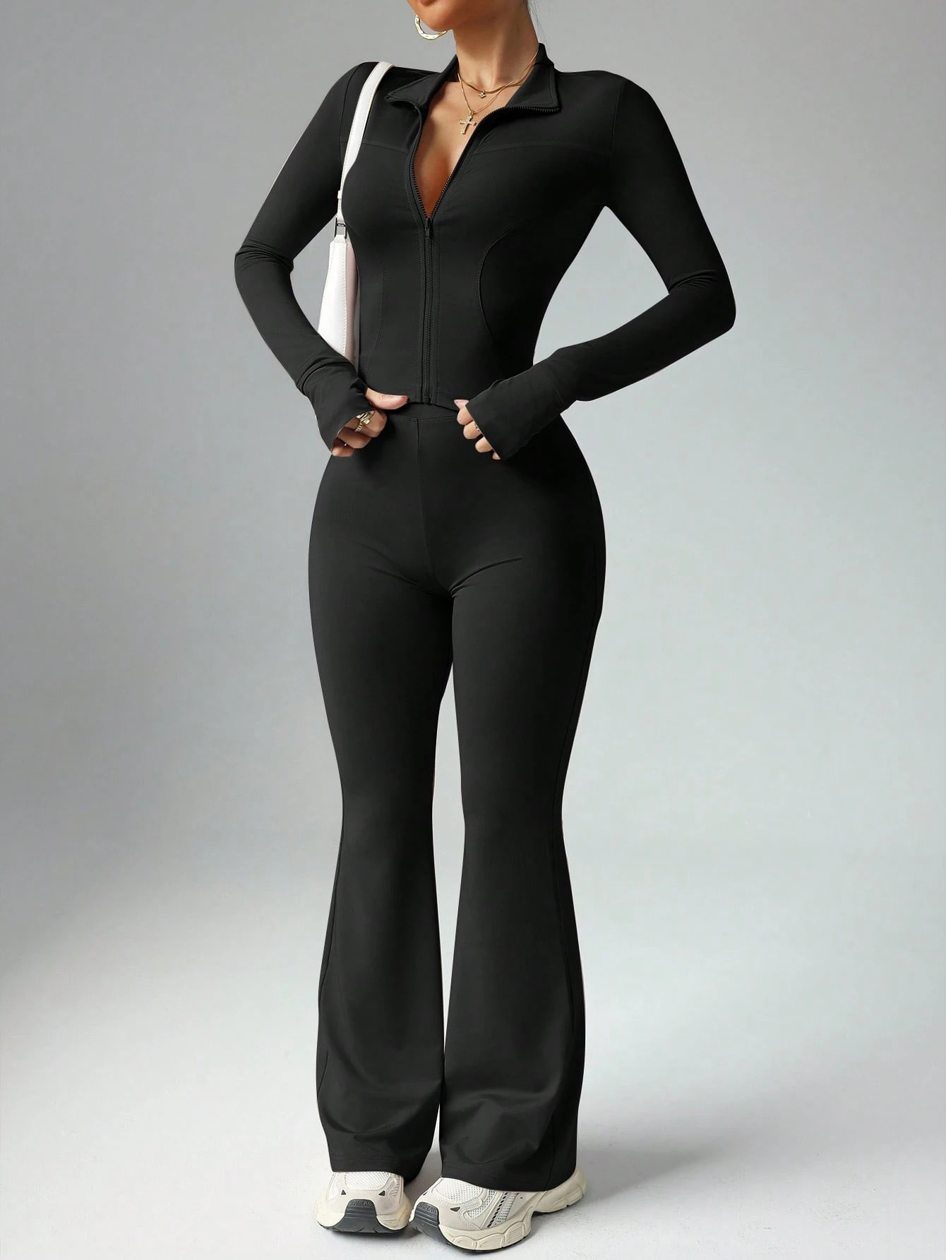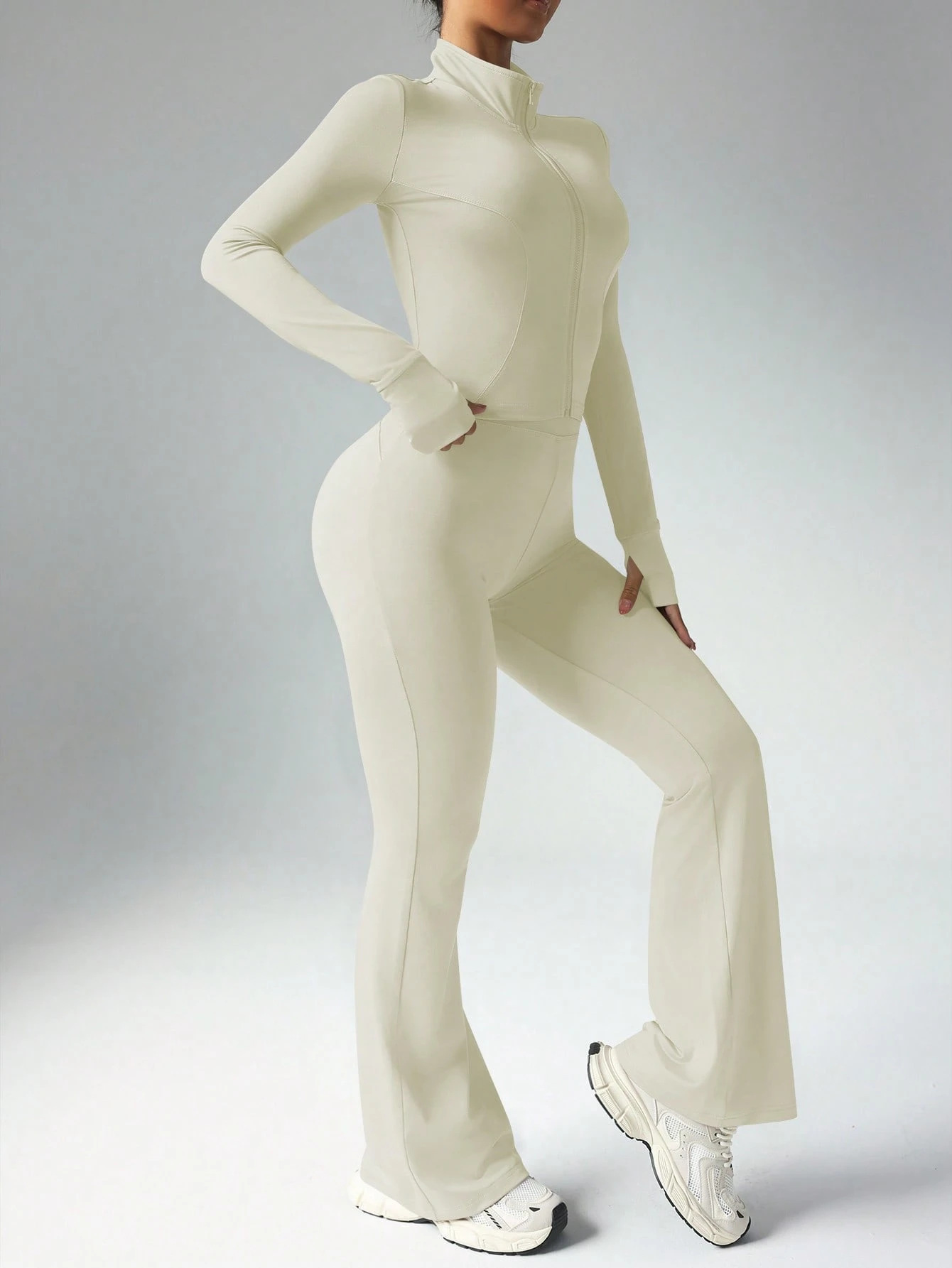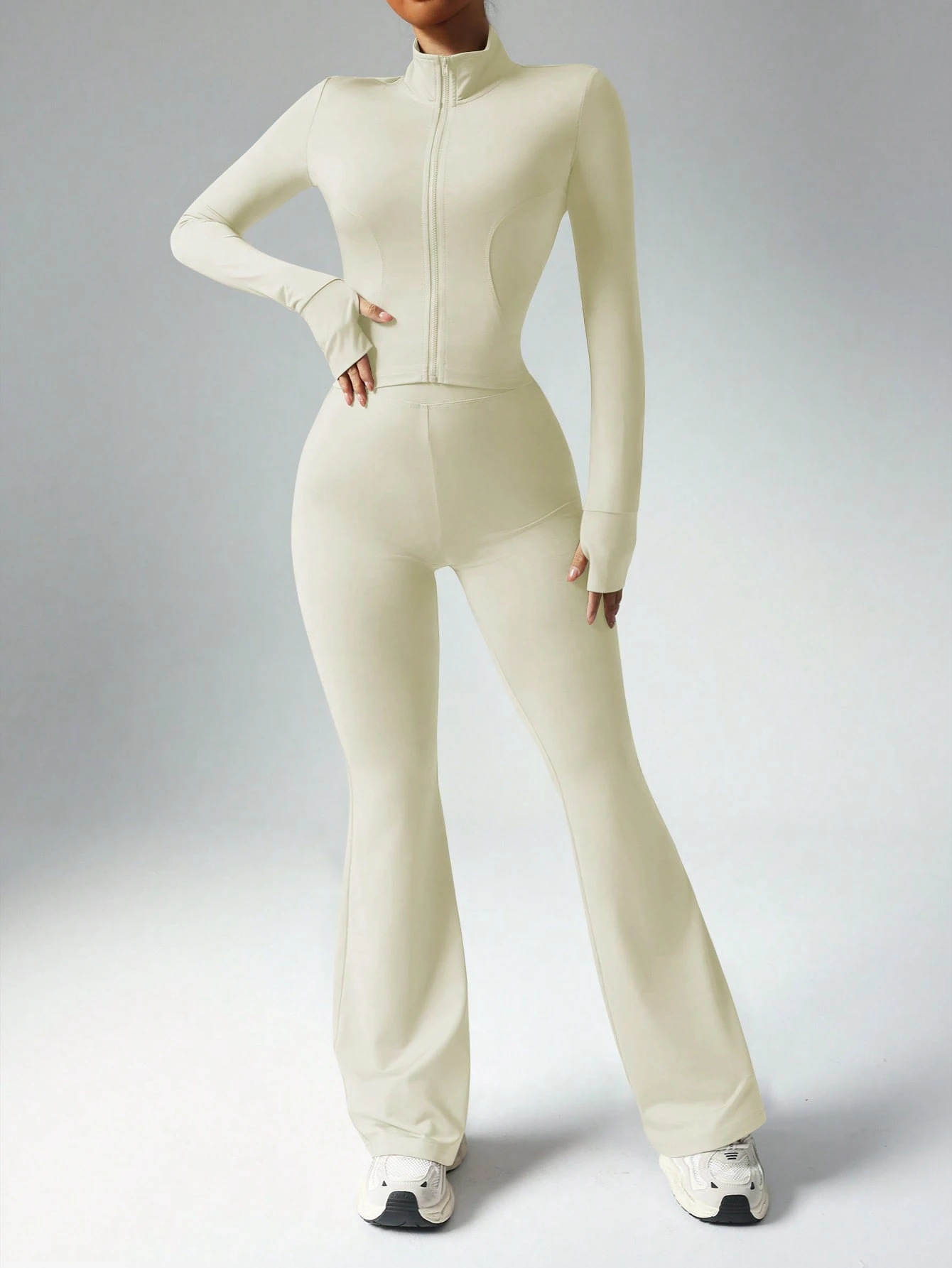 핀이의 새로운 고급 요가복 여성 세트, 편안한 핏, 허리라인 노출 없음, 섹시한 긴팔 운동복 세트스토어 가기