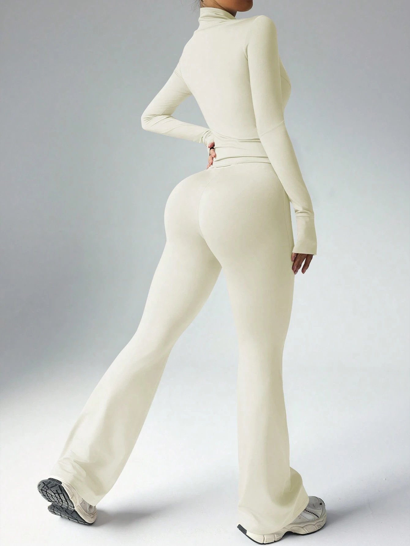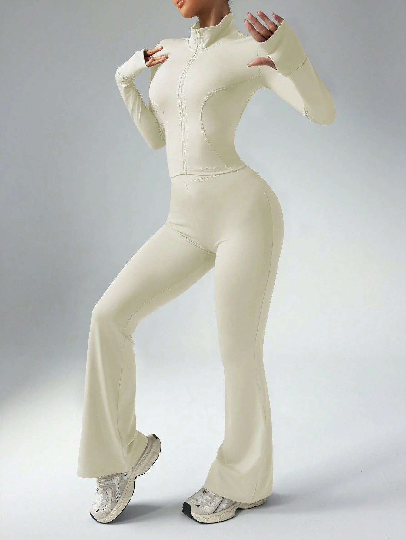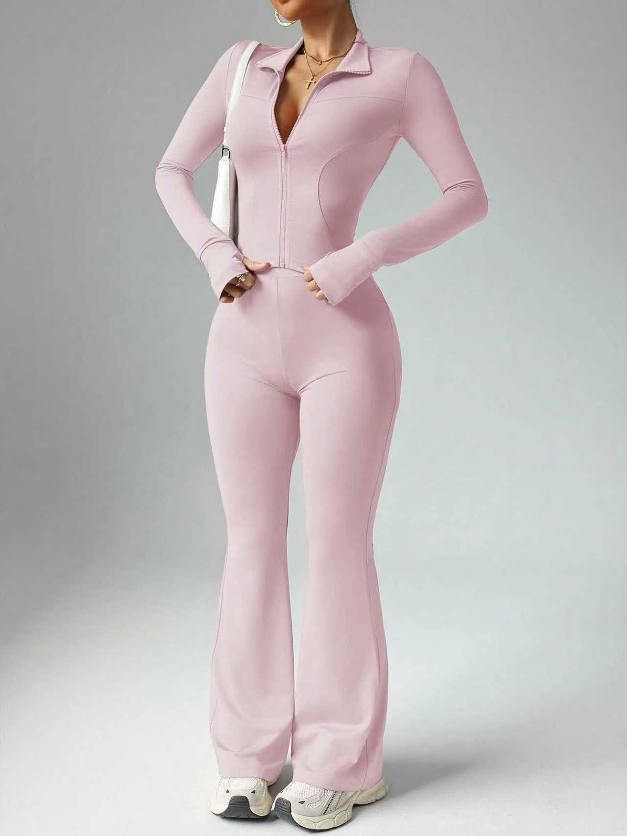 핀이의 새로운 고급 요가복 여성 세트, 편안한 핏, 허리라인 노출 없음, 섹시한 긴팔 운동복 세트