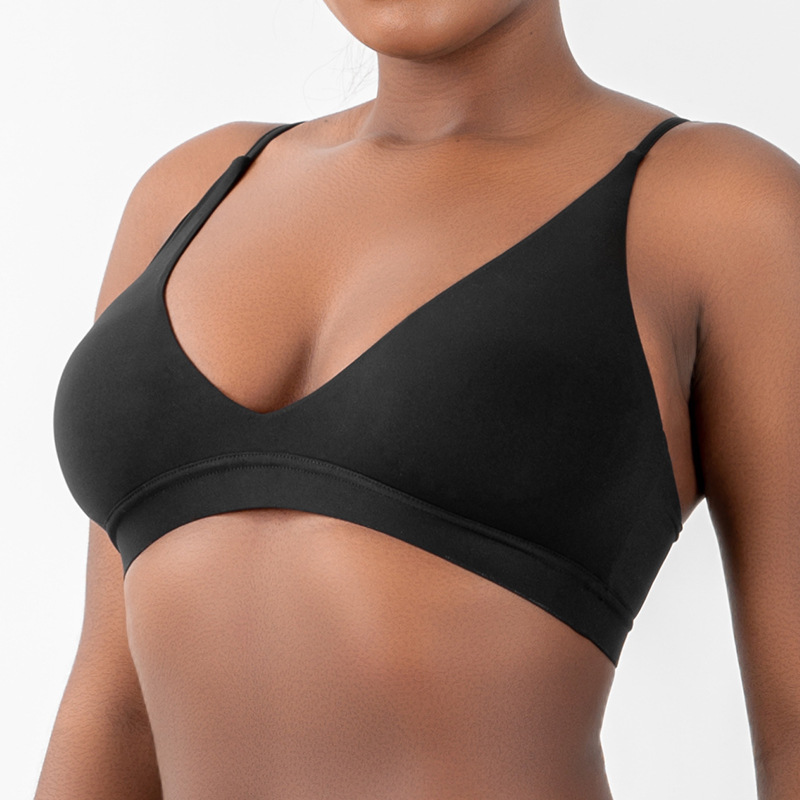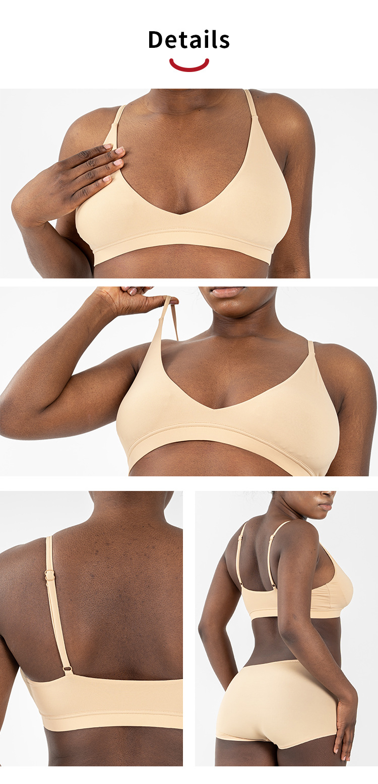 스킴스 카다시안 스타일 트라이앵글 브라렛 누드 느낌 요가 스포츠 조절 가능한 딥 V 무봉제 브라