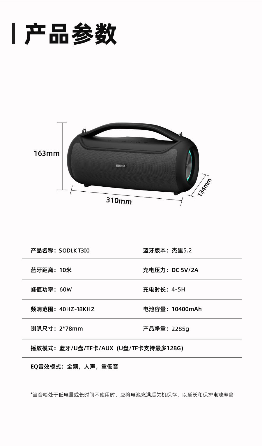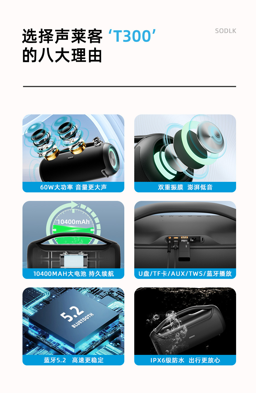 Shenglaike T300 블루투스 스피커 야외 휴대용 60W 무선 블루투스 서브우퍼 스테레오 스피커스토어 가기