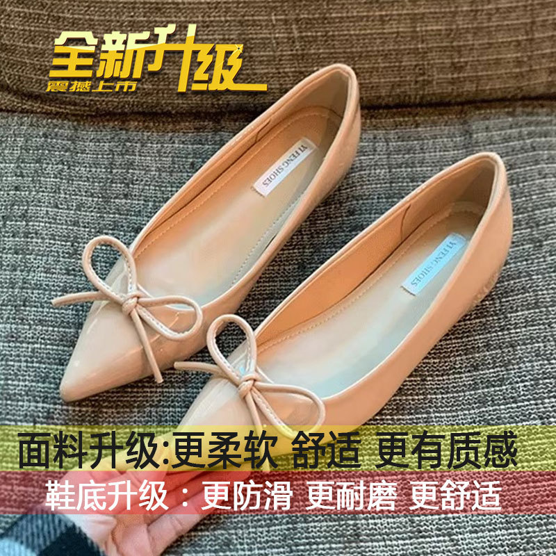 여성을 위한 편안한 이브닝 슈즈 2025 신작 봄, 가을 누드 컬러 포인티드 토 보우 이너 키높이 플랫 슈즈스토어 가기