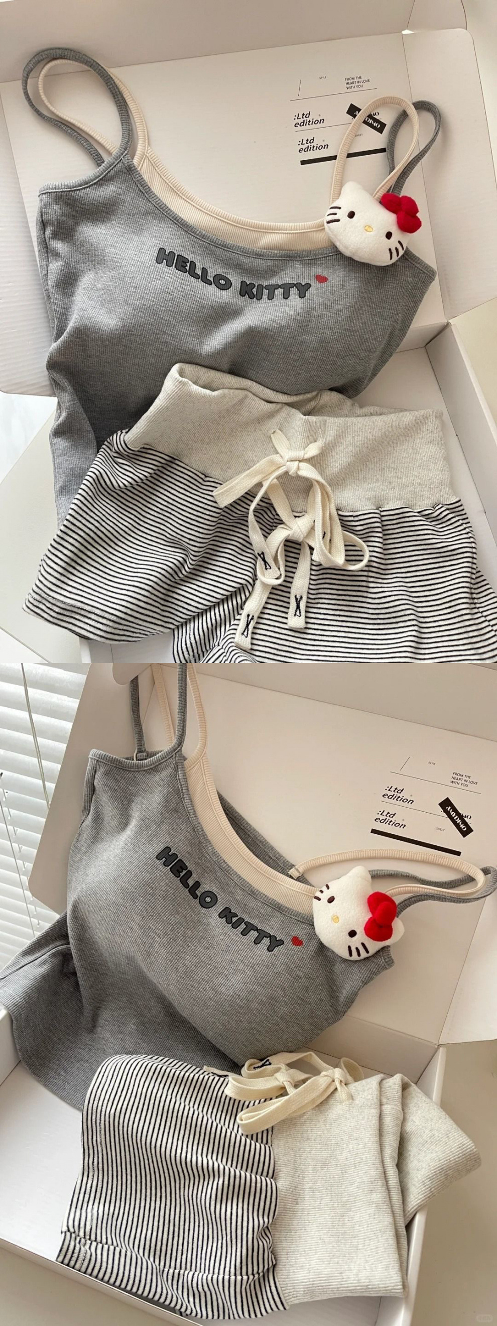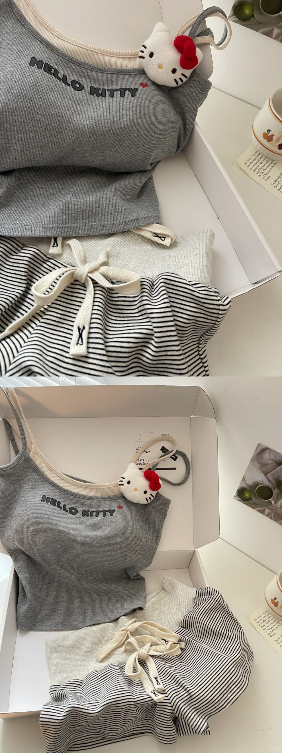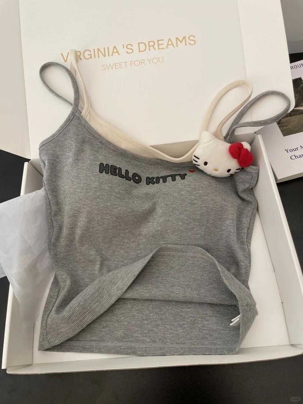 키티 고양이 서스펜더 잠옷 여성 여름 일본식 달콤한 조끼 반바지 가슴 패드가있는 홈웨어 외부에서 착용 가능스토어 가기