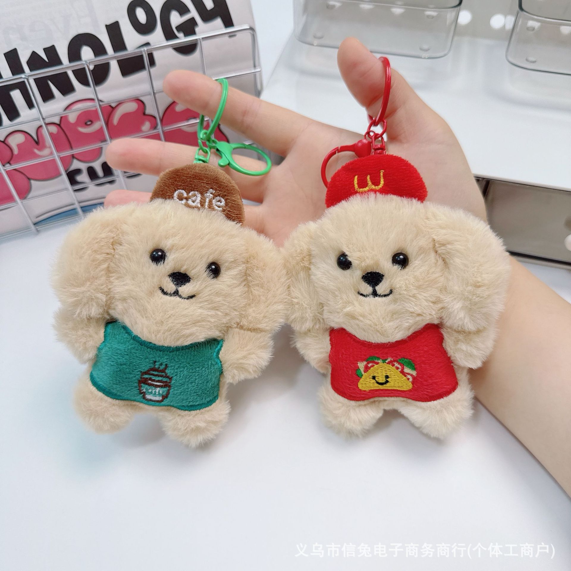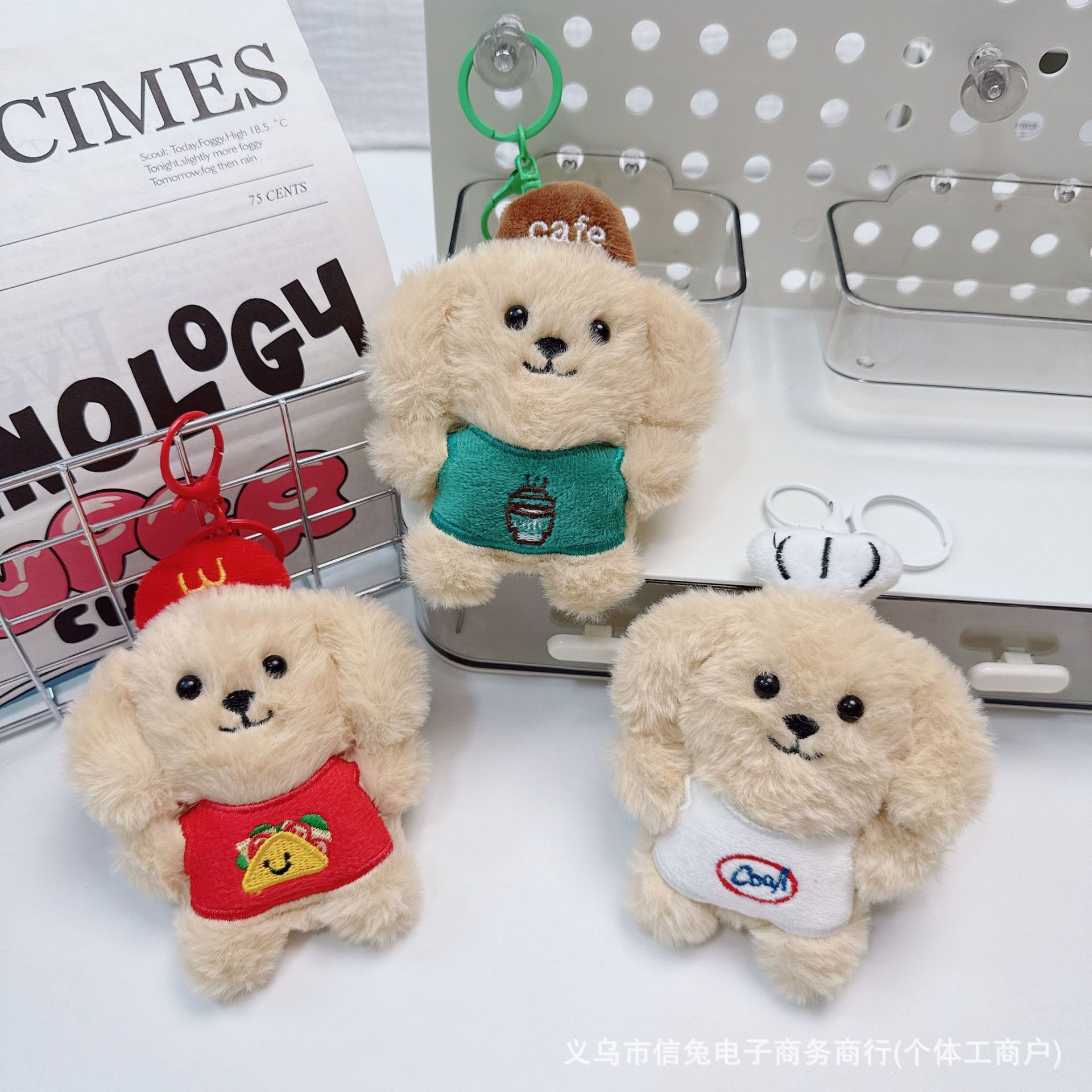 삐걱거리는 요리사 개 펜던트 플러시 커피 개 배꼽 개 열쇠 고리 가방 펜던트 인형 인형 배치스토어 가기