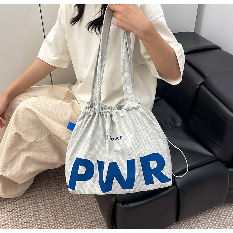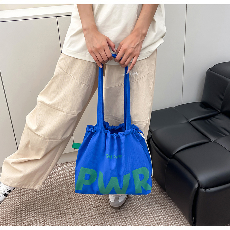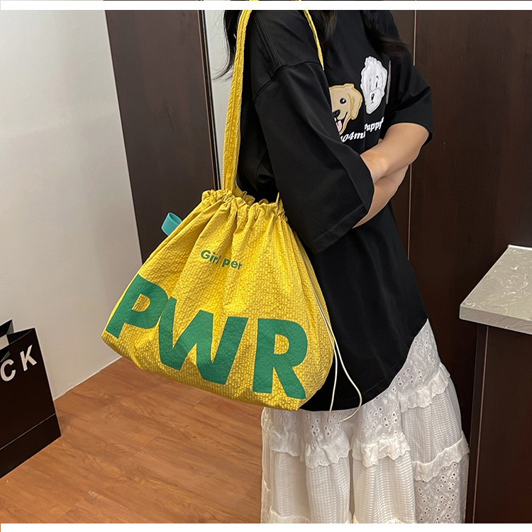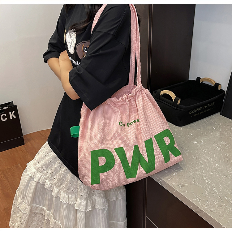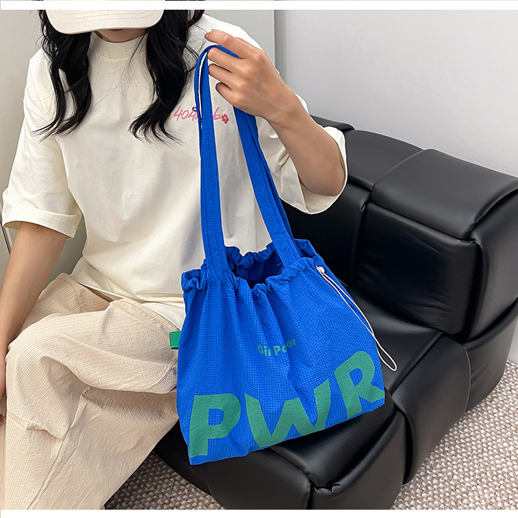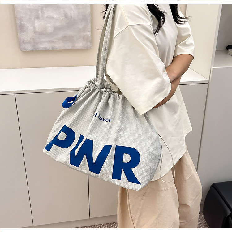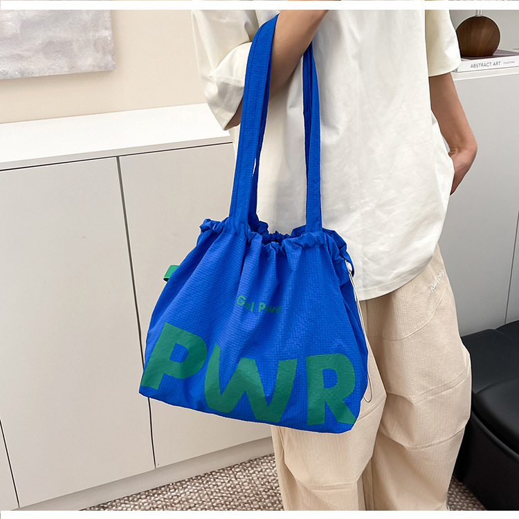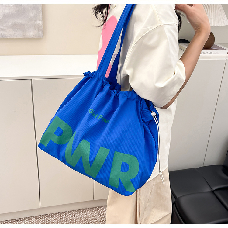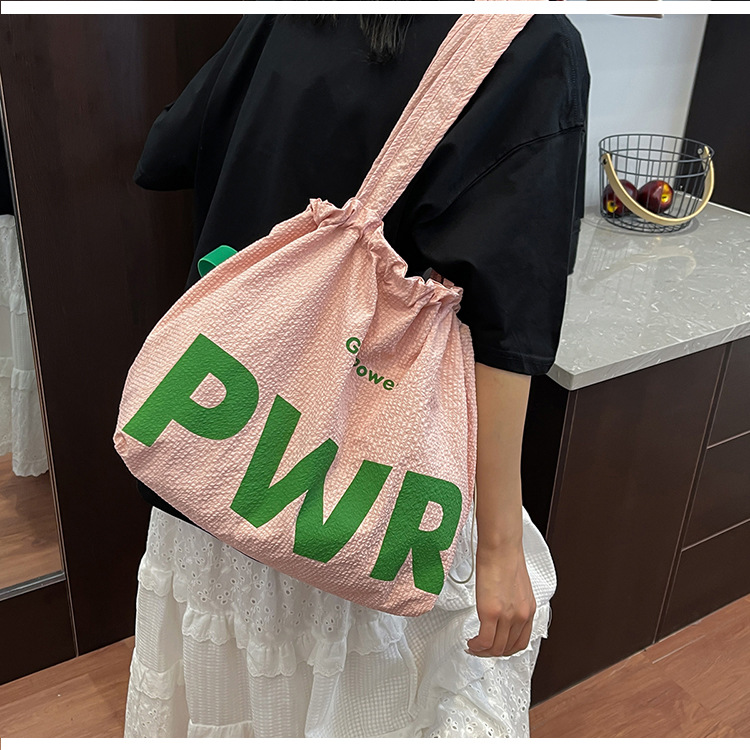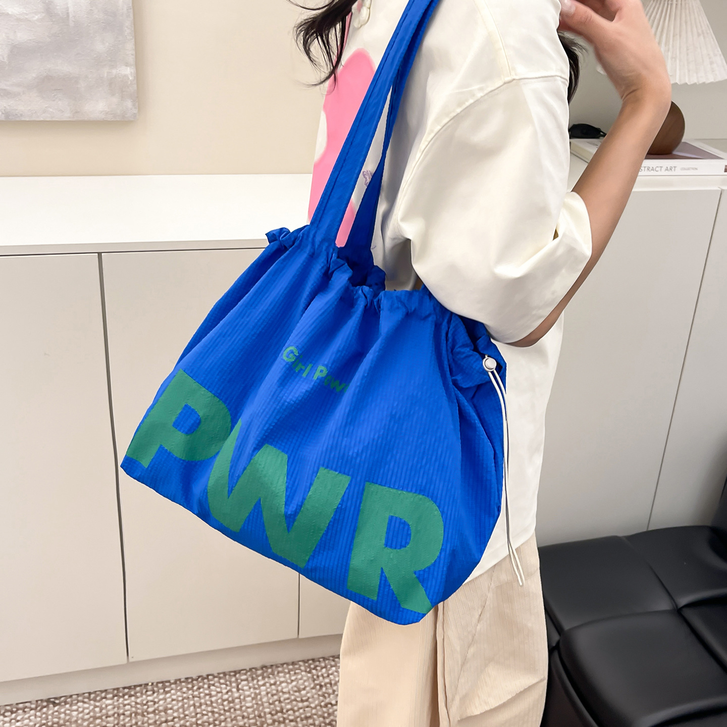 대용량 가방 여성 숄더 백 Drawstring Letter 인쇄 가방 레트로 캐주얼 나일론 가방 캐주얼 토트 백 여성