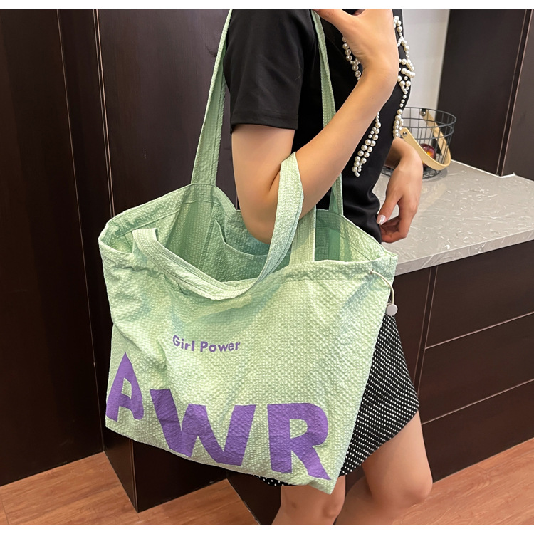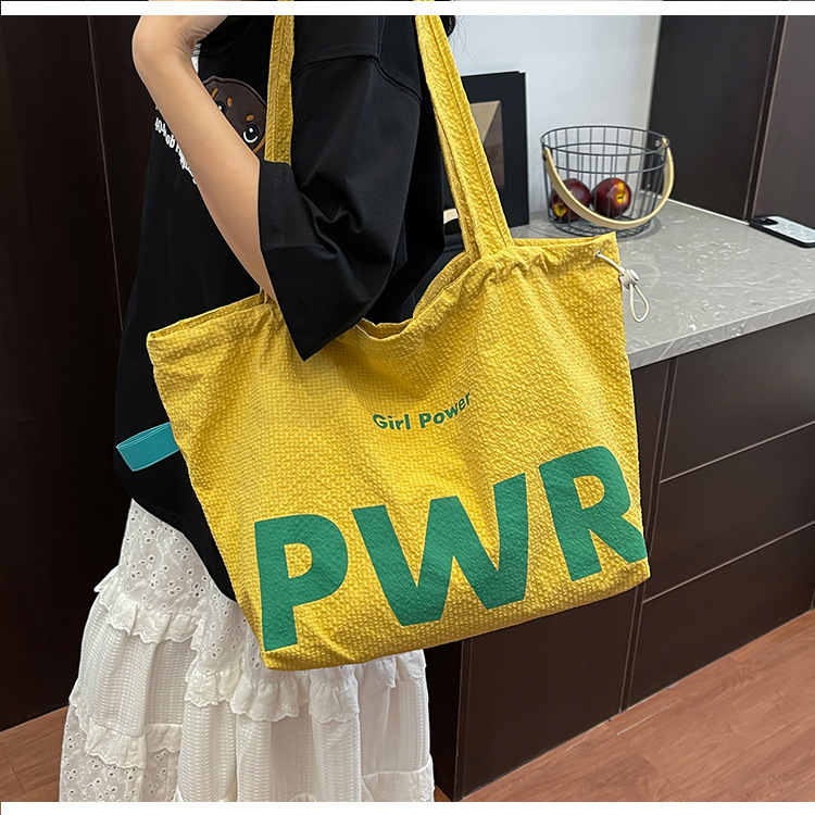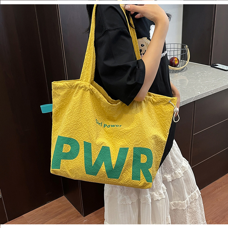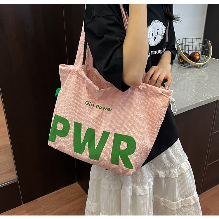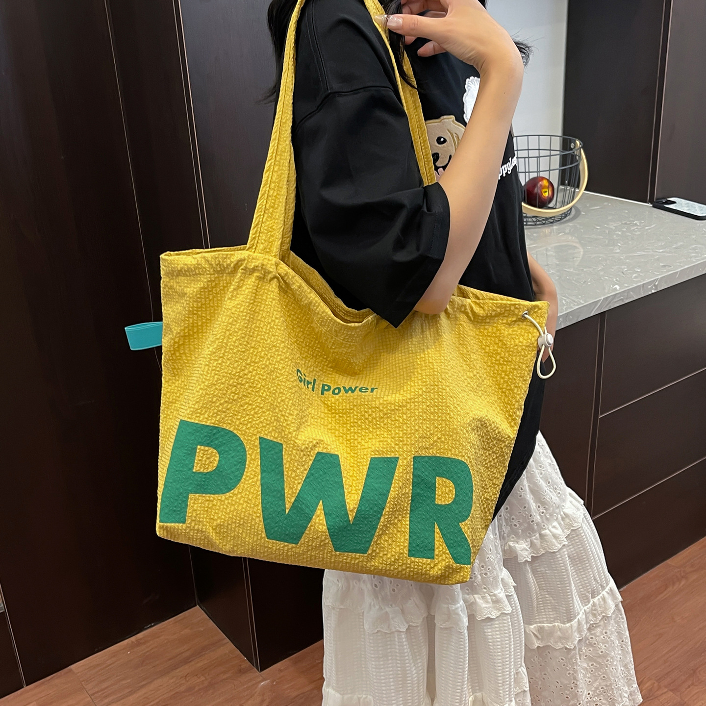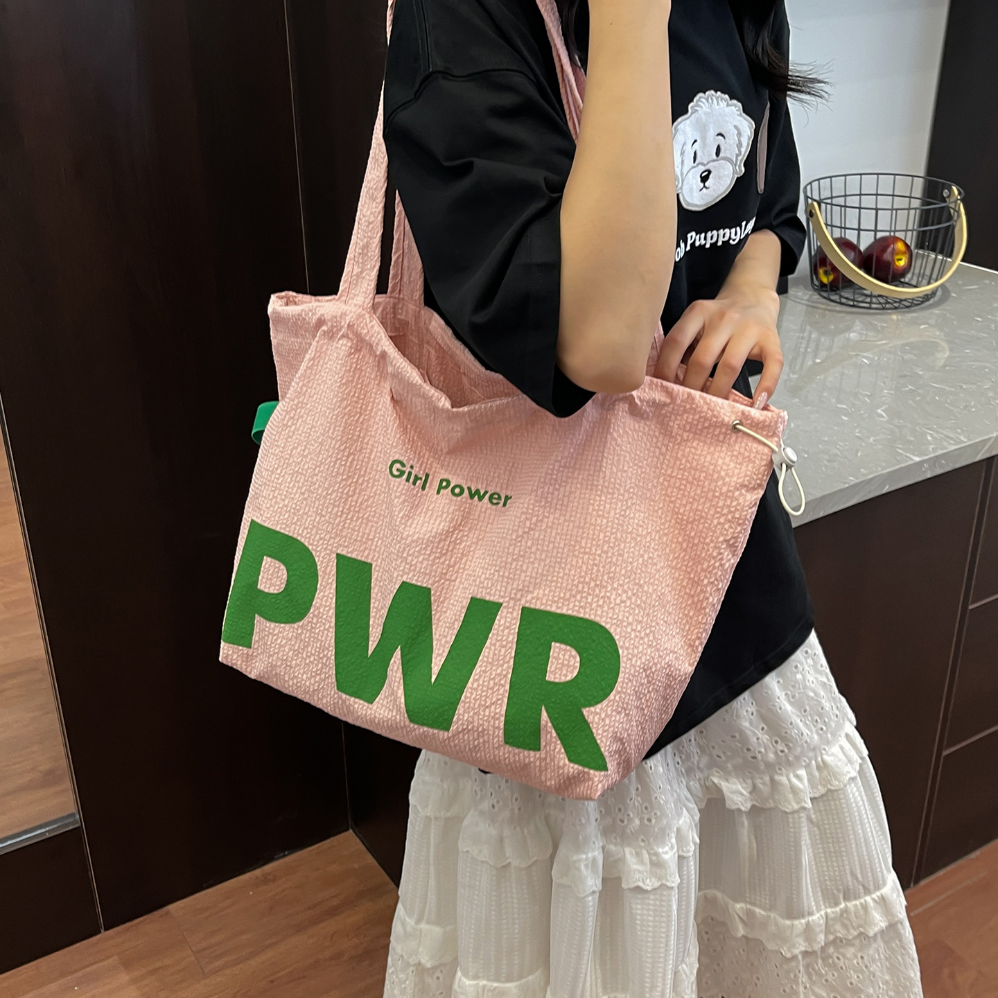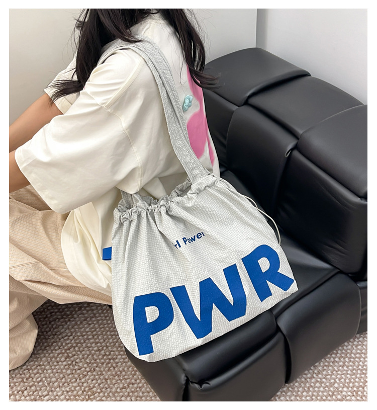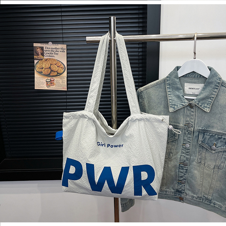 대용량 가방 여성 숄더 백 Drawstring Letter 인쇄 가방 레트로 캐주얼 나일론 가방 캐주얼 토트 백 여성